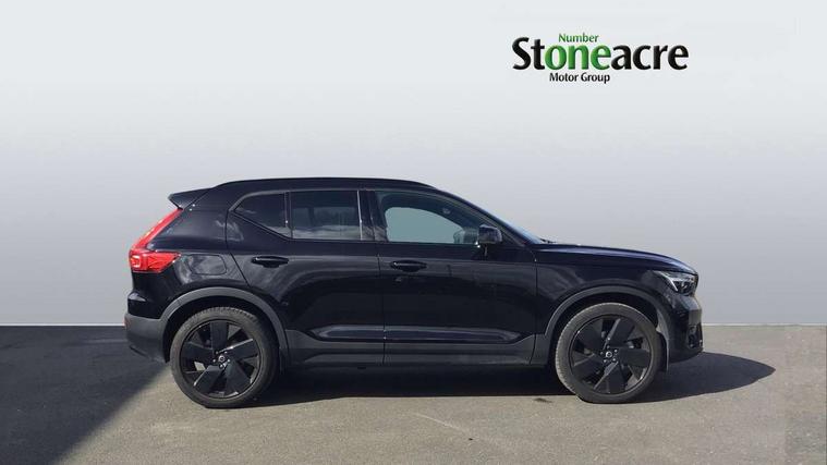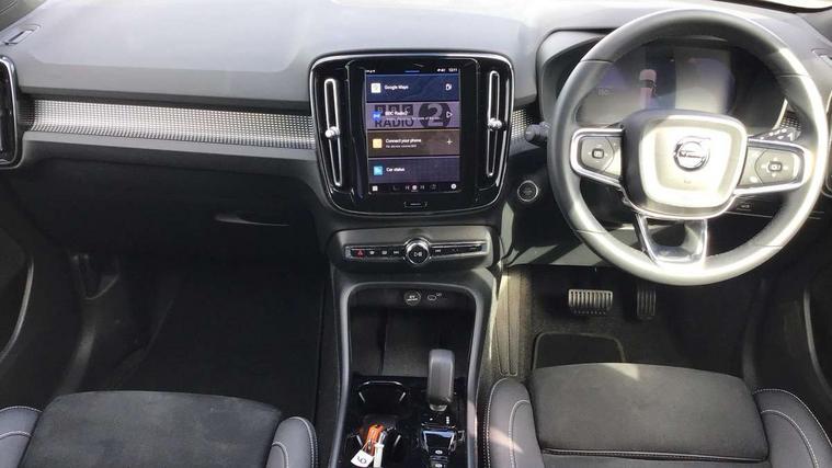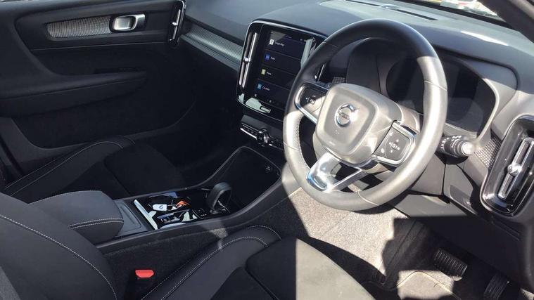 12.3" Progressive Driver Display, 9" centre console portrait touch screen, Adjustable steering wheel force, Android auto (Wired), Apple carplay (wired), Bluetooth handsfree system, Driver alert control, Driver assistance (pilot assist and adaptive cruise control), Driver awareness - Blind spot information system with steer assist, cross traffic alert with autobrake and rear collision warning and mitigation, E-call, Front park assist, Google automotive services - Enabled entertainment apps, navigation with google maps, voice recognition with google assistant, Hands free power tailgate, Intelligent speed assistance, Lane keeping aid, Oncoming Lane Mitigation, Rear park assist, Speed sensitive steering, Volvo cars services with app - Driving journal, emergency and breakdown call, engine remote start, remote door locking/unlocking and vehicle dashboard, Wireless/Inductive Mobile Phone Charging, Automatic transmission with start/stop and manual change functions, Dynamic chassis, DAB Digital radio, Steering wheel mounted remote controls, Adaptive brake lights with high level LED brake lights, Auto dimming feature for exterior door mirrors, Auto dimming interior mirror, Automatic headlamp levelling, Automatic LED Headlights + Active high beam incorporating daytime running lights, Colour coordinated auto folding and heated power door mirrors, Dark tinted windows - rear side windows and rear screen, Front aluminium tread plates, Front and rear electric windows, High gloss black front and rear skid plate, High gloss black front bumper deco, High gloss black front grille strikethrough and ironmark, High gloss black rear model, engine and volvo logo badges, High gloss black window trim, Home safe and approach lighting, Integrated roof rails in high gloss black, LED front fog lights, Puddle lights, Rain sensor with automatic windscreen wiper activation, Rear side wing doors, Rear wiper, Roof antenna, Roof spoiler, Visible VIN plate, 12V socket in front tunnel console and luggage compartment, 2-Zone electronic climate control with CleanZone air quality system and pollen filter, 3 seat bench in 2nd row, 3 Spoke tailored steering wheel with chrome trim, 60/40 versatile split folding rear seat, Centre console cupholders and storage, Charcoal headlining, Connect textile/microtech upholstery, Flexible load floor and grocery bag holder, Floor mats, Front cabin courtesy lights, Front door pocket, front cupholder, ambient front door, rear reading, rear courtesy, instrument panel and tailgate lighting, Front footwell illumination, Front headrests, Front reading lights, Front seat cushion extensions, Front side step illumination (under door), Glovebox bag hook, Heated front seats, Height adjustable passenger seat, Height/reach adjustable steering column, High gloss centre tunnel deco, Illuminated glovebox, Illuminated luggage compartment, Illuminated vanity mirrors + ticket holder, Integrated waste bin, Isofix attachments on outer rear seats, Load cover, Load protection net, Multi directional lumbar support for driver and passenger seat, Power driver seat with memory + exterior mirrors memory, Rear armrest with cupholders, Rear headrests, Single front passenger seat, Underfloor cargo storage, Climate pack without heated front seats - XC40, 3x3 point rear seatbelts, City safety with steering support with Pedestrian + cyclist + front collision warning with full auto brake and rear auto brake, Driver and passenger airbags, Drivers knee airbag, Electronic parking brake with auto hold, First aid kit, Front and outer rear seatbelt reminder and pretensioners, Front seats SIPS airbags, Hill descent control, Hill start assist, Inflatable curtain, Passenger airbag cut-off device, Power child locks on rear doors, Road sign information display, Run off Road Protection, SIPS (Side Impact Protection System), Slippery road and hazard light alert, Stability and Traction Control with Spin control, Engine Drag Control and Corner Traction Control, Tyre pressure monitoring system, Vehicle deceleration control with Anti-lock Brake System, Electronic Brake Distribution and Emergency Brake Assist, Warning triangle, WHIPS whiplash protection system - front, 2 x Key integrated remote control central locking including with deadlocking system and auto open/close windows, Anti-theft alarm including immobiliser/volume sensor + level sensor, Keyless drive includes keyless entry and keyless start, Locking wheel nuts, 20" 5 spoke high gloss black alloy wheels,