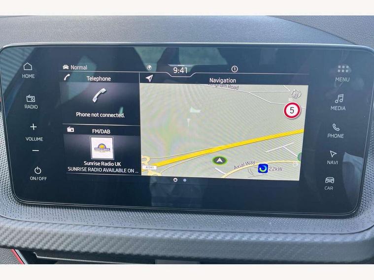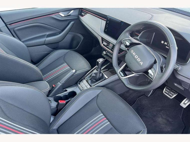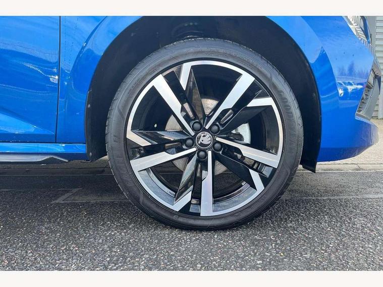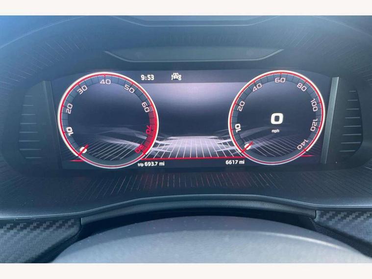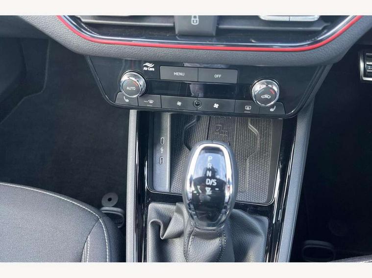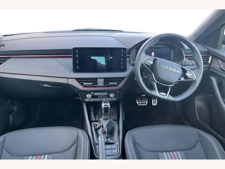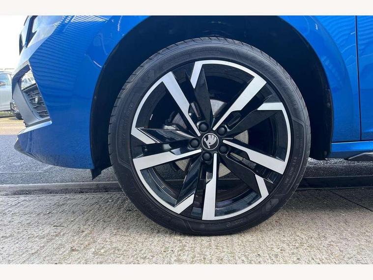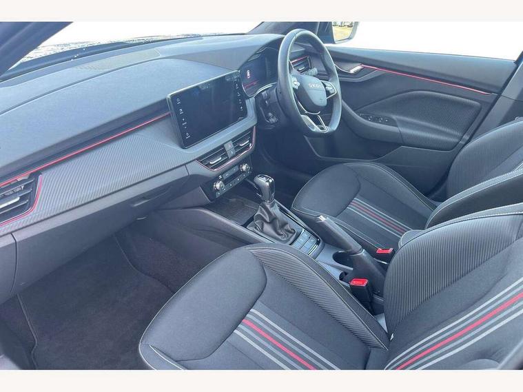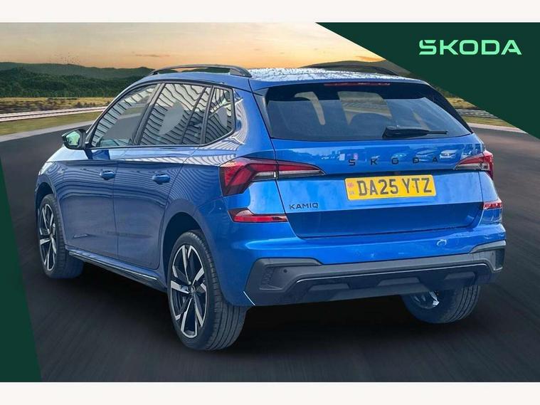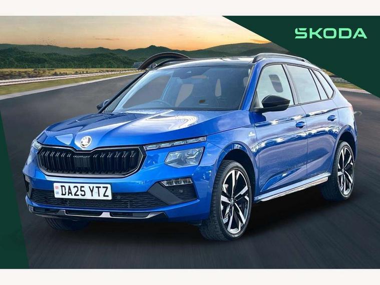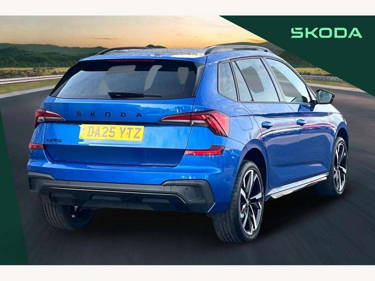 Advanced driver attention and drowsiness monitor, Bluetooth system, E-call, Front assist system, PAS, Rear parking sensors, Rear view camera, Service indicator, Speed limiter, Traffic sign recognition, Virtual cockpit with 10.25" display, Voice control system, Wireless smartlink, 4 USB C ports, 8 Speakers, 9.2" Skoda navigation display, DAB Digital radio, Auto dimming rear view mirror, Automatic headlight control with coming home and leaving home feature, Black door mirrors, Black radiator grille, Black rear diffuser, Black roof spoiler, Body colour bumpers, Body colour door handles, Boot lettering in black, Extended tailgate glass, Fixed panoramic sunroof with black roof rails, Front and rear electric windows, Heated rear window, LED daytime running lights, LED high beam, LED low beam, LED third brake light, Light sensors, Monte carlo plaque, Privacy glass, Rear side wing doors, Rear wiper, Ticket holder inside windscreen, 12V socket in luggage compartment, 3 seat bench in 2nd row, Aluminium pedals, Ambient lighting in white/red, Art leather carbon decor inserts, Art leather carbon door inserts, Black roof lining, Cargo elements, Chrome inner door handles, Driver and passenger sun visors with vanity mirror, Dual zone climate control, Front and rear roof lights, Front centre armrest, Front head restraints, Glove compartment with illumination, Height adjustable driver seat, Height adjustable front passenger seat, Ice scraper, Inner circulation control with pollen filter, ISOFIX on front passenger seat, Isofix preparation for back seats, Leather gearknob and handbrake lever, Manual lumbar support for front seats, Monte Carlo cloth upholstery, Net package and top tether hooks in boot space, Net under rear shelf, Pocket on the back of both front seats include mobile phone pockets, Rake/reach adjustable steering wheel, Reading lights, Rear centre armrests, Red hotstamping, Single front passenger seat, Sports seats, Textile floor mats, Third rear headrest, Top tether for front passenger seat, Umbrella in driver's door, Light and view plus package - Kamiq, 3x3 point rear seatbelts, Airbags - driver and front passenger, Disc brakes, ESP, Extended and predictive pedestrian/cyclist protection, Front passenger airbag deactivation switch, Front side airbags with curtain airbags, Hill hold control, Manual leather parking brake, Manual rear child locks, One tone horn, Seatbelt reminder for driver an co-driver, Traction control, Tyre pressure monitor, Anti-theft alarm system with interior monitoring, backup horn, towing protection and remote central locking with SAFE system, Anti-theft wheel bolts, Electronic engine immobilizer, 18" Ursa black diamond cut alloy wheels,
