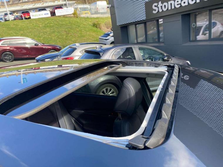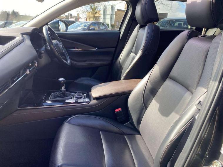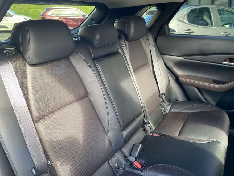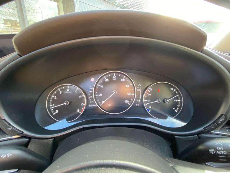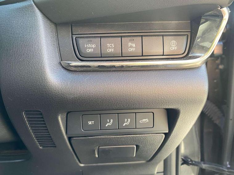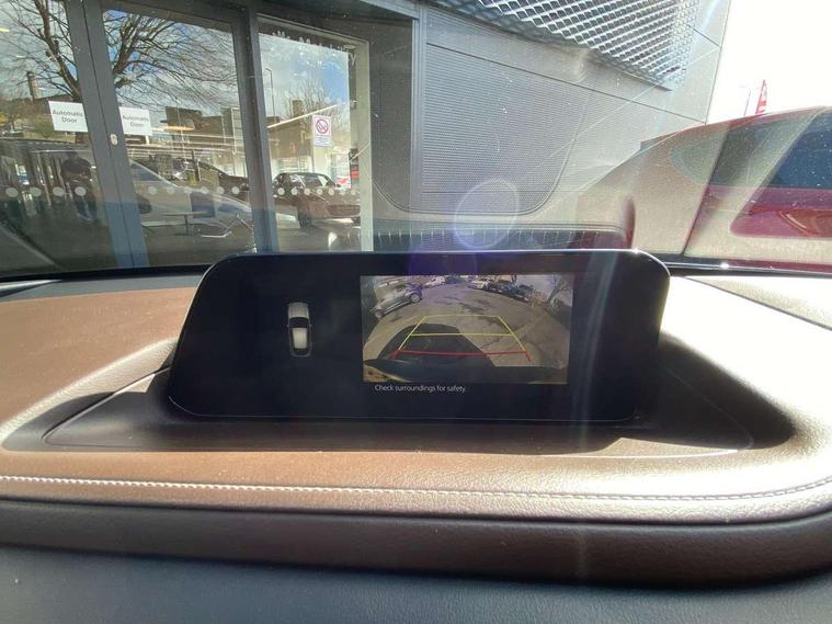 7" TFT Colour driver instrument panel display, 8.8" Colour centre touch screen display with Mazda Connect infotainment, Adaptive cruise control (Mazda radar cruise control), Apple car play/Android Auto, Blind spot monitoring with rear cross traffic alert, Driver attention alert system, E-call with GPS, Emergency stop signalling system, Engine start/stop button, Front and rear parking sensors, Integrated bluetooth, Integrated Mazda navigation system, Intelligent speed assist, Lane keep assist system (LAS) with Lane departure warning system (LDWS), PAS, Power lift gate, Reversing camera, Service indicator, Trip computer, Window projected colour active driving display (head up display) with traffic sign recognition, i-stop, 2 USB charging ports, Bose surround sound system with 12 Speaker, Bose center point, Bass match and audio pilot technology, DAB Digital radio, Multimedia Commander including separate volume dial, Steering wheel mounted audio/bluetooth controls, Adaptive LED Headlights, Auto dimming driver's door mirror, B-pillar and C-pillar garnishes in piano black finish, Body coloured, electrically adjustable, heated auto power folding door mirrors with integrated indicators, Coming/leaving home lighting function, Door mirrors with tilt-down function when reversing, Dual chrome exhaust, Dusk sensing headlights, Electric front/rear windows with one touch auto up/down, Frameless auto dimming interior rear view mirror, Front grille in piano black finish, Front kodo turn signal, High beam assist, Piano black rear roof spoiler, Power tilt/slide sunroof, Privacy glass (rear side windows and rear screen), Rain sensing front wipers with adjustable speed and intermittent wipe, Rear fog lights, Rear wiper, Signature front LED daytime running lights, Signature LED rear combination lights with LED rear turn lights, 60/40 split fold down rear seats, Chrome centre bezel steering wheel, Chrome horn pad ring, Dashboard, door cards and front centre armrest in rich brown leather, Driver and front passenger visors with covered vanity mirror and driver ticket holder, Driver seat memory function, Driver's seat, power tilt, slide, recline, height and lumbar adjustment, Driver, Front passenger and two rear grab handles with coathooks, Dual zone climate control air conditioning with rear air vents, Electrical power outlet, Folding rear centre armrest with two cup holders, Front and rear (x3) head restraints, Front and rear door pockets, Front and rear LED lighting, Front armrest, Front centre storage with two cupholders, Front passengers seat manual slide, recline and height adjustment, Gear shift indicator, Glove box handle with chrome surround, Glovebox illumination, Heated front seats with 3 stage setting, Heated steering wheel, ISOFIX child seat anchorage points attached on outer rear seats, Leather upholstery with interior accents, Leather wrapped gear shift knob, Leather wrapped steering wheel with telescopic and tilt adjustment, Luggage compartment light, Rear passenger seat map pockets, Roof mounted sunglasses holder, Vinyl leather door panel inserts, 3 point ELR front seat belts x2 with pretensioners, 3 point ELR rear seat belts, Anti-lock braking system (ABS), Driver/Front Passenger airbags, Drivers knee airbag, DSC - Dynamic Stability Control, Electronic parking brake with auto disengage function and auto hold function, Front and rear curtain airbags, Front passenger airbag cut-off switch, Front side airbags, Front smart city brake support, G-Vectoring control plus, Hill launch assist, Mild Hybrid system with regenerative braking, Seatbelt reminder for driver/front passenger and rear seats, Traction control system (TCS), Tyre pressure monitoring system (TPMS), Remote central locking with deadlocking and automatic door lock when driving, Smart keyless entry, Thatcham accredited alarm and immobiliser, 18" Bright silver metallic alloy wheels, Emergency tyre repair kit,