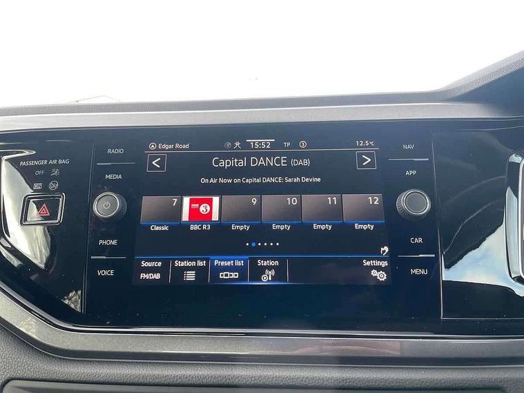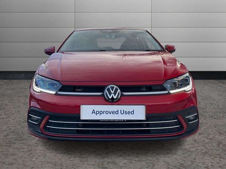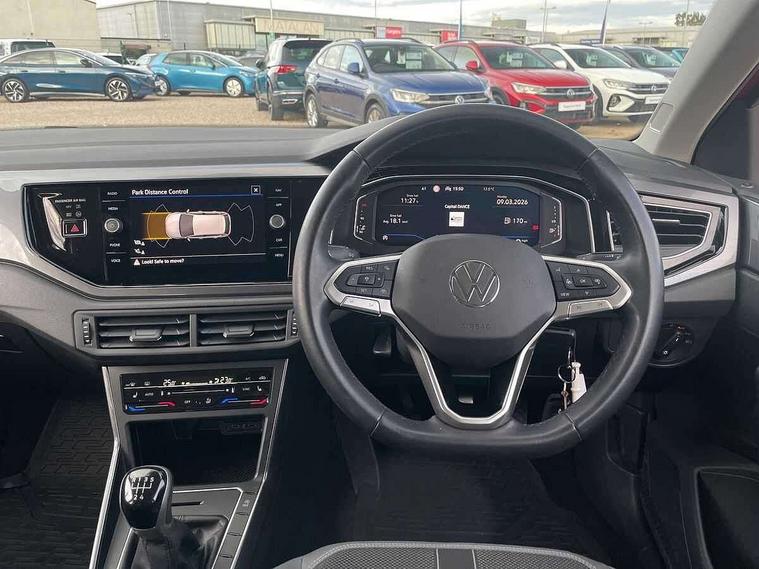Adaptive cruise control without follow-to-stop and speed limiter, Bluetooth mobile phone interface, Digital Cockpit Pro with 10.25" Display, Driver alert system, Dynamic road sign display, Emergency call service, Power assisted speed sensitive steering, Preparation for We connect and We connect plus, Speedo and rev counter, electronic odometer, trip, service interval display and fuel gauge, Standard rear axle, Travel Assist - Lane keeping system and traffic jam assist, Travel assist including emergency assist, Trip computer, Warning signal and warning light for front and rear seatbelts not fastened, Washer fluid level indicator, Wireless app connect, Front wheel drive, Rear shock absorpion, Start-stop system with battery regeneration (recuperation - energy recovery during braking), DAB Digital radio, Diversity antenna for FM reception, Front and rear 6 speakers, Automatic dimming interior rear view mirror, Automatic headlights, Body colour door handles, Body coloured bumpers and radiator grille with chrome trims, Electric front windows, Heat insulating darkened glass in side and rear windows, Heat insulating glass windscreen, LED separate daytime running lights with coming/leaving home function, Power folding adjustable/heated exterior mirrors and front passenger exterior mirror lowering function, Rain sensor, Rear electric windows, Rear fog light, Rear side wing doors, Rear windscreen washer and wiper with interval delay, Third brake light, 12V power socket in centre console, 2 USB-C ports in the front, 2 USB-C charging sockets on the center console in the rear, 3 rear head restraints, 60/40 split folding rear seat and rear seat bench not split, Air care climatronic air conditoning system with active combination filter and 2-zone temperature control, Ambient lighting, Chrome plated radiator grille inserts, air vent surrounds and light switch surrounds, Door and side trim panel, Driver and front passenger seat height adjustment, Driver/passenger sunvisors with illuminated vanity mirrors, Front + rear carpet mats in recycled material, Front centre armrest, Front footwell illumination, Front seat backrest storage pockets, Front sports comfort seats, Handbrake lever handle in leather, Headliner in recycled material, Isofix child seat preparation easy-fit (for two outer rear seats, and front passenger seat) compatible with I-size, Leather trimmed gear knob, LED interior light with switch off delay and dimmer, 2 reading lights front and rear, Luggage compartment cover, Luggage compartment floor, Luggage compartment lighting, Lumbar adjustment for front seats, Multifunction steering wheel, Single front passenger seat, Standard pedal cluster, IQ LED matrix headlights pack - Polo, Light and vision pack - Polo, 3 point height adj front seatbelts + pretensioners, 3x3 point rear seatbelts, ABS, Driver and front passenger airbag with front passenger airbag deactivation, Drivers and front passengers safety optimised head restraints, ESC (Electronic stability control) + EDL (Electronic Differntial lock) and ASR (Traction control), Extended and predictive pedestrian/ cyclist protection, Front curtain and side airbags with center airbag, Front disc brakes, Hill hold control, Manual child lock in rear doors, Rear drum brakes, Single tone horn, Tyre pressure loss indicator, Alarm with interior protection, Anti-theft alarm system with interior monitoring, backup horn, and towing protection, Anti-theft wheel bolts, Electronic engine immobiliser, Chrome applications on rotary light, mirror adjustment, window regulator switches, outlet with frame in black, Low rolling resistance tyres,