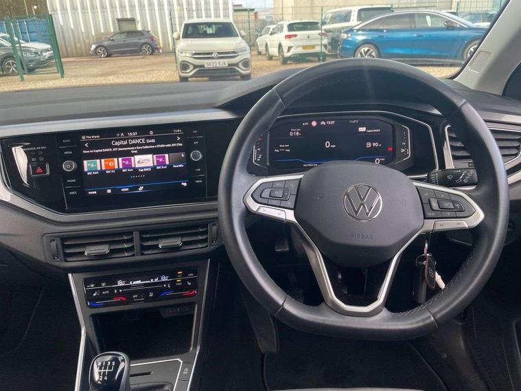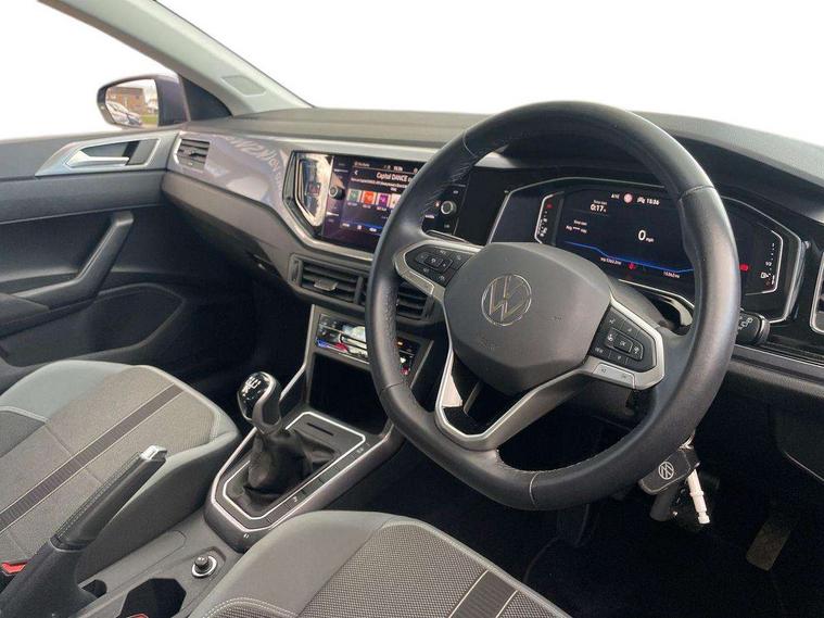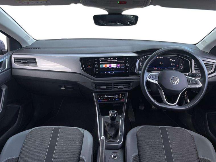 Adaptive cruise control without follow-to-stop and speed limiter, Bluetooth mobile phone interface, Digital Cockpit Pro with 10.25" Display, Driver alert system, Dynamic road sign display, Emergency call service, Power assisted speed sensitive steering, Preparation for We connect and We connect plus, Speedo and rev counter, electronic odometer, trip, service interval display and fuel gauge, Standard rear axle, Travel Assist - Lane keeping system and traffic jam assist, Travel assist including emergency assist, Trip computer, Warning signal and warning light for front and rear seatbelts not fastened, Washer fluid level indicator, Wireless app connect, Front wheel drive, Rear shock absorpion, Start-stop system with battery regeneration (recuperation - energy recovery during braking), DAB Digital radio, Diversity antenna for FM reception, Front and rear 6 speakers, Automatic dimming interior rear view mirror, Automatic headlights, Body colour door handles, Body coloured bumpers and radiator grille with chrome trims, Electric front windows, Heat insulating darkened glass in side and rear windows, Heat insulating glass windscreen, LED separate daytime running lights with coming/leaving home function, Power folding adjustable/heated exterior mirrors and front passenger exterior mirror lowering function, Rain sensor, Rear electric windows, Rear fog light, Rear side wing doors, Rear windscreen washer and wiper with interval delay, Third brake light, 12V power socket in centre console, 2 USB-C ports in the front, 2 USB-C charging sockets on the center console in the rear, 3 rear head restraints, 60/40 split folding rear seat and rear seat bench not split, Air care climatronic air conditoning system with active combination filter and 2-zone temperature control, Ambient lighting, Chrome plated radiator grille inserts, air vent surrounds and light switch surrounds, Door and side trim panel, Driver and front passenger seat height adjustment, Driver/passenger sunvisors with illuminated vanity mirrors, Front + rear carpet mats in recycled material, Front centre armrest, Front footwell illumination, Front seat backrest storage pockets, Front sports comfort seats, Handbrake lever handle in leather, Headliner in recycled material, Isofix child seat preparation easy-fit (for two outer rear seats, and front passenger seat) compatible with I-size, Leather trimmed gear knob, LED interior light with switch off delay and dimmer, 2 reading lights front and rear, Luggage compartment cover, Luggage compartment floor, Luggage compartment lighting, Lumbar adjustment for front seats, Multifunction steering wheel, Single front passenger seat, Standard pedal cluster, IQ LED matrix headlights pack - Polo, Light and vision pack - Polo, 3 point height adj front seatbelts + pretensioners, 3x3 point rear seatbelts, ABS, Driver and front passenger airbag with front passenger airbag deactivation, Drivers and front passengers safety optimised head restraints, ESC (Electronic stability control) + EDL (Electronic Differntial lock) and ASR (Traction control), Extended and predictive pedestrian/ cyclist protection, Front curtain and side airbags with center airbag, Front disc brakes, Hill hold control, Manual child lock in rear doors, Rear drum brakes, Single tone horn, Tyre pressure loss indicator, Alarm with interior protection, Anti-theft alarm system with interior monitoring, backup horn, and towing protection, Anti-theft wheel bolts, Electronic engine immobiliser, Chrome applications on rotary light, mirror adjustment, window regulator switches, outlet with frame in black, Low rolling resistance tyres,