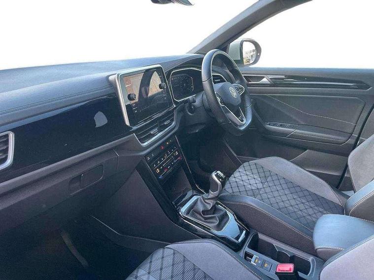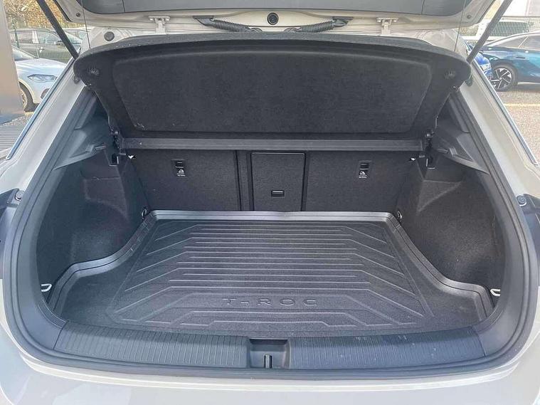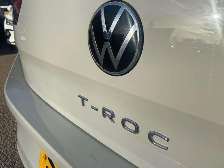 10.25" Digital cockpit pro, Bluetooth mobile phone interface, Driver alert system with fatigue detection, Driver tips and journey analysis, Emergency call service, Lane keeping system Lane Assist, Modified key software - reduce switch off time for key status change to Long no motion, Online services, Park assist including front and rear parking sensors, Service interval indicator, Tailgate/trunk lid release from outside, Think blue trainer driver tips and journey analysis, Warning sound and light for front seatbelts unfastened, Wireless app connect, Battery regeneration during braking, Start/stop function with battery regeneration, Diversity antenna for FM reception, Front and rear 6 speakers, Music playback - MP3, WMA and AAC files, Premium USB cable in choice of either Apple or Android smartphone compatibility, SD card slot, Simultaneous pairing of 2 compatible mobile devices, Title and cover art display, We Connect and We Connect Plus functionality, 3rd brake light, Auto dimming interior rear view mirror, Automatic hazard lights activation under emergency braking, Automatic headlight control with LED separate daytime running lights with coming/leaving home function, Extended roof spoiler, Exterior mirrors aspherical on driver side, convex on front passenger side, External USB type C socket and charging sockets, Front windscreen wiper with intermittent wipe and 4 position delay, Heated rear window, LED Plus headlamps, LED rear combination lamps, LED rear number plate lights, LED tail lamp rear comination lamps, Power windows with comfort operation and circuit breaker, R-Line design body coloured bumpers, Rain sensor, Rear exhaust tailpipe, Rear fog light on one side and reversing lights on both sides, Rear side wing doors, Rear wash/wipe with intermittent wipe setting, Remote electrically foldable door mirrors, puddle lights and reverse activated passenger's door mirror, 12V power socket in centre console, 3 rear head restraints, 3 seat bench in 2nd row, 4 load lashing points in luggage compartment, Air care climatronic air conditoning system with active combination filter and 2-zone temperature control, Black roof lining, Chrome plated radiator grille inserts, air vent surrounds and light switch surrounds, Door and side trim panel with leatherette insert, Drawer under drivers seat, Front + rear carpet mats, Front centre armrest, Front cupholders x 2, Front footwell illumination, Front reading light, Front scuff plates with R logo, Instrument lighting, white adjustable panel illumination, Interior ambient lighting and surround lighting, Interior light delay, Isofix child seat preparation, Leather gearshift handle, Load-through provision with cup holder when folded down ('Unsplit rear seat bench, split folding backrest, with centre armrest), Luggage compartment lighting, Single front passenger seat, Stainless steel pedals, Storage compartment in left and right luggage area, Storage compartment in rear doors, Storage compartments in driver and front passenger doors, Sunvisors with illuminated vanity mirrors, Variable boot floor, height adjustable and removable, Driver assistance pack without proactive passenger protection - T-Roc, 3 point height adj front seatbelts + pretensioners, 3 point seatbelts in outer rear with ECE label, ABS, Child locks on rear doors, Driver and front passenger airbag with front passenger airbag deactivation, Driver and front passenger safety-optimised head restraints, Drivers seatbelt reminder, Electronic parking brake, Electronic Stability Control (ESC) inc EDL (Electronic Differential Lock) and ASR (Traction Control), Front and rear passengers curtain airbag system including front side airbags, Front assist with city emergency braking and pedestrian monitoring, Front seat side impact airbags, Hill start assist, Predictive pedestrian protection, Rear disc brakes, Single tone horn, Tyre pressure loss indicator, Volkswagen roadside assistance, Alarm with interior protection, Anti-theft alarm system with interior monitoring, backup horn, and towing protection, Remote central locking with SAFELOCK, radio remote control with 2 remote control folding keys, Trims for alloy wheels,