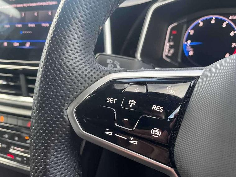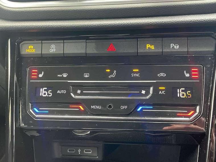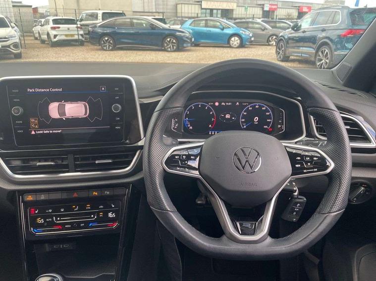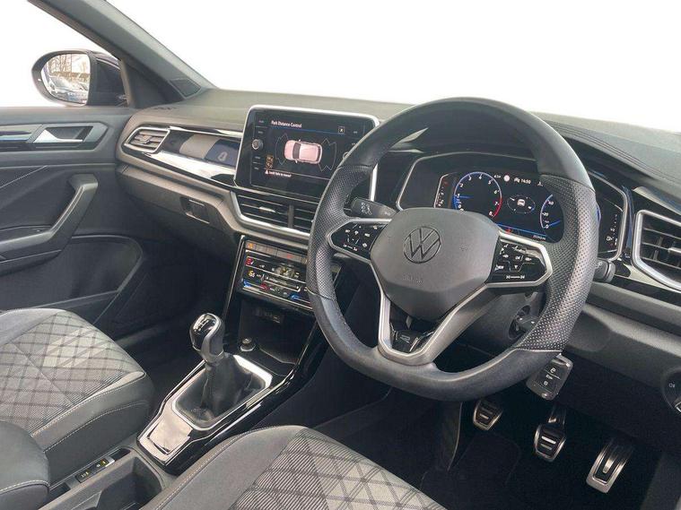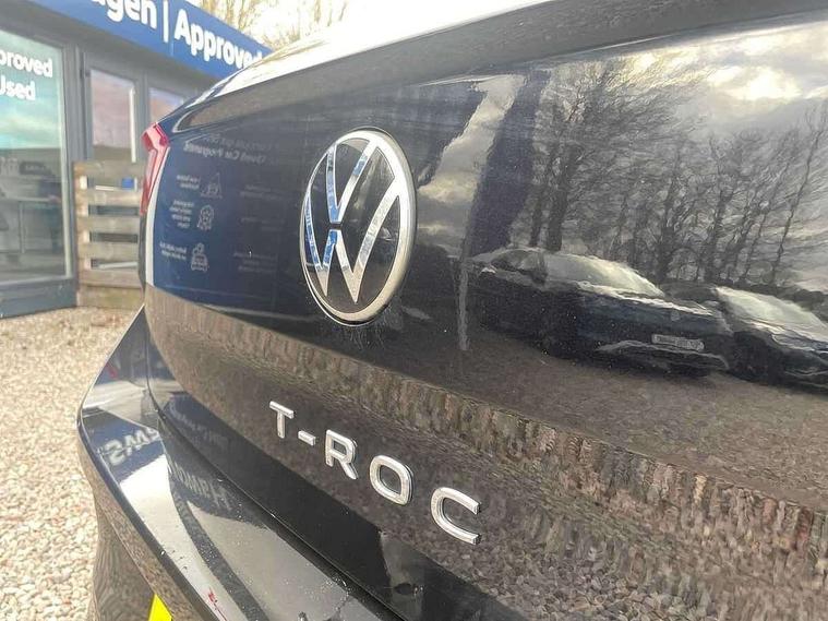 10.25" Digital cockpit pro, Bluetooth mobile phone interface, Driver alert system with fatigue detection, Driver tips and journey analysis, Emergency call service, Lane keeping system Lane Assist, Modified key software - reduce switch off time for key status change to Long no motion, Online services, Park assist including front and rear parking sensors, Service interval indicator, Tailgate/trunk lid release from outside, Think blue trainer driver tips and journey analysis, Warning sound and light for front seatbelts unfastened, Wireless app connect, Battery regeneration during braking, Start/stop function with battery regeneration, Diversity antenna for FM reception, Front and rear 6 speakers, Music playback - MP3, WMA and AAC files, Premium USB cable in choice of either Apple or Android smartphone compatibility, SD card slot, Simultaneous pairing of 2 compatible mobile devices, Title and cover art display, We Connect and We Connect Plus functionality, 3rd brake light, Auto dimming interior rear view mirror, Automatic hazard lights activation under emergency braking, Automatic headlight control with LED separate daytime running lights with coming/leaving home function, Extended roof spoiler, Exterior mirrors aspherical on driver side, convex on front passenger side, External USB type C socket and charging sockets, Front windscreen wiper with intermittent wipe and 4 position delay, Heated rear window, LED Plus headlamps, LED rear combination lamps, LED rear number plate lights, LED tail lamp rear comination lamps, Power windows with comfort operation and circuit breaker, R-Line design body coloured bumpers, Rain sensor, Rear exhaust tailpipe, Rear fog light on one side and reversing lights on both sides, Rear side wing doors, Rear wash/wipe with intermittent wipe setting, Remote electrically foldable door mirrors, puddle lights and reverse activated passenger's door mirror, 12V power socket in centre console, 3 rear head restraints, 3 seat bench in 2nd row, 4 load lashing points in luggage compartment, Air care climatronic air conditoning system with active combination filter and 2-zone temperature control, Black roof lining, Chrome plated radiator grille inserts, air vent surrounds and light switch surrounds, Door and side trim panel with leatherette insert, Drawer under drivers seat, Front + rear carpet mats, Front centre armrest, Front cupholders x 2, Front footwell illumination, Front reading light, Front scuff plates with R logo, Instrument lighting, white adjustable panel illumination, Interior ambient lighting and surround lighting, Interior light delay, Isofix child seat preparation, Leather gearshift handle, Load-through provision with cup holder when folded down ('Unsplit rear seat bench, split folding backrest, with centre armrest), Luggage compartment lighting, Single front passenger seat, Stainless steel pedals, Storage compartment in left and right luggage area, Storage compartment in rear doors, Storage compartments in driver and front passenger doors, Sunvisors with illuminated vanity mirrors, Variable boot floor, height adjustable and removable, Driver assistance pack without proactive passenger protection - T-Roc, 3 point height adj front seatbelts + pretensioners, 3 point seatbelts in outer rear with ECE label, ABS, Child locks on rear doors, Driver and front passenger airbag with front passenger airbag deactivation, Driver and front passenger safety-optimised head restraints, Drivers seatbelt reminder, Electronic parking brake, Electronic Stability Control (ESC) inc EDL (Electronic Differential Lock) and ASR (Traction Control), Front and rear passengers curtain airbag system including front side airbags, Front assist with city emergency braking and pedestrian monitoring, Front seat side impact airbags, Hill start assist, Predictive pedestrian protection, Rear disc brakes, Single tone horn, Tyre pressure loss indicator, Volkswagen roadside assistance, Alarm with interior protection, Anti-theft alarm system with interior monitoring, backup horn, and towing protection, Remote central locking with SAFELOCK, radio remote control with 2 remote control folding keys, Trims for alloy wheels,