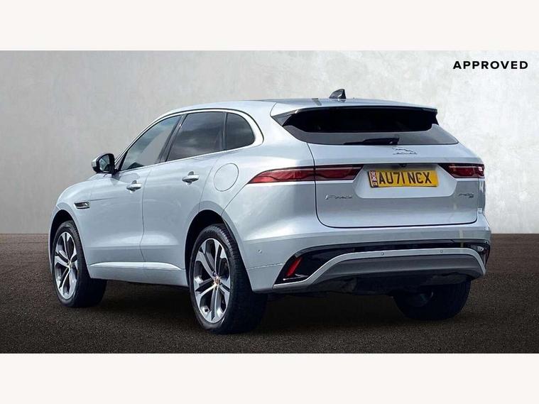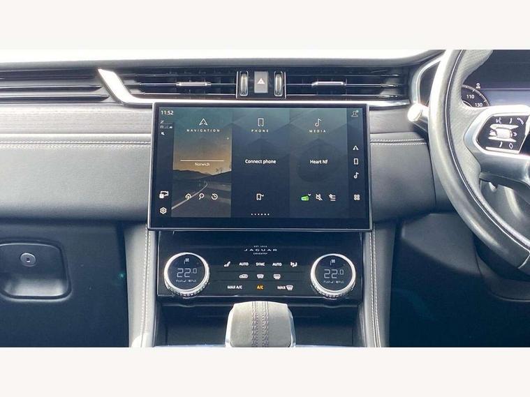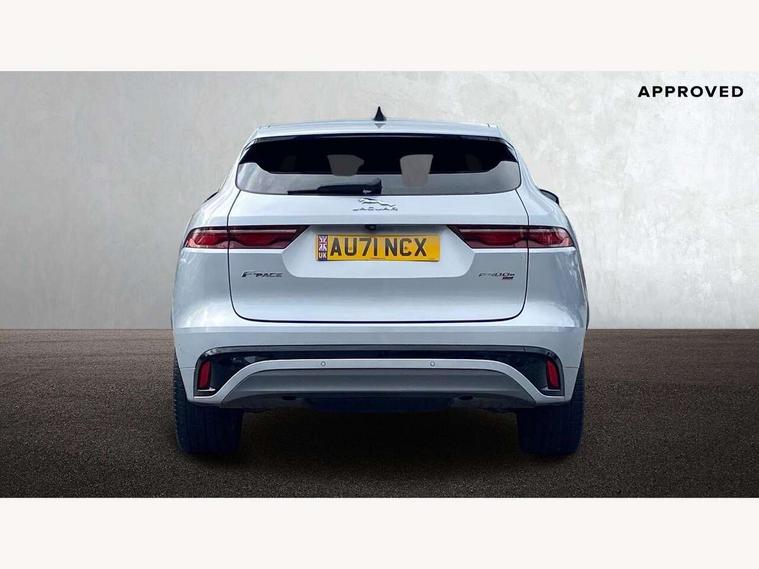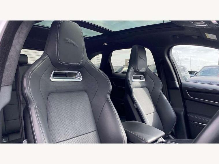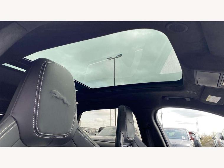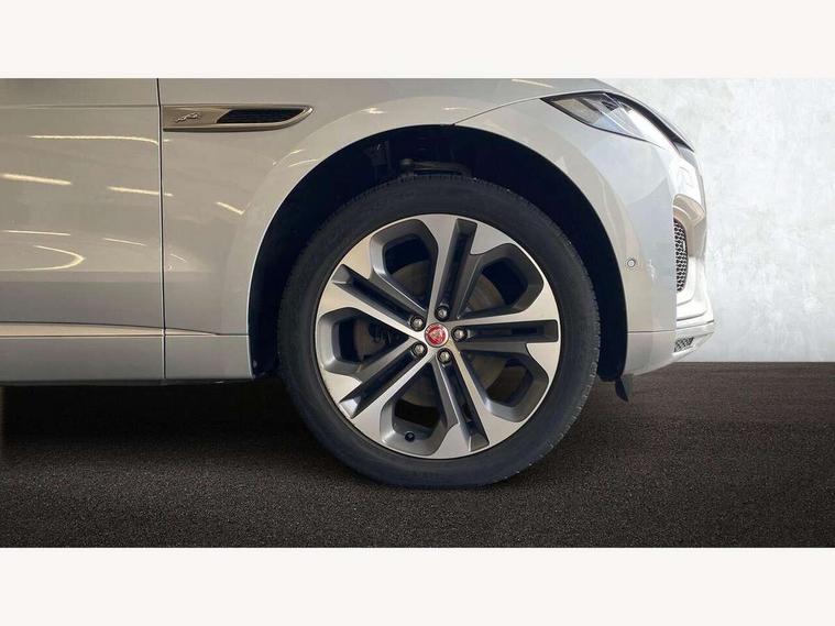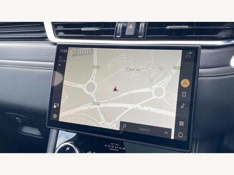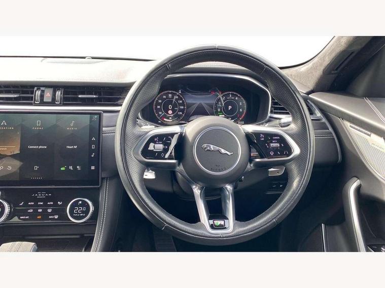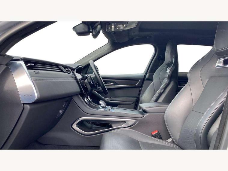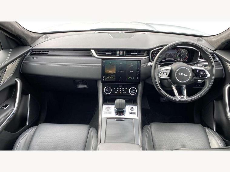 11.4" touchscreen, Adaptive cruise control, Android Auto, Apple car play, Blind spot assist, Bluetooth connectivity, Clear exit monitor, Driver alert system, Driver condition monitor, Eco driving style assistant, Electric power assisted steering, InControl remote, Interactive Driver display instrument cluster, Jaguar Toggle shift selector, Lane departure warning system, Lane keep assist, Outside temperature gauge, Personalisation profile management, Pivi pro connected navigation system with app interface and media storage, Pro services and wifi hotspot, Push button starter, Rear collision monitor, Rear traffic monitor, Service interval indicator, Speed proportional steering, Start up sequence with movement in dials and lighting, Traffic sign recognition with adaptive speed limiter, Trip computer, Voice control system, 7 kW onboard charger, 8 speed automatic transmission, Adaptive dynamics, All terrain progress control, All Wheel Drive (AWD), Configurable dynamics, Open differential with torque vectoring by braking, Public charging cable, AM/FM radio, Bluetooth streaming, DAB Radio (Digital Audio Broadcasting), Dynamic volume control, InControl apps, InControl protect, iPod integration, 3 flash lane change indicators, Animated directional indicators, Approach Illumination, Auto dimming rear view mirror, Automatic headlights, Body colour door mirrors, Electric heated/power fold memory door mirrors with approach lights and auto dimming driver side, Electric windows with one touch open/close and anti trap, F-Pace badge, Green tinted glass, Heated front windscreen + heated washer jets, Heated rear window with timer, Illuminated metal tread plates with Jaguar script, Jaguar script and leaper, LED tail lights, Non acoustic front windscreen, P400e AWD badge, R Dynamic badge on side door, Rain sensor windscreen wipers, Rear fog lights, Rear metal tread plates, Rear wiper, Trailer stability assist, Variable front intermittent wipers, 12V power point front, 3 rear headrests, Air distribution speed, Centre armrest console, Centre console with side storage, Deletion loadspace storage rails, Door sill tread plates, Electrically adjustable steering column, Fold flat front seats, Front centre armrest with storage compartment, Front door storage space, Glovebox finisher with jaguar script, Heated steering wheel, Hooks in loadspace, Illuminated glovebox, Interior front door handles with separate locking switches, ISOFIX on outer rear seats, Jaguar sense, Luggage tie downs in loadspace, Mist sensing, Multifunction steering wheel, Overhead lighting console, Overhead stowage for sunglasses, Passive front head restraints, Premium cabin lighting, Premium carpet mats, R-Dynamic branded leather steering wheel, Rear air vents, Rear armrest with twin cupholders, Rear centre headrest, Rear door storage space, Reversible boot floor, Satin chrome gearshift paddles, Shopping bag hook, Sunvisors with illuminated vanity mirrors, Twin front cupholders with cover, Online Pack with data plan - F-Pace, 380mm front brakes and 325mm rear brakes, 3x3 point rear seatbelts, ABS, All surface progress control (ASPC), Brake pad warning light, DSC - Dynamic Stability Control, Electric parking brake (EPB), Emergency brake assist, Front airbags with passenger seat occupant detector, Front and rear seatbelt reminder, Front side airbags, Full length side window curtain airbag, Hill launch assist, Power operated child locks, Torque vectoring brake, Traction control, Tyre pressure monitoring system, Immobiliser, Keyless entry, Keyless start, Locking wheel nuts, Perimeter alarm, Remote central locking, Valet mode,