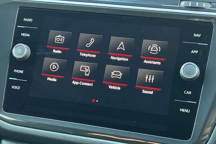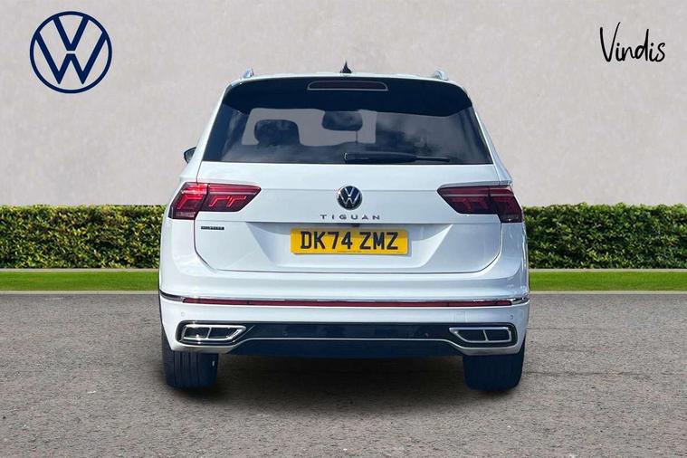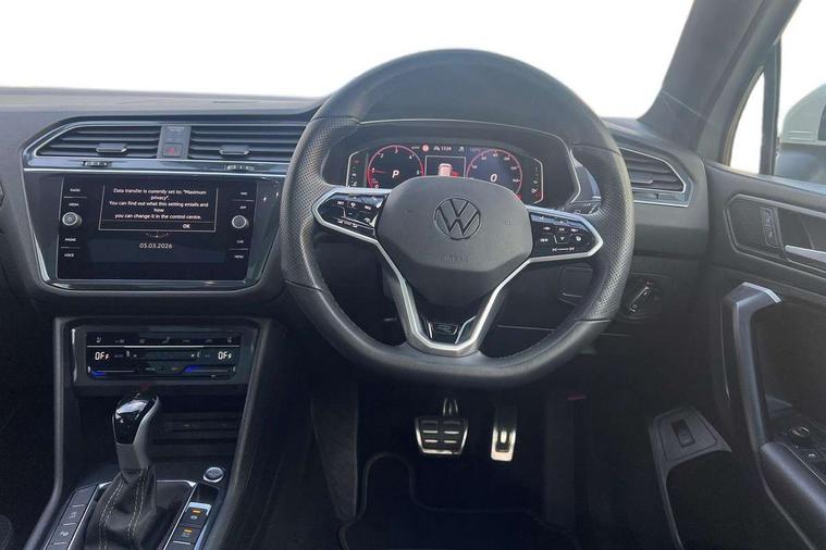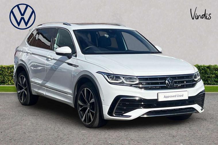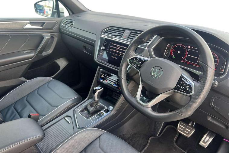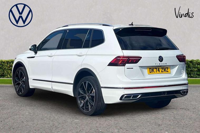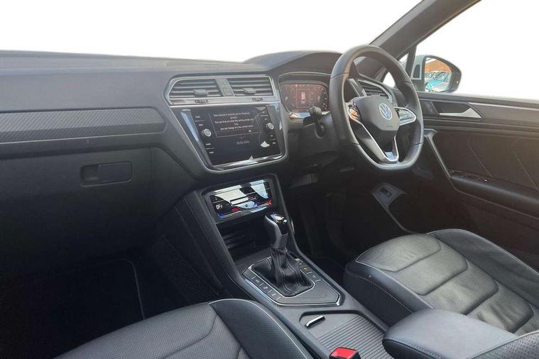 Adaptive cruise control, Advanced driver attention and drowsiness monitor, App-Connect, Digital cockpit pro, Driver profile selection, eCall emergency call service, Electric boot lid, Lane change assist, Lane keeping system Lane Assist, Mobile phone interface comfort with inductive charging feature, Multifunction front facing camera, Progressive steering, Speedo and rev counter, electronic odometer, trip, service interval display and exterior temperature gauge, Diesel particulate filter, Front wheel drive, Start-stop system with battery regeneration (recuperation - energy recovery during braking), 2 USB-C ports in the front, 1 USB-C charging socket on the center console in the rear, DAB Digital radio, Diversity antenna for FM reception, Auto dimming interior rear view mirror, Automatic headlight control system, Chrome mouldings on side window, Coming/leaving home lighting function, Exterior badge deletion, Rain sensor, Rear fog light, Rear side wing doors, Rear spoiler in R style, Rear wiper, Silver roof rails, Third brake light, 12-volt outlet in centre console rear and luggage compartment, 12V socket in centre console, 3 head restraints in rear, 3 individual folding 2nd row seats, 3rd row 2 individual seats, Air Care Climatronic 3 zone automatic climate control with enhanced air filter and controls in the rear, Black roof lining, Door and side trim panel with leatherette insert, Drawers under front seats, Driver + front passenger lumbar support, Driver and front passenger seat height adjustment, Foldable front passenger seat backrest, Front + rear carpet mats, Front centre armrest, Front footwell illumination, Illuminated scuff plates, ISOFIX anchorage points for mounting 2 child seats on rear seats and i-Size child seats, Leather gearshift handle, Leather wrapped multi function sports steering wheel with touch control and shifting paddles, LED interior light with switch off delay/dimmer and 2 front/rear LED reading lights, Stainless steel pedals, Sun visors with illuminated vanity mirrors, Top comfort sports seats in front with 'R' Logo, Ambience pack - Tiguan Allspace R Line, Driver assistance plus package - Tiguan Allspace, Park assist pack - Tiguan Allspace, 3 point seat belt for centre rear seat, 3 rear three point seatbelts, ABS+EBD+Brake assist, Driver and front passenger safety-optimised head restraints, Driver's and front passenger's airbag with front passenger's airbag deactivation switch, Electronic parking brake, Electronic Stability Control (ESC) inc EDL (Electronic Differential Lock) and ASR (Traction Control), Height adjustable front 3 point seatbelts + pretensioners, Manual rear child locks, Pedestrian monitoring, Rear disc brakes, Side airbag in front and rear with curtain airbag, Two tone horn, Warning buzzer for seatbelts if unfastened, Anti theft alarm system with interior monitoring, backup horn and towing protection, Anti-theft wheel bolts, Remote central locking with 2 remote folding keys,
