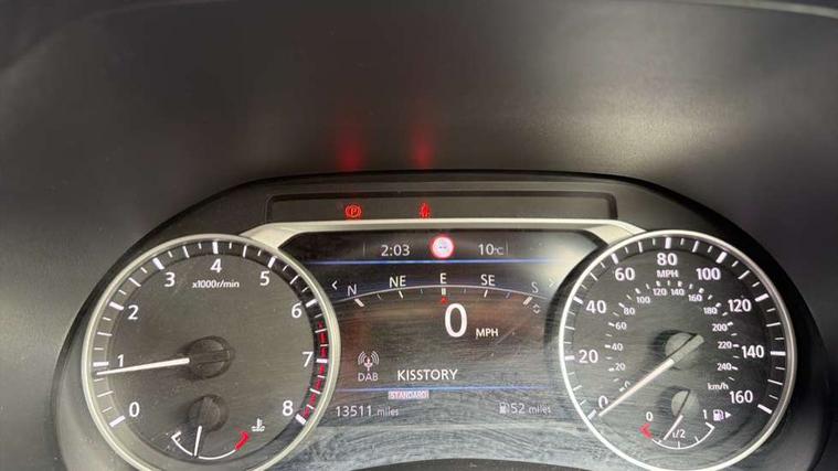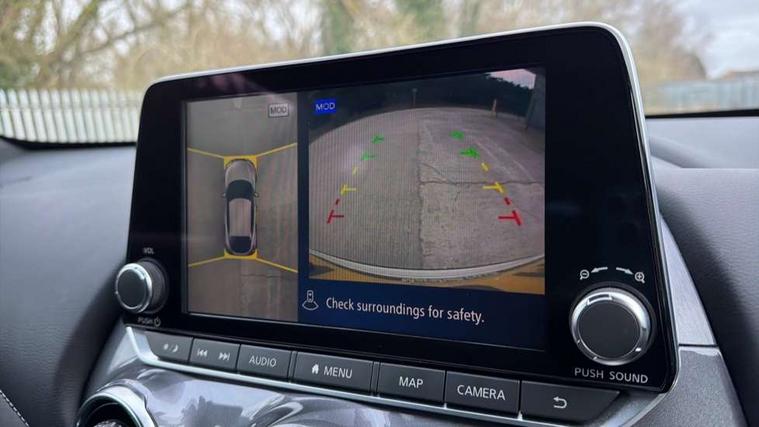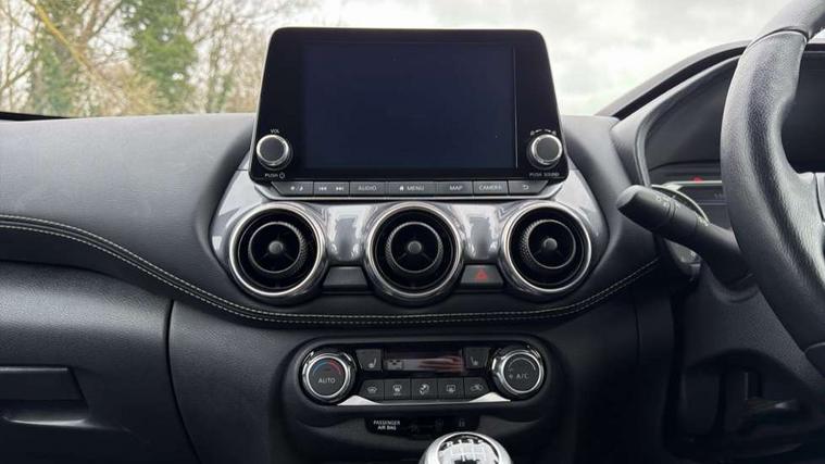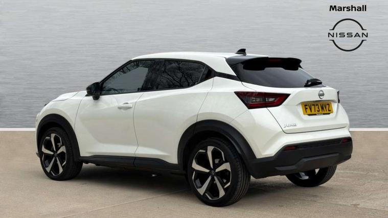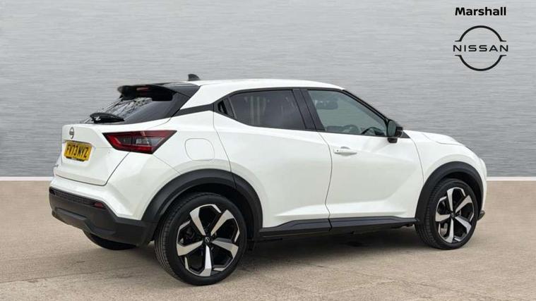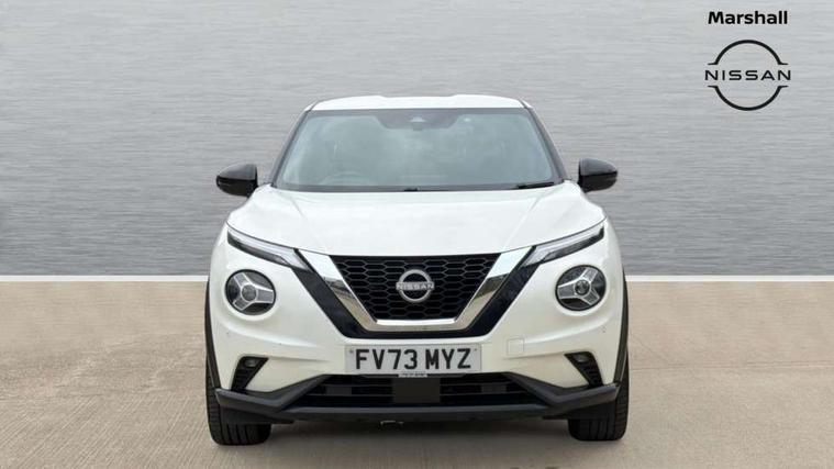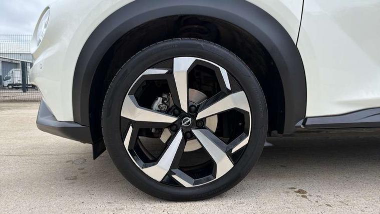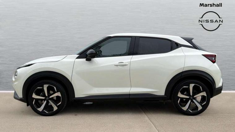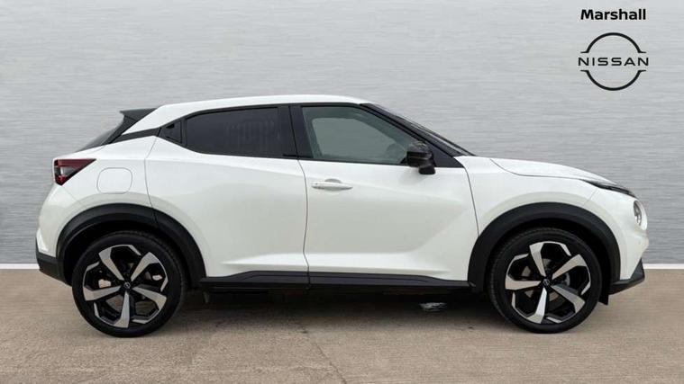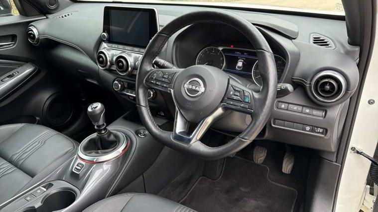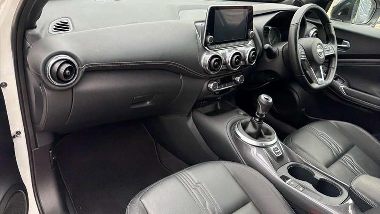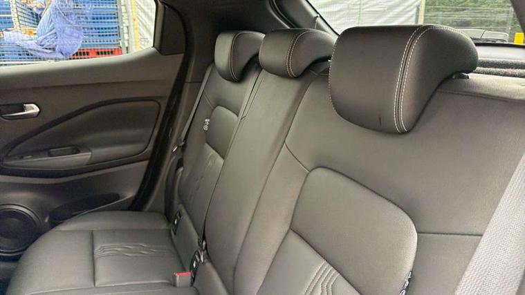 7" full colour TFT screen combimeter, Apple CarPlay and Google Android auto, Drive modes select (Eco, normal and sport), Emergency and breakdown call, Front parking sensor, Idle start/stop system, Intelligent lane intervention, Lane departure warning system, Nissan connect 8" touch screen entertainment system, Nissan connect nav with TomTom traffic, Nissan connect services and Wifi connection, Outside temperature sensor, Power Steering, Rear parking sensor, Traffic sign recognition, Trip computer, Voice recognition, Gasoline particulate filter, 10 Bose speakers 6 speakers and 2 headrest speakers for driver/passenger seats, Bluetooth system, USB, Aux-in and 12V socket, Bose personal sound stage control, DAB Digital radio, Rear console USB port, Auto dimming interior rear view mirror, Auto headlights, Automatic hazard signal with emergency stop signal, Body colour bumpers, Body colour door handles, Electrically adjustable door mirrors with integrated indicators, Follow me home headlights, Front and rear electric window with one touch driver window, Heated and auto folding door mirrors, High beam assist, LED 3rd brake light, LED daytime running lights, LED front fog lights, LED headlamps, LED rear fog lamp, LED rear lamps, Rain sensor windscreen wipers, Rear privacy glass, Rear side wing doors, Rear wiper, Roof spoiler, Shark fin roof antenna in Pearl Black, Thermaclear heated windscreen, Three blink turn signal, 3 height adjustable rear headrests, 3 seat bench in 2nd row, 60/40 split folding rear seat, Automatic climate control, Card holder on driver sunvisor, Door ambient lighting, Driver and passenger sliding and reclining seats, Driver seat back pocket, Driver side rear coat hanger, Driver/passenger sunvisors and vanity mirrors, Front and rear cabin lights, Front armrest, Front door pockets with bottle holders, Front head restraints, Front passenger isofix child seat anchorage point, Front/rear passenger grab handles, Gear console ambient circle lighting, Grey synthetic leather kneepad, Heated front seats, Height adjustable driver's seat, Height adjustable passenger seat, Internal chrome door handles, Leather gearshift knob, Leather steering wheel, Luggage board, Luggage space lighting, Monoform sporty seats, Multifunction steering wheel, Passenger seat back pocket, Rear door bottle holders, Single front passenger seat, Synthetic leather upholstery, Telescopic steering wheel adjustment, Two cupholders in front centre console, Two rear isofix child seat anchorage points with top tether, Welcome light and console tray ambient lighting, Advanced safety shield pack - Juke, ABS with EBD and brake assist, Active ride control, Active Trace Control, Driver and passenger airbags, Driver and passenger side airbags, Electric handbrake with auto hold function, Electronic Stability Programme (ESP), Front and rear curtain airbags, Height adjustable seatbelts, Hill start assist, Intelligent emergency braking with pedestrian and cyclist recognition, Rear door child safety locks, Seatbelt reminder for driver/front passenger and rear seats, Single tone horn, Three 3 point rear seatbelts, Traction control, Tyre pressure monitoring system, VDC Dynamic Vehicle Control, Ventilated rear brake discs, Alarm, Immobiliser, Intelligent key and start push button with walk away lock and approach unlock functions, Remote central locking,