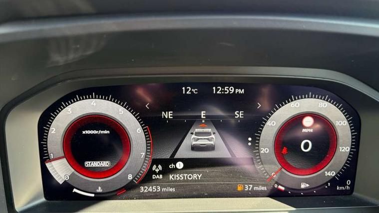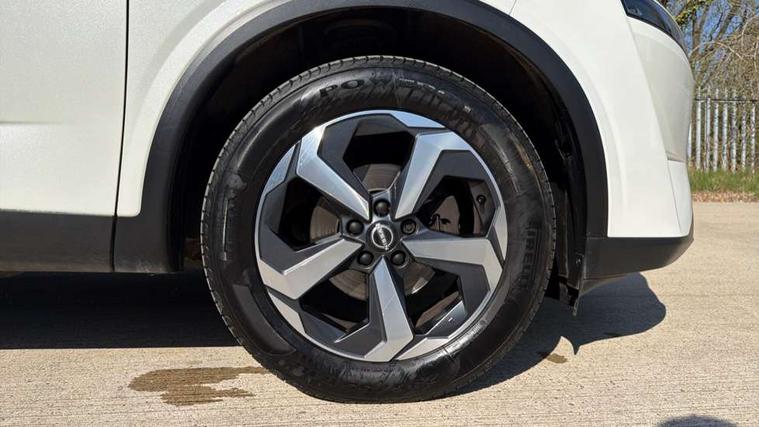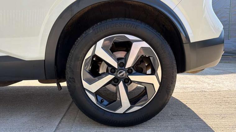 Android auto/Apple CarPlay (Wired), Blind spot warning, Drive modes (sport, normal, eco), Electric speed sensitive power steering, Emergency and breakdown call, Front and rear parking sensors, Full Digital 12.3" TFT Digital Combimeter, Google maps services - search, weather, 3D maps and Google street view, Idle stop/start system, Intelligent around view monitor, Intelligent Cruise control (ICC), Intelligent driver alert system, Intelligent forward collision warning, Intelligent lane intervention, Lane departure prevention, Lane departure warning system, Maximum speed limiter, Moving object detection, Nissan connect 12.3 inch touchscreen infotainment system, Nissan connect navigation, Push button starter, Rear cross traffic alert, Rear view camera, Remote control services - door locks, lights, horn and car locator, Telematics - notifications and connectivity services, TomTom live traffic services, Traffic sign recognition with legal speed adjustment, Trip computer, Virtual personal assistant and firmware over the air capability, Wireless apple carplay, 6 speakers, AM/FM audio system with DAB, Bluetooth audio streaming, Front USB connections (Type-A and Type-C), Rear USB charging only ports (Type-A and Type-C), Auto dimming rear view mirror, Auto rear wiper when reversing, Automatic hazard signal with emergency stop signal, Body colour mirror caps, Body coloured door handles, Bodyside mouldings, Chrome side window finisher, Door handle with button, Electric auto folding door mirrors, Electrically adjustable and heated door mirrors with LED turn indicator, Follow me home headlights, High beam assist, Intelligent auto headlights, LED daytime running lights, LED Headlights, LED rear lights, One touch front and rear electric windows with remote opening and closing, Partially body coloured bumpers, Privacy glass, Rear bumper with graphite insert, Rear reversing light (bulb lighting), Rear roof spoiler, Rear side wing doors, Rear styling plate, Shark fin antenna, Splash free rain sensing wipers, Super UV and infrared cut glass, Three blink turn signal, 12v power socket in dashboard and luggage, 2x Rear coat hooks, 3 bench rear seats in 2nd row, 3 rear headrests, 4 folding assist grip, 6 Luggage hooks - 4 on floor, 2 on side, 6-way manually adjustable driver's seat, 60/40 split folding rear seat bench, Ambient lighting around centre console, Centre console storage tray, Chrome interior door handles, Cloth monoform upholstery, Driver and front passenger sunvisors with illuminated vanity mirrors, Driver seat back pocket, Dual zone automatic climate control with pollen filter, Electrically adjustable lumbar support for driver, Front and rear door storage, Front centre console and armrest, Front cupholders x 2, Front door with bottle holders, Glovebox with light, Hard trunk cover, Height adjustable driver's seat, Height adjustable front headrests, Height adjustable passenger seat, Leather shift knob, Leather steering wheel, Luggage board system, Luggage space lighting, Manually adjustable passenger (slide recline + lifter), Multifunction steering wheel, Passenger seat back pocket, Rear armrest with 2 cupholders, Rear door bottle holders, Single front passenger seat, Soft PVC kneepad, Steering wheel switches, Sunglasses holder, Tilt/telescopic adjustable steering wheel, Two rear isofix child seat anchorage points with top tether, Welcome light and console tray ambient lighting, 3x3 point rear seatbelt pretensioners + load limiters, ABS with EBD and brake assist, Active brake limited slip, Auto hold function, Child locks on rear doors, Curtain and front side, far side airbags, Driver and passenger airbags, Driver, passenger and 2nd row rear seat belt reminder, Electronic parking brake, Front seatbelt pretensioners + load limiters, Height adjustable front seatbelts, Hill start assist, Intelligent blind spot intervention, Intelligent front emergency braking with pedestrian, cyclist recognition and junction assist, Intelligent rear automatic braking, Tyre pressure monitoring system, Vehicle dynamic control, Capless fuel filler, Engine immobiliser, Intelligent Key, Remote central door locking with deadlocking, Thatcham Cat.1 alarm, Interior instrumental panel B finisher, 18" Diamond cut alloy wheels, Tyre puncture repair kit,