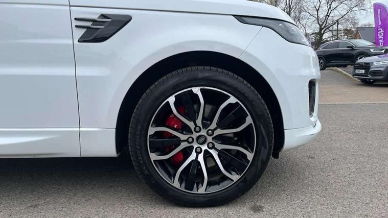 All Terrain Info Centre, Android Auto, Apple car play, Bluetooth connectivity, Electric power assisted steering (EPAS), Incontrol apps in vehicle touchscreen, Interactive Driver display instrument cluster, Mist sensor, Navigation pro system with 10" touch screen, app interface and media storage, Pro services and wifi hotspot, Push button start, Remote premium - Upgraded Incontrol remote app including remote climate control (engine dependent), remote lock + Unlock and remote beep + flash, TFT Virtual Instrument Panel, Touch pro duo system, Trip computer, 7 kW onboard charger, Adaptive dynamics, Electronic active differential with brake torque vectoring, Electronic air suspension, Gradient release control (GRC), Public charging cable, Terrain Response 2 with dynamic program, Twin speed transfer box, Bluetooth audio streaming, DAB Radio (Digital Audio Broadcasting), Incontrol protect - SOS emergency call with automatic collision detection, optimised assistance call and Incontrol remote app essential, USB/aux input socket, Acoustic front and toughened rear side glass, Acoustic laminated front windows, Adaptive brake lights, Auto dimming interior rear view mirror, Automatic headlights, Body coloured side sills and bumpers corners, Centre high mounted stop light, Electric windows with one touch open/close and anti trap, Electrical towing preparation, Engine cover, Follow me home lighting, Front and rear recovery eyes, Front fog lights, Headlight power wash, Heated rear window, Heated windscreen includes heated washer jets, Illuminated metal treadplates with brand name script, LED rear lamps, Rain sensing windscreen wipers, Rear fog lights, Rear side wing doors, Rear wash/wipe, Remote window closing, Side repeater indicators in mirror, Standard bonnet, Trailer stability assist, Twin bright tailpipes, 2 way active front head restraints, 2 way rear head restraints, 3 seat bench in 2nd row, Automatic air recirculation system, Bright metal foot pedals, Centre console with armrest, Climate control memory, Customer configurable single point entry, Driver's footrest, Extended leather upgrade includes door top rolls and leather instrument panel mid section, Front and rear cupholders, Front door storage space, Front map lights, Front seat back map pockets, Front stowage pocket, Front/rear passenger grab handles, Isofix child seat preparation, Leather steering wheel with Atlas inserts, Loadspace light, Loadspace mounting provisions, Lockable glovebox, Multifunction steering wheel, Pollen filter, Power socket, Reach/rake electric adjustable steering column + entry/exit tilt away, Rear centre armrest, Rear ISOFIX, Roller blind loadspace cover, Satin chrome gearshift paddles, Single front passenger seat, Sports pedals, Three 12V accessory power outlets, Smartphone pack - Range Rover Sport, 3 point seatbelts on all seats, Anti-lock braking system (ABS), Brake pre-fill technology, Cornering brake control (CBC), Curtain airbags, Customer configurable autolock, DSC - Dynamic Stability Control, Dual stage driver/passenger airbags, EBD - Electronic brakeforce distribution, Electric parking brake, Electronic traction control, Emergency braking includes city, urban AEB and pedestrian, Front seatbelt pretensioners, Gradient acceleration control, Height adjustable front seatbelts, Hill descent control, Hill launch assist, Low traction launch, Passenger seat occupant detector with front airbags, Power operated child locks, Roll stability control, Seatbelt warning, TPMS (Tyre pressure monitoring system), Immobiliser, Intrusion sensor, Keyless entry, Locking wheel nuts, Perimetric and volumetric anti theft alarm, Remote locking, Tyre repair system,