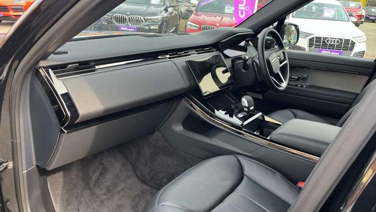 13.1" Touchscreen, 3D 360 degree surround camera with wade sensing, Android Auto, Apple car play, Blind spot assist, Bluetooth connectivity streaming, Driver monitoring and response, Eco mode, Front and rear parking aid, Interactive Driver display instrument cluster, Lane departure warning system, Lane keep assist, Push button start, Rear traffic monitor, Remote, Traffic sign recognition with adaptive speed limiter, Trip computer, Wireless device charging, 8 speed automatic transmission, Adaptive dynamics, All wheel drive system, Automatic access height, Terrain Response 2, DAB Radio (Digital Audio Broadcasting), Incontrol protect - SOS emergency call with automatic collision detection, optimised assistance call and Incontrol remote app essential, Pivi pro connected, USB/aux input socket, Adaptive brake lights, Automatic headlight levelling, Automatic headlights, Centre high mounted stop light, Electric heated/power fold memory door mirrors with approach lights and auto dimming driver side, Electric windows with one touch open/close and anti trap, Engine cover, Flush deployable exterior door handles, Follow me home lighting, Front and rear recovery eyes, Headlight power wash, Heated rear window, Heated washer jets, Heated windscreen, Illuminated aluminium treadplates with Range Rover script, LED tail lights, No badges, Rain sensing windscreen wipers, Rear animated directional indicators, Rear fog lights, Rear side wing doors, Rear wash/wipe, Remote window closing, Side repeater indicators in mirror, Trailer stability assist, Winter wiper park position, 3 seat bench in 2nd row, 60:40 seats with power recline and loadthrough, Air quality sensor, Automatic air recirculation system, Centre console with armrest, Customer configurable single point entry, Driver's footrest, Easy boot loading, Electric adjustable steering column, Front and rear cupholders, Front door storage space, Front head restraints, Front map lights, Front seat back map pockets, Front stowage pocket, Front/rear passenger grab handles, Full leather steering wheel, Heated steering wheel, Isofix child seat preparation, Loadspace cover, Loadspace Hook, Loadspace light, Loadspace mounting provisions, Lockable glovebox, Luggage tie-downs in loadspace, Multifunction steering wheel, Pollen filter, Power socket, Rear centre armrest, Rear head restraints, Rear ISOFIX, Satin chrome gearshift paddles, Seat backboard in PVC, Single front passenger seat, Three 12V accessory power outlets, Upper secondary glovebox, Online pack with data plan - Range Rover Sport, 3 point seatbelts on all seats, Anti-lock braking system (ABS), Brake pre-fill technology, Configurable autolock, Cornering brake control (CBC), DSC - Dynamic Stability Control, EBD - Electronic brakeforce distribution, Electric parking brake, Electronic traction control, Emergency braking, Front seatbelt pretensioners, Front side airbags, Height adjustable front seatbelts, Hill descent control, Hill launch assist, Low traction launch, Passenger seat occupant detector with front airbags, Power operated child locks, Roll stability control, Seatbelt warning, TPMS (Tyre pressure monitoring system), Immobiliser, Intrusion sensor, Keyless entry, Locking wheel nuts, Perimetric and volumetric anti theft alarm, Remote locking,