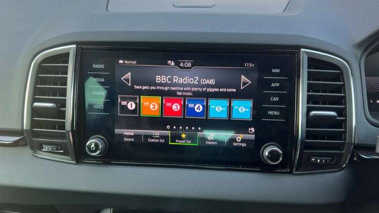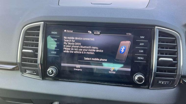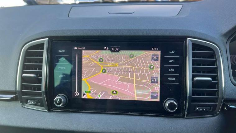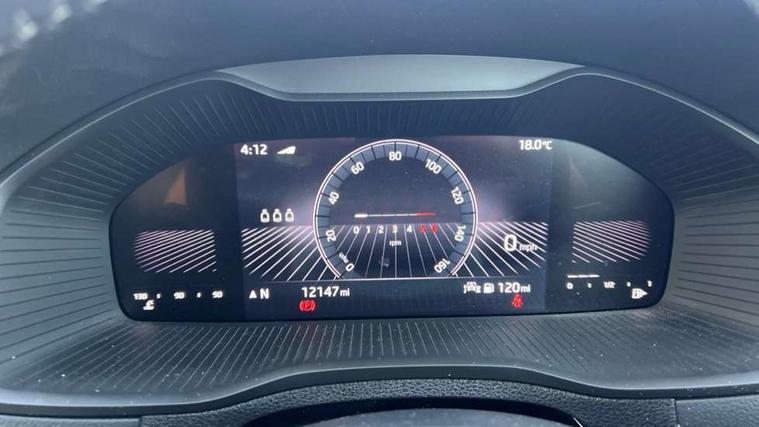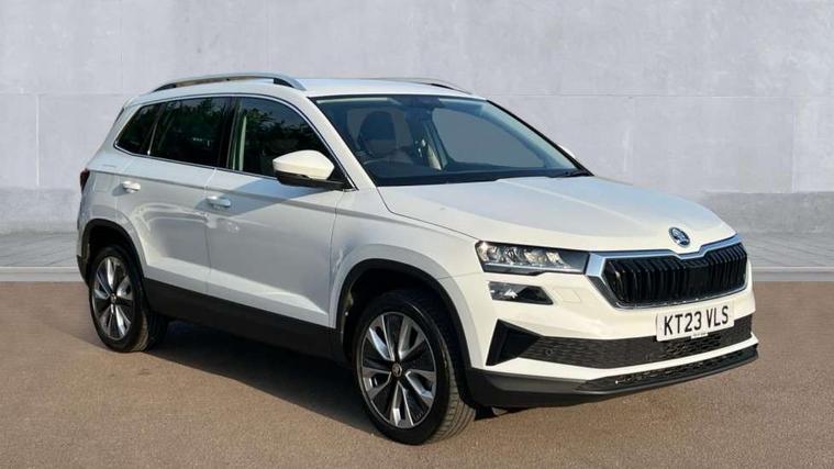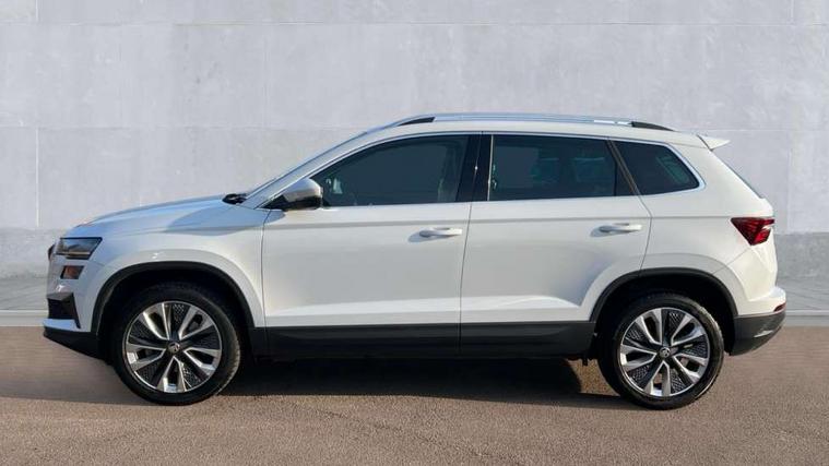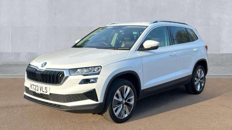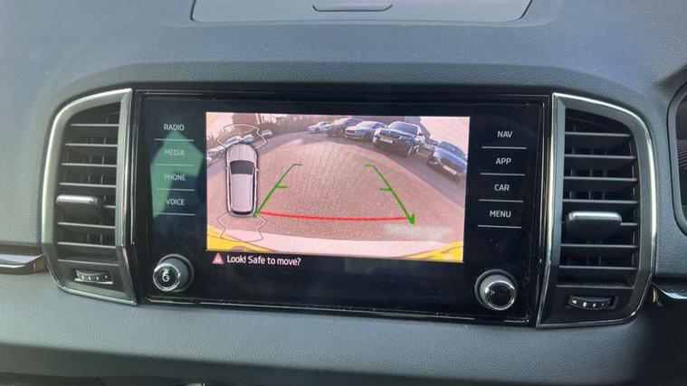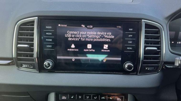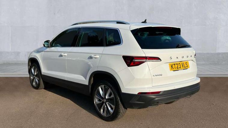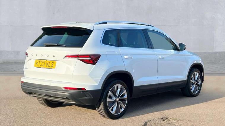 8" Digital display, Care connect, Drive mode selector, Driver fatigue sensor, Electro-mechanical PAS, Emergency services call system, Outside temperature gauge, Service interval indicator, SmartLink wireless for Apple and wired for Android, Start/stop system with regenerative braking, USB C Port x 2 in front centre console, Diesel particulate filter, 8 Speakers, DAB radio with Bluetooth, USB connection, Acoustic glass, Aero front windscreen wipers with intermittent function, Auto dimming rear view mirror with light and rain sensors, Black electric window control buttons, Body colour door mirrors and handles, Dynamic headlight range control with cornering light function, Electric front and rear windows with child proof lock, Heated rear windscreen, LED daytime running lights, LED rear lights with high functionality welcome effect and dynamic indicators, Light assistant (coming/leaving home/tunnel light), Plastic scuff plates, Privacy glass, Rear side wing doors, Rear spoiler, Rear window wiper with washer system and intermittent control, Safety reflectors on front doors, Third brake light, 1.5 litre bottle holders in driver and front passenger door panels, 12V socket in boot, 12v socket in front centre armrest with storage compartment and rear air vents, 2 spoke leather heated multifunction steering wheel, 2 x Tablet holder, 3 rear height adjustable headrests, 3 seat bench in 2nd row, 4 foldable roof handles with rear coat hooks, Black floor carpet, Chrome inner door handles, Decorative door sills with KAROQ badging, Double sided boot floor, Foldable hooks in the boot, Front head restraints, Height adjustable front three point seats belts with tensioners, Height/reach adjust steering wheel, Ice scraper, Illuminated glovebox, Illuminated luggage compartment, Interior noise suppression, Isofix child seat preparation for front passenger seat, Isofix child seat preparation outer rear, Manual lumbar support for front seats, Pen holder, Pollen filter, Rear boot cover, Rear reading lights, Rubbish bin door, Safety vest holder, Single front passenger seat, Storage box in upper central dashboard closed, Sunvisors with illuminated vanity mirrors, Textile floor mats, Ticket holder, VarioFlex seats with standard rear seat release, Boot pack - Karoq, Chrome roof rails + chrome pack - Karoq, Parking pack - Karoq, Automatic door unlocking in case of crash, Automatic fuel cut off in case of crash, Child locks on rear doors, Driver airbag, Electronic parking brake with auto hold function, Emergency rear braking signal, ESC including ABS, MSR, ASR, EDS, HBA, DSR, RBS, MKB and traction control, Front side airbags, Hill hold control, Knee airbags, Passenger airbag with switch-off function, Pedestrian monitor, Seatbelt reminder signalisation and pretensioner for all seats, Three point seatbelts rear, Two tone horn, Tyre pressure display, Tyre pressure monitor, Alarm with interior monitoring, back up horn and tilt sensor with safe function, Electronic engine immobiliser, Keyless entry and start/stop, Remote central locking with 2 remote folding keys, Chrome framed air vents, 18" Procyon silver alloy wheels with anthracite aero inserts, Anti-theft wheel bolts protection, Storage on wheel cover, Tool kit,