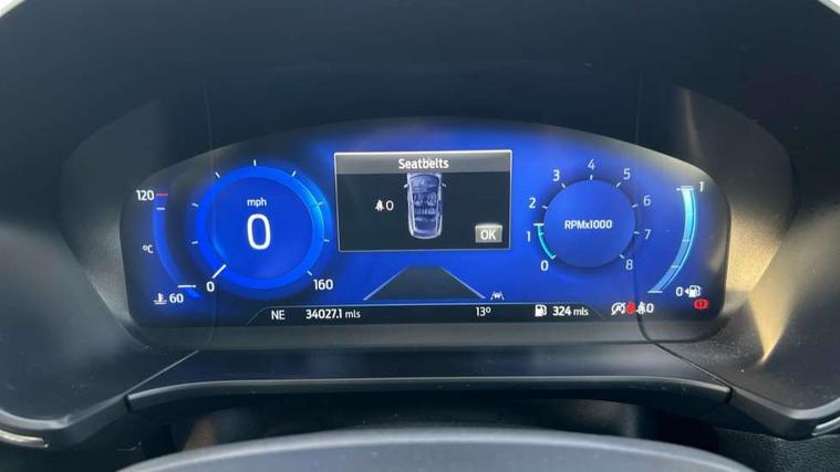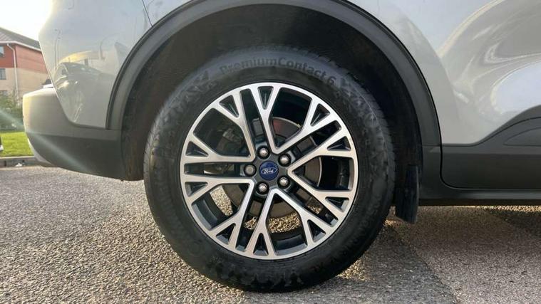 12.3" digital colour instrument cluster, Ford easy fuel, Ford SYNC 3 with 8" TFT LCD touchscreen, App Link, andriod auto/apple carPlay, emergency assistance and navigation with Ford pass connect, Front and rear parking sensors, Hands free power tailgate, Lane keeping aid with lane departure warning, Power assist steering, Rear view camera, Selectable drive modes, Service interval indicator, Standard suspension, Twist beam rear suspension, B&O premium audio system with 10 speakers and subwoofer, 2 USB ports, DAB radio/CD, Auto dimming rear view mirror, Auto headlamps with high and low beam, Auto wipers, Front LED fog lamps, LED daytime running lights, LED rear lights, Power folding heated door mirrors with puddle lights, Power front/rear windows with global close, Privacy glass, Quickclear heated windscreen, Rear side wing doors, Rear spoiler, Rear wiper, Silver roof rails, Third brake light, Twin exhausts, 10 way power adjustable drivers seat, 2nd row sliding seats with 60:40 split, 8 way manual passenger seat including lumbar support and height adjust, Ambient lighting, Centre console with electronic parking brake, Electronic automatic temperature control (EATC), Front and rear floor mats, Front and rear head restraints, Partial premium touch sensico leather upholstery with black cloth inserts, Rear charging point, Single front passenger seat, Sports seats, 3x3 point rear seatbelts, Airbags - front driver/passenger, front and rear curtain, Drivers knee airbag, Electronic stability control (ESC) and ABS, Ford MyKey Gen 2 safety system, Manual child proof rear door locks, Post collision braking, Pre collision assist with autonomous emergency braking, Rear seat Occupancy alert, Tyre pressure monitoring system, Engine immobiliser, Keyless entry and Ford power start button (Keyless start), Locking wheel nuts, Remote powered central double locking doors, Thatcham category 1 alarm, 18" 5x2 spoke magnetic and machined finish alloy wheels,