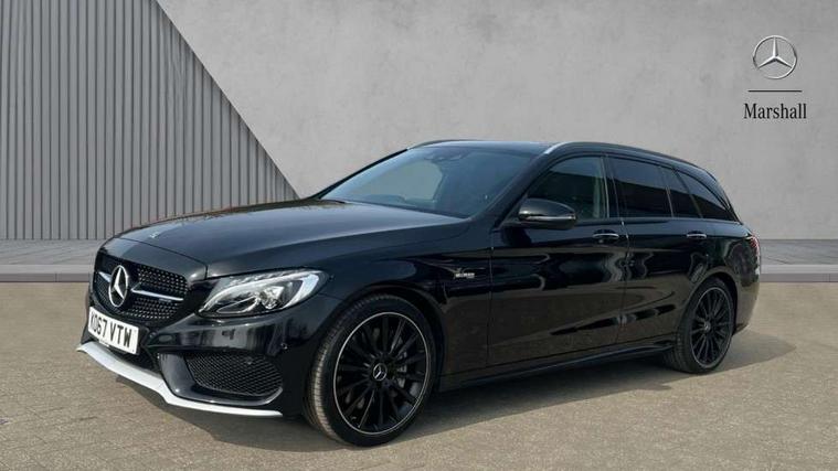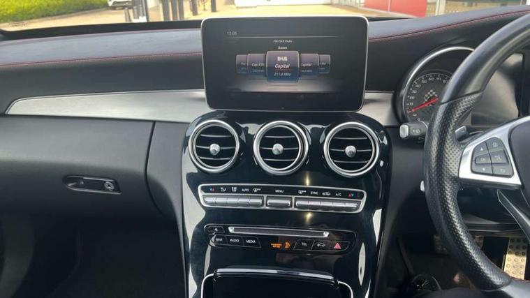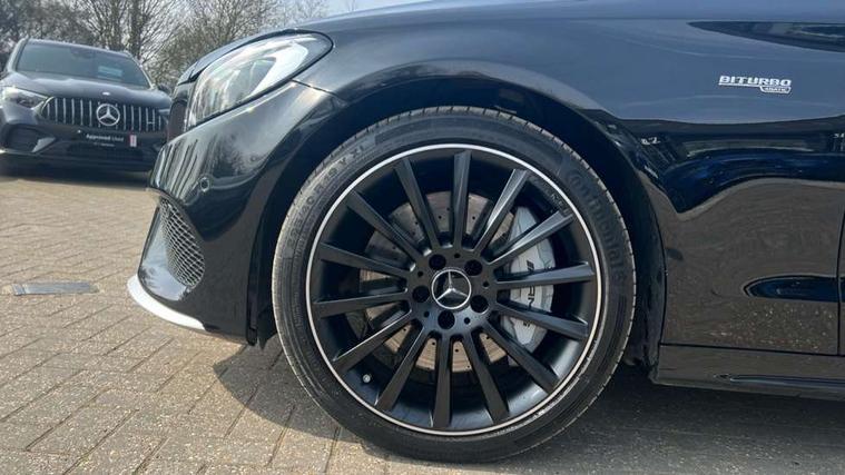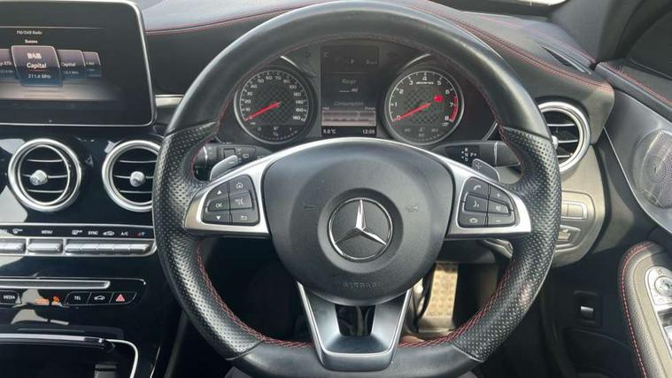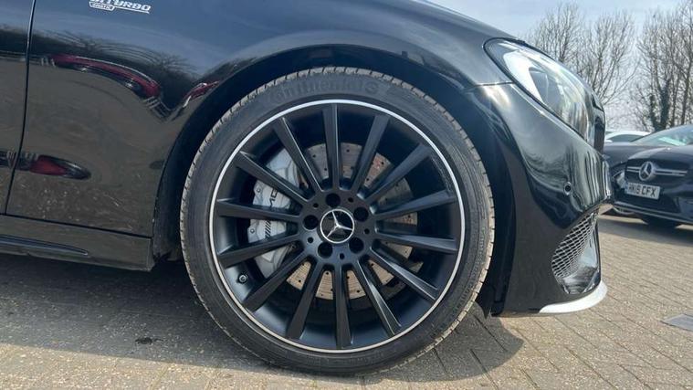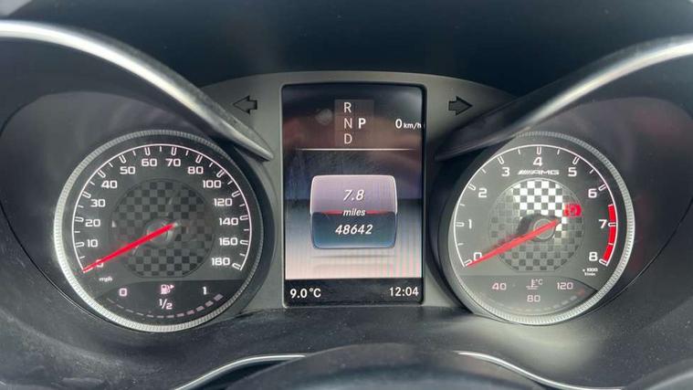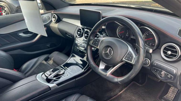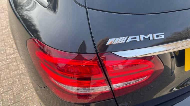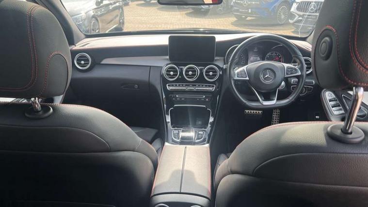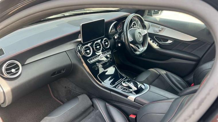 Active park assist with parktronic system, Analogue clock, Attention assist, Bluetooth system, Collision prevention assist, COMAND online nav with colour display, radio/CD/DVD/MP3, SD card, 10GB music, Emergency Call system, speed limit assist, linguatronic voice control, DYNAMIC SELECT with a choice of driving modes (ECO, Comfort, Sport, Sport+ and Individual), Multi function trip computer, Outside temperature gauge, Power opening/closing tailgate, Remote boot release, Service indicator (ASSYST PLUS), Speed sensitive steering, AMG Ride Control sports suspension, 2 USB ports in centre console, Burmester surround sound system, DAB Digital radio, SD card slot, Adaptive brake lights, AMG body styling, Black door mirrors, Body coloured bumpers, Chrome pins diamond radiator grille with integrated stars, Electric front sliding and fixed rear panoramic glass sunroof, Electric windows one touch open/close, Electrically adjustable and heated door mirrors, Green tinted glass, LED daytime running lights, LED tail lights, Rain sensor windscreen wipers, Rear wiper, 2 cupholders in front centre console, 3 spoke flat bottomed nappa leather sport steering wheel, 40:20:40 split folding rear seats, Advanced multicolour ambient light and LED interior light, AMG floor mats with red stitching, Auto Mercedes-Benz child seat recognition sensor, Dual zone automatic climate control, Front and rear head restraints, Front centre armrest with storage compartment, Gearshift paddles, Heated front seats, Illuminated glovebox, Load compartment cover, Lumbar support, Multifunction steering wheel, Rear top tether child seat ISOFIX attachment, Sports pedals with stainless steel surfaces and rubber studs, Sunvisors with illuminated vanity mirrors, Lighting pack - C class, Memory pack - C Class, Mirror pack - C Class, Seat comfort pack - C Class, Stowage space pack - C Class, 3 rear 3 point seatbelts, ABS with Brake Assist, Active bonnet, Adaptive brake system, Child proof door locks, Drivers knee airbag, Dual stage driver/passenger airbags, Electronic parking brake, ESP with ASR, Front passenger seat occupancy sensor, Front side airbags, Hill start assist, Rear seatbelt warning indicator, Red seat belts, Tyre pressure monitoring system, Warning triangle and first aid kit, Window airbags, Alarm system/interior protection/immobiliser, Chrome surround in electric key, Keyless entry and keyless start, Remote central locking, Artico upholstered dashboard with contrast stitching, Tyre inflation kit,