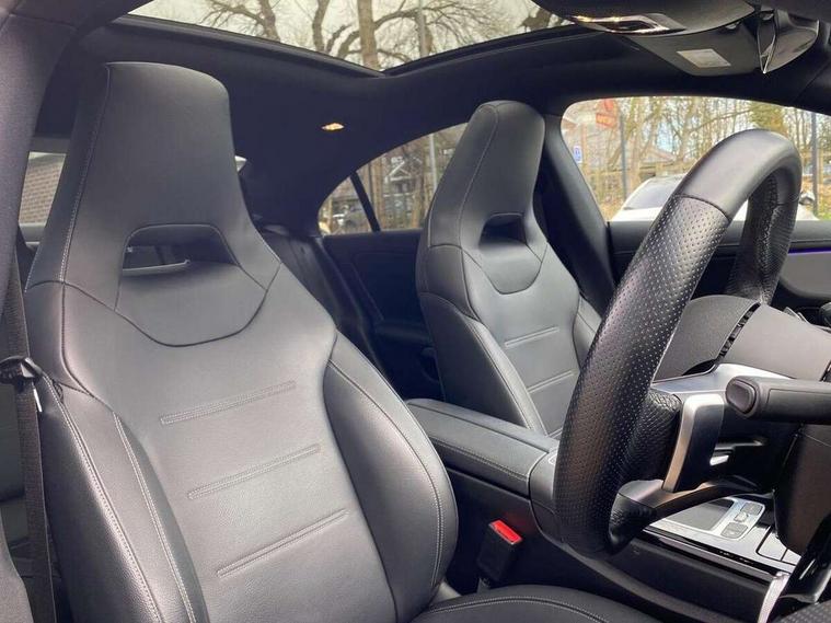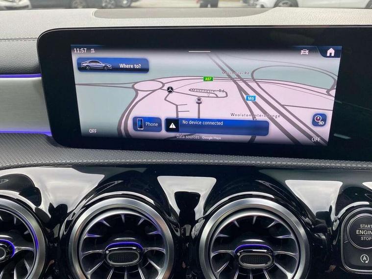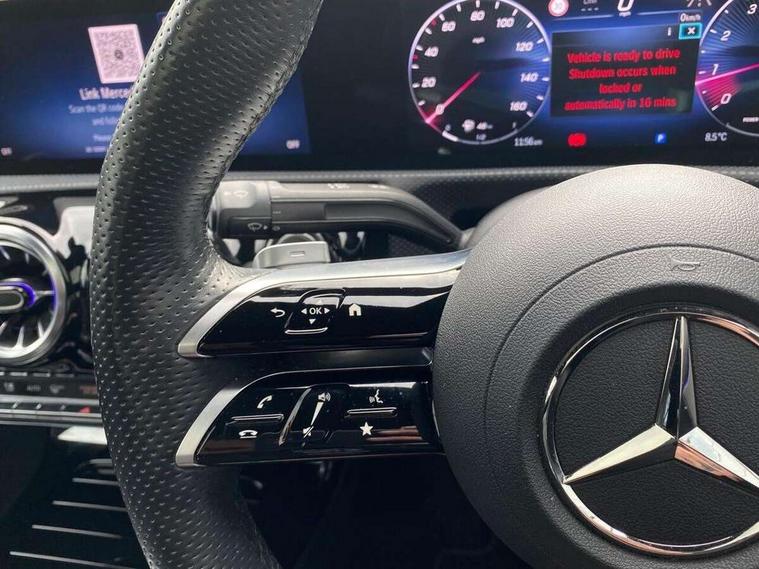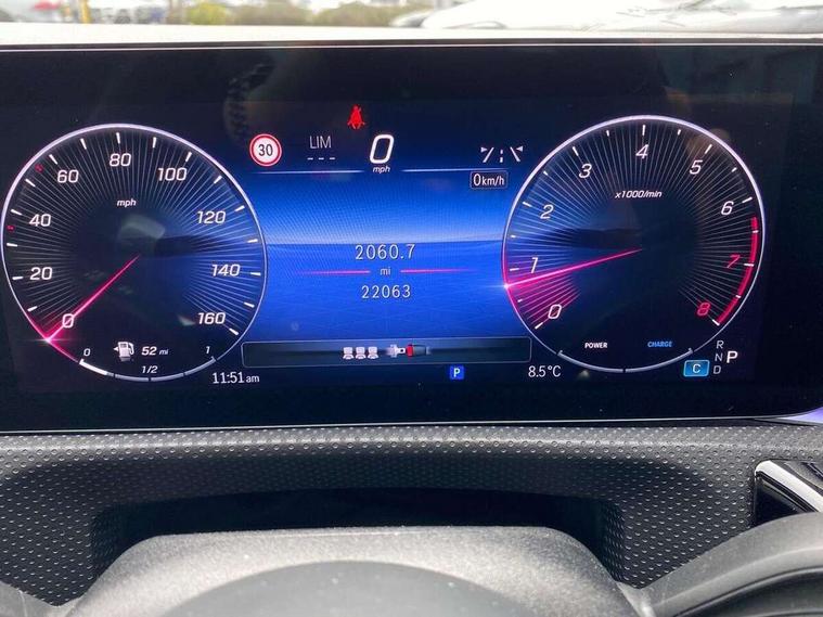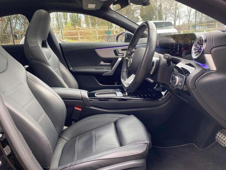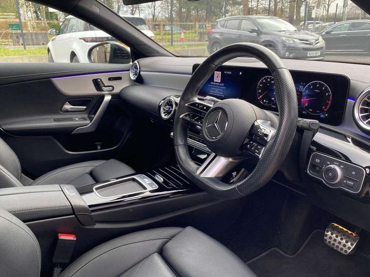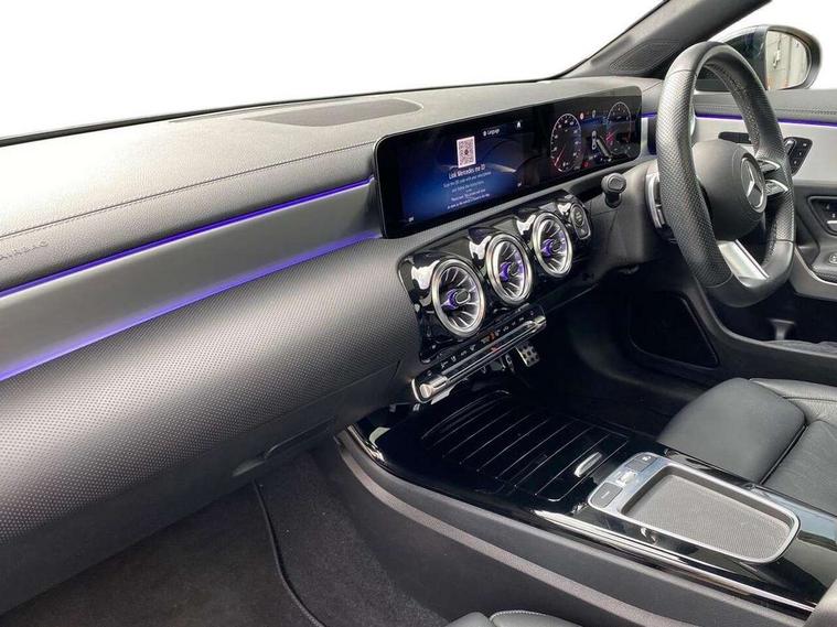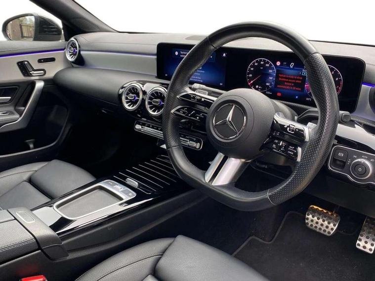 10.25 inch Instrument display with digital cockpit, 10.25 inch touchscreen central media display, Active lane keeping assist, Attention assist - Monitors steering behaviour and long journey fatigue, Bluetooth connection, Car wash mode, Cruise control with limiter, Direct steer system, DYNAMIC SELECT with a choice of driving modes (ECO, Comfort, Sport and Individual), ECO start/stop function, Fluid level warning indicator for fuel, oil, coolant and washer fluid, Hard-disk navigation, Hey Mercedes Voice activation, Lamp failure indicator, MBUX augmented reality for navigation, Mercedes me connect including emergency call system, accident recovery, breakdown and maintenance management, Mercedes me remote services, Outside temperature gauge, Owners manual in English, Pre-installation of private car share, Radio aerial integrated into front and rear windshields, Service indicator (ASSYST), Smartphone integration with Apple CarPlay and Android auto, Traffic sign assist, Trip computer in multifunction display with current consumption indicator, Wireless charging in the front centre console, Comfort suspension with ride height lowering, Rear axle multi-link, DAB digital radio tuner, MBUX multimedia system, Mercedes Benz advanced sound system (225 W) with 10 speakers, 1 central speaker, speakers on doors, a tweeter on door, one sub woofer + boost amplifier, Pre installation for Mercedes Benz Link, Adaptive brake lights, AMG body styling with AMG front apron and rear apron and visible exhaust tailpipe in chrome trim elements, Body colour door handles, Electric panoramic sunroof with automatic tilt and convenience closing fuinctions, rain sensor auto closing and electronic roller sunblind, Electric windows, Electrically adjustable and heated door mirrors with integrated LED indicators, Exhaust system with 2 Visible tailpipe trim elements and rear apron with trim in chrome, Hand free access, Headlamp assist automatic headlamp activation, Heated glass rear windscreen + timer control, High gloss beltline strips, High level LED third brake light, Integrated LED daytime running lights, Interior mirror with black reading lamps and frameless, LED tail lamp, Multibeam LED headlamps with adaptive highbeam assist plus, Privacy glass with dark tinting on rear side windows and rear window, Radiator grille with Mercedes-Benz pattern in chrome and central Mercedes star, single louvre in high-gloss black with chrome inserts, Rain sensing windscreen wipers with two sensitivity settings, Rear boot, Rear fog lamp, Rear side wing doors, Variable front intermittent wipers, 3 seat bench in 2nd row, 3 twin spoke flattened multifunction steering wheel in nappa leather - horizontal twin spoke in high gloss black, vertical twin spoke in silver chrome, 40:20:40 split folding rear seat backrests, Air conditioning - Two zone thermotronic luxury automatic climate control with display, Air vents with surround in silver chrome, Automatic child seat recognition sensor, Black roof lining, Brushed stainless steel sports pedals with rubber studs, Electrically adjustable front memory seats including 4 way lumbar support, Floor mats with stitched AMG lettering, Fluorescent jacket, Front centre armrest with stowage, Galvanished gear shift paddles in silver chrome, Heated front seats, Illuminated front door sills with Mercedes Benz lettering and changeable cover, Interior lighting - 64 colour Ambient lighting, Luggage net on driver/front passenger seat backrest, Manually height and reach adjustable steering column, Rear armrest with two integral cup holders for drinks, Rear head restraints, Single front passenger seat, Sport seats with fixed head restraints, Stowage compartment in centre console with retractable cover, Sunvisors with illuminated vanity mirrors, Twin front cupholders, Two outer rear seat isofix and top tether child seat fixing points, Drive parking assist pack with 360 degree camera - CLA, Keyless go comfort pack - CLA, Light and sight pack - CLA, Mirror pack - CLA, Night package - CLA, Seat comfort pack - CLA, USB package plus - CLA, Active bonnet pedestrain safety measure which detects an impact and raises bonnet by 65mm, Adaptive brake assist with hold function and hill start assist, Anti lock braking system (ABS) with brake assist, Black seat belts, Bonnet with power domes, Brake calipers with Mercedes-Benz lettering, Brake pad wear warning indicator, Childproof locks manually operated for rear doors and electrically operated for rear power windows, Crash responsive emergency lighting, Driver and front passenger head and sidebags, Driver and front passenger windowbags, Drivers knee airbag, Dual stage driver and front passenger airbags, Electric parking brake, Electronic stability programme with acceleration skid control, ESP curve dynamic assist, Exit warning, Front and rear seatbelt reminder, Front passenger seat occupancy sensor, Perforated front brake discs, Sports braking system, Three point rear seat belts, Tyre pressure monitoring system, Warning triangle and first aid kit, Alarm system with immobiliser and interior protection -Thatcham category 1, Guard 360 deg vehicle protection - tow away protection with visual, acoustic warning, interior monitoring, preinstallation for parking damage, Remote central locking and crash sensor with emergency opening function, Light aluminium with longitudinal grain interior trim, 19" AMG multi-spoke black painted light alloy wheels with high sheen rim finish, Summer tyres, Tirefit tyre sealant kit,