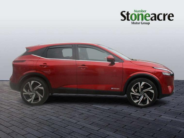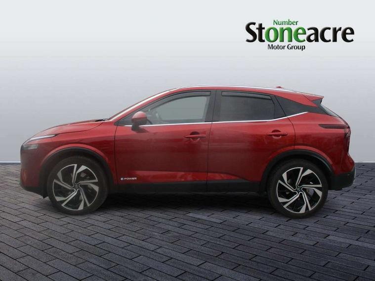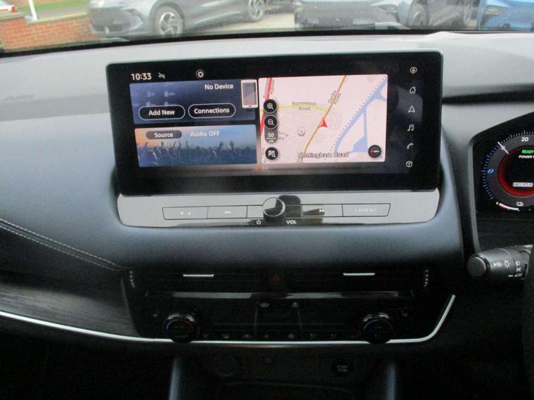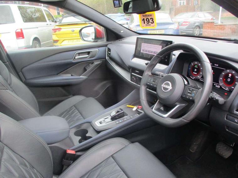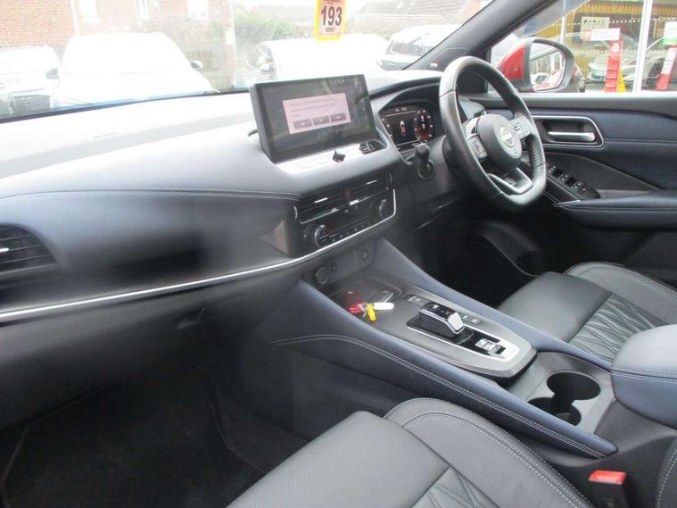 Advanced windscreen head up display, Blind spot warning, Drive modes (sport, normal, eco), e-Pedal step, Electric speed sensitive power steering, Emergency and breakdown call, Front and rear parking sensors, Full Digital 12.3" TFT Digital Combimeter, Google maps services - search, weather, 3D maps and Google street view, Hands free power tailgate, Idle stop/start system, Intelligent around view monitor, Intelligent Cruise control (ICC), Intelligent driver alert system, Intelligent forward collision warning, Intelligent lane intervention, Lane departure prevention, Lane departure warning system, Lane keep assist, Moving object detection, Nissan connect 12.3 inch touchscreen infotainment system, Nissan connect navigation, Pro pilot park assist, Push button starter, Rear cross traffic alert, Rear view camera, Remote control services - door locks, lights, horn and car locator, Telematics - notifications and connectivity services, TomTom live traffic services, Traffic sign recognition with legal speed adjustment, Trip computer, Virtual personal assistant and firmware over the air capability, Wireless Apple CarPlay and wired Android Auto, Wireless charging pad, 10 Bose speakers - 2 tweeters, 6 high and medium frequency door speakers and 2 in subwoofer, AM/FM audio system with DAB, Bluetooth audio streaming, Bose acoustimass bass box, Digital amplifier, Front USB connections (Type-A and Type-C), Rear USB charging only ports (Type-A and Type-C), Auto dimming rear view mirror, Auto rear wiper when reversing, Automatic hazard signal with emergency stop signal, Body colour mirror caps, Body coloured door handles, Bodyside mouldings, Chrome side window finisher, Door handle with button, Door mirror memory, e-POWER badging, Electric auto folding door mirrors, Electrically adjustable and heated door mirrors with LED turn indicator, Follow me home headlights, Front and rear LED turning signals, Headlights auto levelling system, Intelligent auto headlights, LED 3rd brake light, LED daytime running lights, LED front fog lights, LED headlights with adaptive driving beam, LED rear lights, One touch front and rear electric windows with remote opening and closing, Privacy glass, Rear bumper with graphite insert, Rear reversing light (bulb lighting), Rear roof spoiler, Rear side wing doors, Rear styling plate, Reverse tilting door mirrors, Shark fin antenna, Splash free rain sensing wipers, Super UV and infrared cut glass, Thermaclear heated windscreen, Three blink turn signal, 12v power socket in dashboard and luggage, 2x Rear coat hooks, 3 bench rear seats in 2nd row, 3 rear headrests, 4 folding assist grip, 6 Luggage hooks - 4 on floor, 2 on side, 60/40 split folding rear seat bench, Ambient lighting around centre console, Ambient lighting in front doors, Centre console storage tray, Chrome interior door handles, Dark black/blueish PVC wrapping, Dark headlining, Driver and front passenger sunvisors with illuminated vanity mirrors, Driver seat back pocket, Dual zone automatic climate control with pollen filter, e-POWER shifter, Electric 4-way lumbar support for drivers seat, Electric adjustable 4 way lumbar support for passenger seat, Electrically adjustable driver seat with massage and memory functions, Front and rear door storage, Front centre console and armrest, Front cupholders x 2, Front door with bottle holders, Glovebox with light, Hard trunk cover, Heated front seats, Heated steering wheel, Height adjustable driver's seat, Height adjustable front headrests, Height adjustable passenger seat, Leather steering wheel, Luggage board system, Luggage space lighting, Manually adjustable passenger (slide recline + lifter), Multifunction steering wheel, Passenger seat back pocket, Quilted premium leather upholstery, Rear armrest with 2 cupholders, Rear door bottle holders, Single front passenger seat, Soft PVC kneepad, Steering wheel switches, Tilt/telescopic adjustable steering wheel, Two rear isofix child seat anchorage points with top tether, Welcome light and doors with console tray ambient lighting, Glass roof pack with roof rails - Qashqai, 3x3 point rear seatbelt pretensioners + load limiters, ABS with EBD and brake assist, Active brake limited slip, Auto hold function, Child locks on rear doors, Curtain and front side, far side airbags, Driver and passenger airbags, Driver, passenger and 2nd row rear seat belt reminder, Electronic parking brake, Front seatbelt pretensioners + load limiters, Height adjustable front seatbelts, Hill start assist, Intelligent blind spot intervention, Intelligent front emergency braking with pedestrian, cyclist recognition and junction assist, Intelligent rear automatic braking, Tyre pressure monitoring system, Vehicle dynamic control, Advance intelligent key with driver memory storage (seats, mirrors, audio), Capless fuel filler, Engine immobiliser, Remote central door locking with deadlocking, Thatcham Cat.1 alarm, Interior instrumental panel C finisher, 20" Diamond cut alloy wheels, Tyre puncture repair kit,