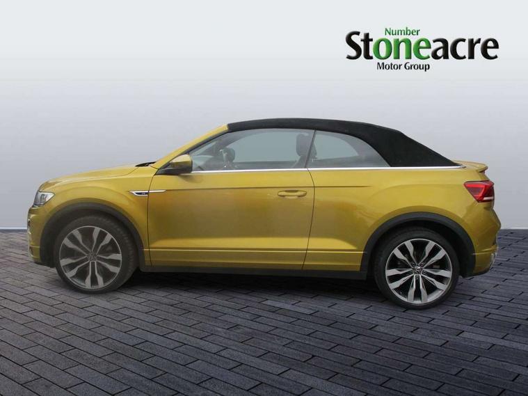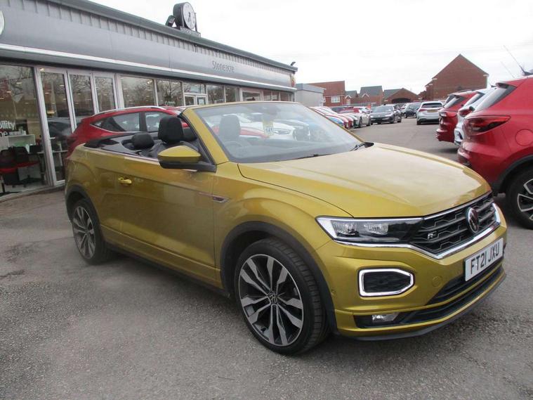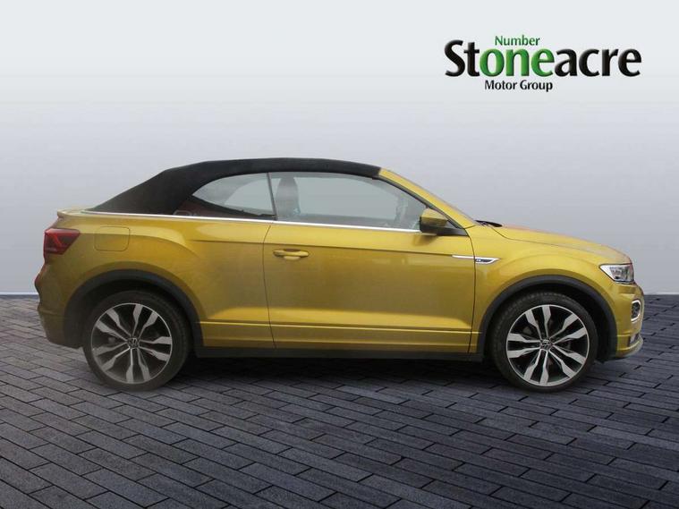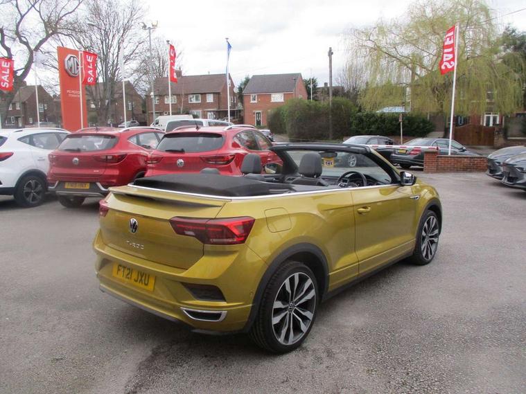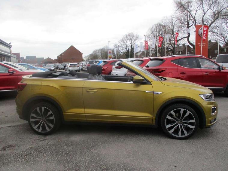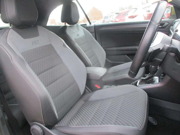8" colour touch screen, Active Info display 10.25" high resolution TFT dash display with customisable menu and information, Adaptive cruise control, Bluetooth telephone and audio connection for compatible devices, Brake pad wear indicator, Car information display, Car-Net Security and Service, Driver alert system with fatigue detection, Driver tips and journey analysis, Dynamic road sign display, Emergency call service, Lane assist with warning text instrument cluster, Mobile phone interface, Modified key software - reduce switch off time for key status change to Long no motion, Multifunction computer with visual gear change recommendation for fuel consumption, Navigation system discover media including streaming and internet, Online services, Progressive power assisted steering, Speedo and rev counter, electronic odometer, trip, service interval display, digital clock and fuel gauge, Start/stop system with brake energy recovery, Tailgate/trunk lid release from outside, Warning sound and light for front seatbelts unfastened, Wired and wireless app connect, Bluetooth - Simultaneous pairing of 2 compatible mobile devices, DAB Digital radio, Diversity antenna for FM reception, Music playback - MP3, WMA and AAC files, SMS functionality - read, compose and send SMS messages using touch-screen display, Title and cover art display, USB-C Interface and USB charging socket, WeConnect plus, Auto dimming interior rear view mirror, Automatic coming/leaving home lighting function and daytime running lights, Automatic hazard lights activation under emergency braking, Body colour rear roof spoiler, Body coloured exterior mirror housings and door handles, Chrome effect left and right trapezoid exhaust tailpipe fascia surround, Chrome trim on upper and lower radiator grille, Darkened LED tail lamp, Dusk sensor, Dynamic headlight range control with self adjusting whilst driving, Electrically power adjustable, heated, folding, auto dimming, front passenger exterior door mirror lowering function, Front and rear electric windows, Front fog lights with static cornering function, Heat insulating glass windscreen, High level 3rd brake light, LED darkened rear light clusters, LED headlamps with automatic range adjustment and unique signature LED separate daytime running lights, LED rear number plate lights, LED tail lamp rear comination lamps, Power operated canvas convertible top, R-Line design body coloured bumpers, Rain sensor, Rear exhaust tailpipe, Rear fog lamp, Volkswagen roundel, Windscreen wiper with intermittent wipe light, 12V socket in centre console storage area, 2 front reading lights, 3 spoke leather wrapped multifunction sport steering wheel, 50/50 rear seat bench split folding rear seat backrests, Activated charcoal canister for intensified evaporation system, Chrome plated surround to light, mirror and window switch, Climate control - 2 zone electronic air conditioning with automatic air recirculation and allergy filter, Door and side trim panel in foam film, insert in leatherette, Entry aid easy entry (Front folding seats), Front + rear carpet mats, Front centre armrest, Front cupholders x 2, Front seat back storage pockets, Front sports comfort seats with manual height adjustment, Glove Compartment with light, Height/reach adjust steering wheel, Illuminated vanity mirrors in sun visors with air bag label on sun visor and b-pillar, Instrument lighting, white adjustable panel illumination, Interior light delay, Interior light in footwell, Isofix easy fit child seat preparation for 2 outer rear seats, Luggage compartment lighting, Power adjustable lumbar support in front, Rear head restraints, Scuff plates in door apertures, Stainless steel pedals, Storage compartments in driver and front passenger doors, Unique R Line door sill protectors, White ambient lighting, 2 x 3-point rear seatbelts, ABS, Autonomous emergency braking, Driver and front passenger safety-optimised head restraints, Drivers and front passengers airbags with passengers deactivation switch, Drivers seatbelt reminder, Electronic parking brake with auto hold, Electronic stability control (ESC) includes ASR, EDL, EDTC and trailer stabilisation function, Front assist with city emergency braking and pedestrian monitoring, Pedestrian monitoring, Predictive pedestrian protection, Rigid safety cell with front and rear crumple zones, Side airbag/thorax airbag system, for front passengers, Single tone horn, Three point height adjust front seatbelts + pretensioners, Tyre pressure loss indicator, Tyre pressure monitor, Ventilated front and rear disc brakes, Volkswagen roadside assistance, Alarm with interior protection and deactivation via infotainment system, Electronic engine immobiliser, Shadow steel matt decorative inserts in dash and door panel,
