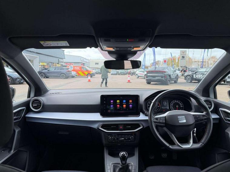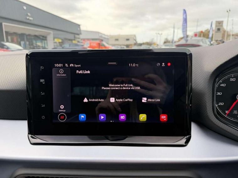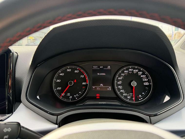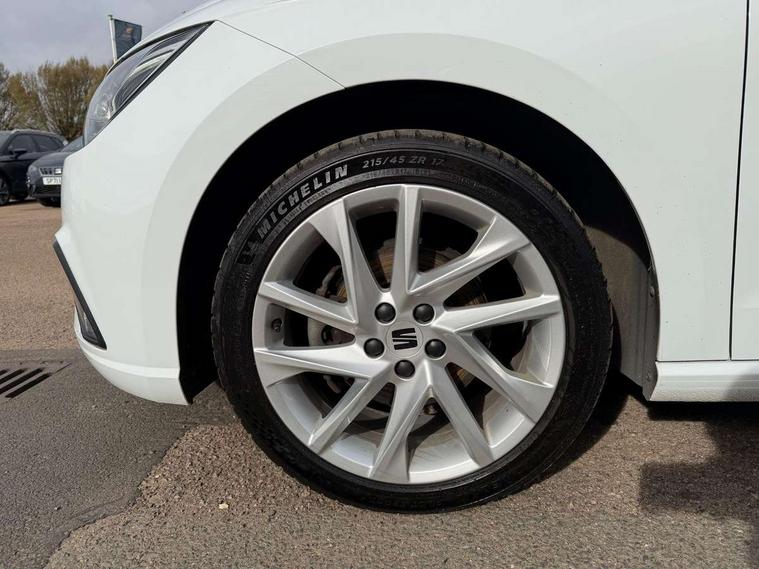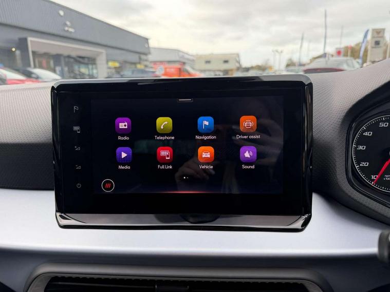 'Lights On' Reminder warning buzzer, 9.2" touchscreen navigation system with type C USB socket, Voice control and DAB/AM/FM radio, Auto start and stop system, Bluetooth audio streaming with handsfree system, Digital clock, E-call, Full link smartphone integration with mirror link, wireless apple carplay, Google android auto + USB Type C cable for apple and android devices, Lane assist, Low fuel warning light, Outside temperature gauge, Power Steering, Seat connect with safety, service, remote and online, SEAT drive profiles and ECO function, SEAT logo boot release, Speed limiter, Trip computer, Sports suspension, Auxiliary input socket, Radio/MP3 player, SD card slot, Steering wheel mounted controls, Anti theft roof antenna, Auto dimming rear view mirror, Automatic rain sensing wipers, Black door mirrors, Body colour bumpers, Body colour door handles, Brilliant black window surrounds, Dark tinted rear windows, Electric adjustable/heated/folding door mirrors, Electric front windows, Electric headlight adjustment, Electric rear windows, Front/rear fog lights, FULL LED automatic headlights with dynamic headlight range control, coming and leaving home, LED daytime running lights, LED tail lights, Rear roof spoiler with FR twin exhausts, Rear side wing doors, Rear wiper, Third brake light, 3 seat bench in 2nd row, 60/40 split folding rear seat, Ambient interior lighting, Chrome detailing and black headlining, Cloth upholstery, Dual zone climate control with combination filter, Front courtesy lights, Front cupholders x 2, Front reading lights, Gear shift indicator, Glovebox, Height adjustable front and rear headrests (five), Height adjustable front seats, Height/reach adjust steering wheel, Illuminated air vent surrounds, Illuminated boot, Instrument lighting with brightness control, Isofix, Leather multifunction flat bottomed sports steering wheel, Passenger sunvisor, Single front passenger seat, Sports seats, Sunvisors with mirror and driver side card holder, 3 point seatbelts on all 3 rear seats, ABS, Active front headrests, Child locks on rear doors, Electronic stability control, Energy recovery system, Front assist forward collision warning and autonomous emergency braking, Front driver and passenger side airbags with curtain airbag and front passenger airbag deactivation, Hill hold control, Multi-Collision braking, Seat belt reminder for front and rear seats, Tiredness recognition system, Tyre pressure monitoring system, Electronic engine immobiliser, Locking wheel bolts, Perimeter alarm and interior monitoring with backup horn and tow away protection, Remote central locking + deadlocks, 17" Alloy wheels in Brilliant silver,