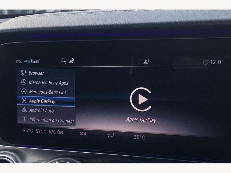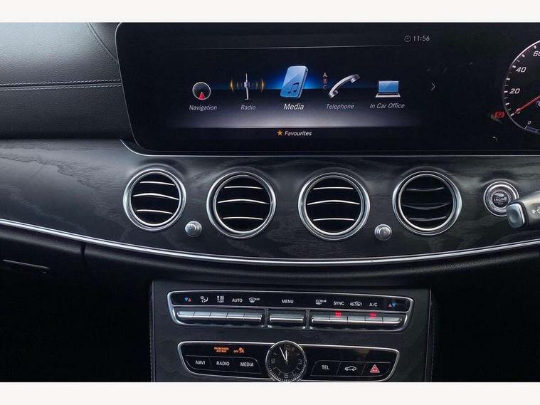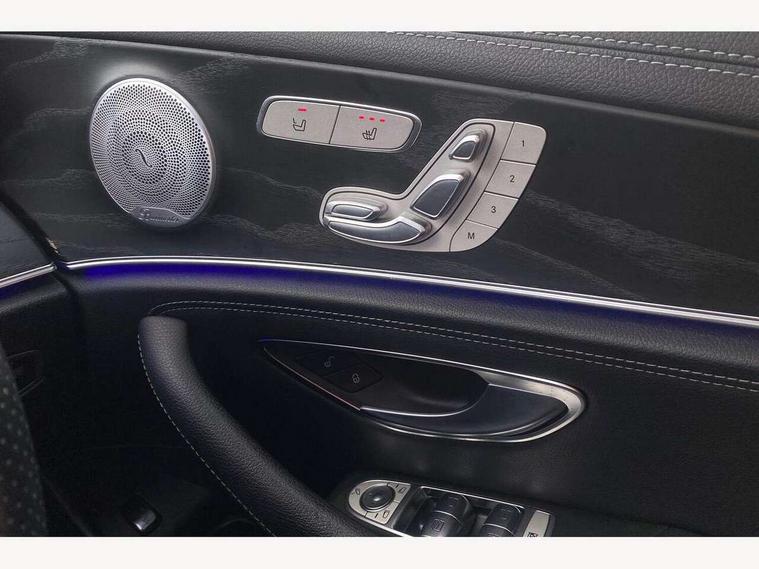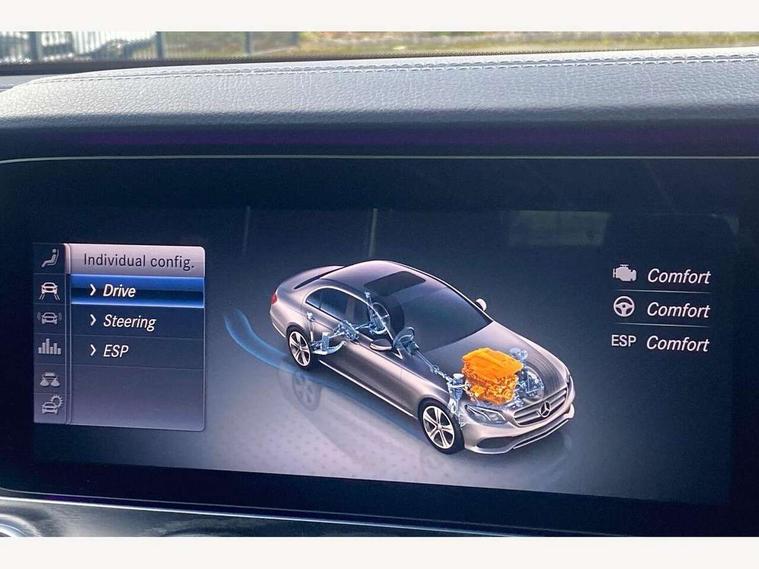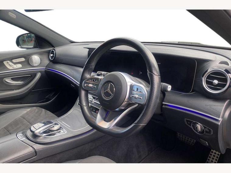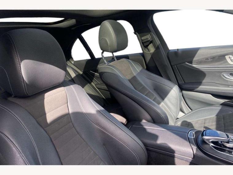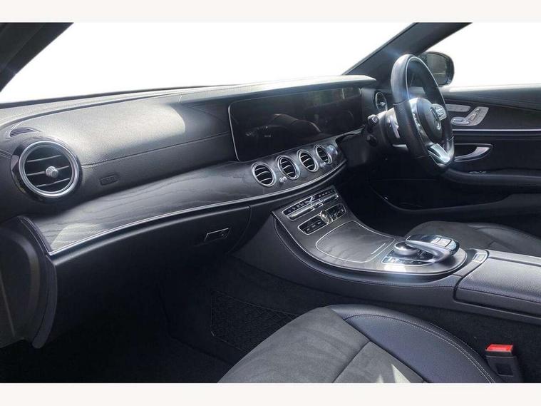 Active parking assist and 360 camera, Analogue clock, Attention assist, Blind spot assist, Boot release from drivers seat, Brake wear warning light, COMAND online HDD navigation with media interface with 12.3 inch colour display, WLAN/Wi-Fi hotspot, Car-to-X Communication, Direct steer speed sensitive steering, DYNAMIC SELECT with a choice of driving modes (ECO, Comfort, Sport, Sport+ and Individual), Mercedes connect me, Multi function trip computer, Outside temperature display, Remote boot release, Service indicator (ASSYST), Smartphone integration via Android Auto/Apple CarPlay, Media Interface, USB and Bluetooth interface, Status display for rear seat belts in instrument cluster, Stop/start system, Touchpad with control wheel, Traffic sign assist, Wireless charging, 25 litre AdBlue tank, 66 litre fuel tank, Agility control sports suspension with selective damping system and lowered by 15mm, Diesel particulate filter, Incorrect fuelling protection, 2 USB ports in centre console, 2 USB ports in the rear, Burmester surround sound system with 13 speakers, DAB Digital radio, Adaptive brake lights, Aerial integrated in rear window, AMG bodystyling front and rear aprons and side skirts in polished aluminium, Body colour door handles, Chrome pins diamond radiator grille, surround in high gloss black, single louvre in chrome with insert in high gloss black and integral star, Chrome trim on the front bumper and high gloss black trim on the rear bumper, Electric panoramic glass sunroof, Electric windows with one touch opening/closing and obstruction sensors, Electrically adjustable and heated door mirrors, Front apron in high gloss black, Front LED fog lights with cornering function, High gloss black door mirrors, LED High Performance headlamps including integral LED daytime running lamps, LED rear lights, MULTIBEAM Intelligent Light System with Adaptive Highbeam Assist, Pre-installation for roof rail systems, Privacy glass (rear side windows and rear screen), Radiator grille with integral star and 2 louvres in high gloss black, Rain sensor windscreen wipers, Rear wiper, Top surround of side windows in polished aluminium, Visible twin exhaust tailpipe in bumper, Waistline trim strip in high gloss black, 3 spoke flat bottom AMG steering wheel with trimmed in black nappa leather, 40:20:40 split folding rear bench seat, Artico man-made leather/Microfibre Dinamica upholstery, Auto dual-zone climate control system, Auto Mercedes-Benz child seat recognition sensor, Black roof lining, Chrome door pins, Courtesy lights in rear grab handles with reading light functionality, Electric height/reach adjustable steering column, Floor mats with AMG lettering, Four way partially front electric seat adjustment, Front and rear door pockets, Front centre armrest with storage compartment, Front door sills with illuminated Mercedes lettering, Glasses compartment in overhead control panel, Head restraints for driver and front passenger (four-way adjustability) and in rear (two-way), Heated front seats, Interior lighting - 64 colour Ambient lighting, Interior rear light/integral reading lights, Lockable/illuminated air conditioned glovebox, Sports pedals in brushed stainless steel with black rubber studs, Steering column electrically adjustable for height and reach, Steering wheel multifunction with gearshift paddles, Steering wheel touch control buttons for audio and onboard settings, Storage compartment with 12V socket in centre console, Sunvisors with illuminated vanity mirrors, Keyless Go comfort pack - E Class, Memory pack - E Class, Mirror pack - E Class, Night pack - E Class AMG Line, Parking package including 360 degree camera - E Class, Seat comfort pack - E Class, Stowage pack - E Class, 3x3 point rear seatbelts, Active bonnet, Active brake assist, Adaptive brake system with HOLD function and brake drying in the wet, Anti-lock braking system (ABS), Black seat belts, Childproof locks manually operated for rear doors and electrically operated for rear power windows, Driver and passenger side/thorax airbags, Driver/front passenger airbag, Drivers knee airbag, Electronic parking brake, Electronic Stability Programme, Hill hold assist, Hill start assist, ISOFIX child seat attachment points two outer rear seats, Perforated front brake discs with "Mercedes-Benz" lettering, Pre-Safe anticipatory safety system, Seat occupancy sensor, Seatbelt warning, Tyre pressure monitoring system, Warning triangle and first aid kit, Window airbags, Alarm system/interior protection/immobiliser, Central locking with interior switch, automatic locking and crash sensor with emergency opening function, Chrome surround in electric key, Black open pore ash wood dashboard and door trim + Centre console in black open pored ash wood, Contrast stitching, 20" AMG multi spoke light alloy wheels painted in high gloss black sheen finish - RVR, Run flat tyres,
