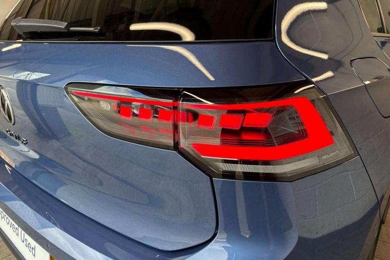 Activated carbon canister, Adaptive cruise control (ACC), Advanced driver attention and drowsiness monitor, Dynamic road sign display, Dynamic steering, E-Sim card for online connectivity, eCall emergency call system, Multi-color Digital cockpit pro, selection of different info profile possible, Multifunction front facing camera for distance control, Navigation system, Oncoming vehicle braking when turning including swerve support, Speed limiter, Speedo, rev counter, electronic odometer, trip, service interval display, exterior temperature and fuel gauge, Traffic jam assist, Voice enhancer and voice control, Warning signal and warning light for front and rear seatbelts not fastened, We connect plus preparation, We connect preparation, Wireless app connect, Hybrid propulsion system, Petrol Particulate Filter, Start-stop system with battery regeneration (recuperation - energy recovery during braking), XDS electronic differential lock for improved traction and handling, 2 USB C ports in front, 2 USB charging sockets on the centre console in the rear charging capacity upto 45W, Digital radio reception (DAB), Diversity antenna for FM reception, Gaming platform via car app, Infotainment system with 12.9" display, Mobile phone interface with inductive charging feature, 3rd brake light, Auto dimming rear view mirror, Automatic headlamp activation with Coming home and Leaving home feature, Body colored bumpers in R-Line style, Body colour door handles, Exterior ambient lighting, Exterior mirrors convex on the left and aspherical on the right, Front and rear electric windows, Heat insulating windshield made of laminated glass, LED separate daytime running light, Rain sensor, Rear exhaust tailpipe, Rear fog light on one side and reversing lights on both sides, Rear side wing doors, Rear windscreen washer and wiper with interval delay, Remote electrically foldable door mirrors, puddle lights and reverse activated passenger's door mirror, Volkswagen logo in front, illuminated lighting animation with wake up/goodbye scenario and illuminated door handles, Welcome light with surround lighting, 12V socket in front centre console, 12V socket in luggage compartment, 3 rear head restraints, 3 seat bench in 2nd row, Ambient lighting with 30 colour including LED light unit in front footwell with selectable light colour, Black roof lining, Brushed stainless steel pedals, Chrome plated radiator grille inserts, air vent surrounds and light switch surrounds, Door insert, side trim panel and arm support in leatherette, Front + rear black carpet mats, Front centre armrest, Front seat lumbar support adjuster, Integrated front head restraints, ISOFIX anchors for child seats on outer rear bench seats and on front passanger seat compatible for i-Size, Luggage compartment lighting, Manual height adjustable front passenger seat, Manually height adjustable driver seat, Plastic gear knob, Premium sports seats in front, Rear cupholder and loadthough, Sardegna cloth upholstery with front and outer rear seats Art Velour inner sides of bolsters, Single front passenger seat, Split folding backrest with centre armrest and unsplit rear seat bench, Sun visors with illuminated vanity mirrors, Titanium black instrument panel, Black exterior Styling package with Matrix LED headlights - Golf, Winter package - Golf DSG Estate/Hatchback, 3 point height adj front seatbelts + pretensioners, 3 rear three point seatbelts, ABS, Autonomous emergency braking front assist with pedestrian and cyclist monitoring, Child locks on rear doors, Driver and front passenger airbag with front passenger airbag deactivation, Electronic parking brake with auto hold, ESC (Electronic Stability Control), Extended pedestrian protection measures, Hill start assist, Rear disc brakes, Two tone horn, Tyre pressure loss indicator, Volkswagen roadside assistance, Anti theft wheel bolts, Preparation for alcohol interlock, Decorative inserts carbon grey for dashboard and front door trim panels, 18" Leeds alloy wheels, Tool kit for tyre mobility set, Tyre mobility kit Includes 12V compressor and tyre sealant,