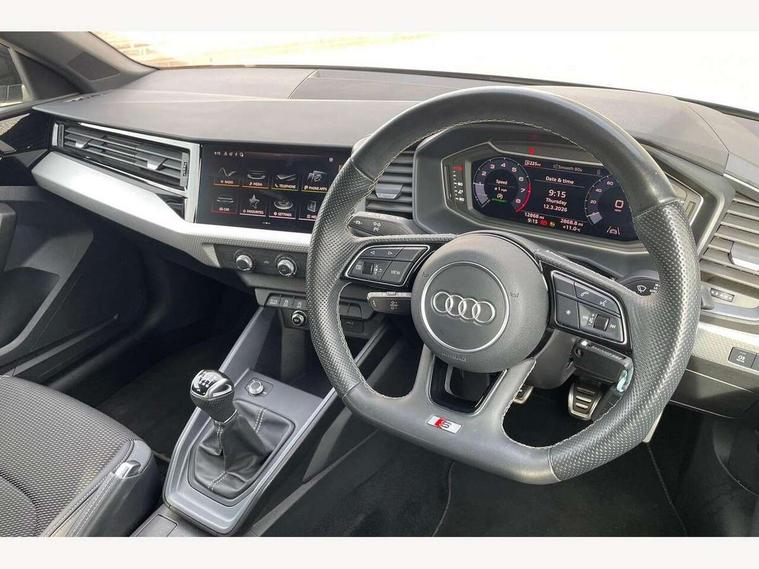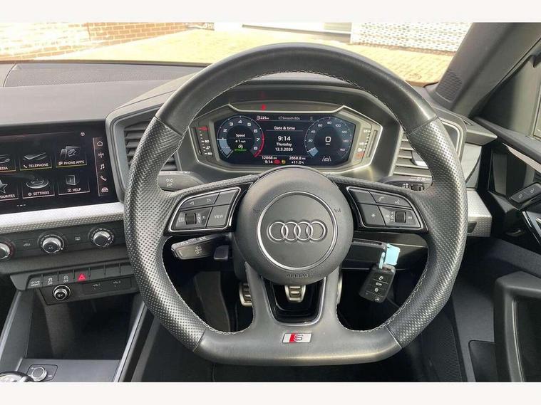 10.25" Digital instrument cluster display classis style instrument dials + speed, odometer, time, outside temperature, telephone menu + fuel level warning, Audi drive select - power steering assistance + engine, Audi smartphone interface with connect compatible smartphone via USB directly MMI display + Nav, music, third party apps controlled via MMI controller, Automatic start/stop system, Bluetooth interface, Cruise control, Driver's information system, Electromechanical power steering, Emergency e-call, Lane departure warning system, Rear parking sensor, Service interval indicator, Speed limiter, Voice control system, Washer fluid level indicator, Sports suspension, 2 x USB type C connection points, 6 passive loudspeakers, DAB Digital radio, MMI radio plus with 10.1" colour MMI display screen and MMI touch, Auto dimming rear view mirror, Black side skirts, Body coloured bumpers, Door sill trims with aluminium inlays and logo, Electric front and rear windows, Electrically adjustable, heated, folding door mirrors with integrated LED side indicator, Front side air inlets in grained matt black and C frame in anthracite black, Front wing badges, Heat insulating glass windscreen and side windows, Heated rear windscreen, High level LED brake light, LED headlights with LED rear lights + dynamic rear indicators + headlight adjustment and high beam, turning light + LED daytime running lights, Privacy glass, Rain and light sensors, Rear fog lights, Rear side wing doors, Rear wiper, Side front spoiler lips in grained matt black, 12V socket in centre console with two cup holders, 3 rear seats with headrests, 3 seat bench in 2nd row, 3 spoke flat bottomed multi-function plus leather steering wheel with S badging, grips in preforated leather and contrast stitching, 40:60 Split folding rear seat or folded fully, Black cloth headlining, Driver and passenger seat with manual height adjust with forward and backwards adjustment, Front and rear black floor mats with contrast stitching in fine silver, Front head restraints, Front passenger seat, Height and reach adjustable steering wheel, ISOFIX child seat mounting for front passenger and outer rear seats including top tether attachment point of outer rear seats, Leather gear knob with aluminium trim, Leather handbrake grip, Luggage compartment light with front and rear reading lights, Manual air conditioning, Manually adjustable lumbar support in front seats, Stainless steel pedals, Black styling pack - A1 Sportback Black Edition, LED interior lighting pack - A1, Luggage compartment pack - A1, 3x3 point rear seatbelts, Audi pre-sense front with pedestrain and cyclist recognition, Brake assist function, Driver and front passenger airbag with front side and head airbags, Electronic Stability Control including ABS, EBD, ASR and EDL, Front passenger airbag deactivation switch, Hill hold assist, Manual rear child locks, Seatbelt height adjustment for front seats, Seatbelt monitoring, Tyre pressure warning light, Warning triangle and first aid kit, Anti theft alarm, Anti theft wheel bolts and loose wheel warning, Immobiliser, Remote central locking with 2 foldaway keys, Aluminium trim for control switches, air vents and digital instrument cluster, Black dashboard, Silver grey inlays polygon structure in diamond paint finish, Structured grey accent areas including air vents, door handle recesses and centre console in quartz paint finish,