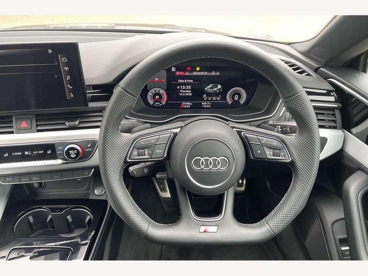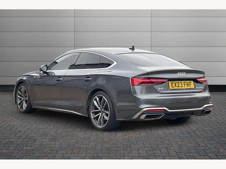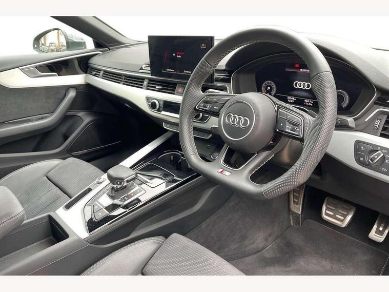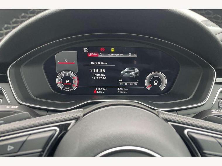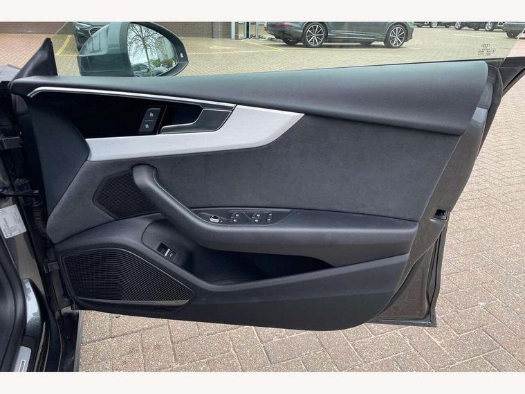 Audi connect safety and service (e-call), Audi connect with Amazon Alexa Integration, Audi drive select (Auto, Comfort, Dynamic, Efficiency and Individual), Audi parking system plus with front and rear sensors, Audi smartphone interface, Audi virtual cockpit - 12.3" full colour digital instrument cluster, vehicle/engine speed, Radio/media information+Driver assistance systems, Automatic start-stop system with coasting functionality and efficiency programme, Bluetooth interface, Electro-mechanical power steering, Email, calendar and text messages displayed via MMI, MMI nav+ with MMI touch - 10.1" high resolution MMI display, touch sensitive, 3D map, route/country info, dynamic route guide, personal route assist, Power operated tailgate, Rear view camera, Service interval indicator, Voice control system, Sports suspension lowered by 23mm, 8 passive loudspeakers, CD player, DAB digital radio reception, Two additional USB ports for rear passenger in rear centre console, Two SDXC card slots, Audi matrix LED headlights with LED rear lights + dynamic front and rear indicators, Auto dimming door mirrors, Auto dimming rear view mirror, Body colour bumpers, Body colour door handles, Body colour front spoiler lip, Body colour side sill trim, Body coloured door mirrors, Electric adjustable heated door mirrors, Electric folding door mirrors, Electric front windows, Front fog lights, Honeycomb structure radiator grille in grained matt black, Kerb-view function for passenger side, LED daytime running lights, LED side indicator lights integrated into door mirrors, LED third brake light, Matt aluminium silver tailpipe trim, Privacy glass, Rain and light sensors, Rear side wing doors, S line badges on front wings, S line front and rear bumpers with side skirts, S Line rear diffuser in matt anthracite black with trim strip in matt aluminium silver, Side air inlets in grained matt black with matt aluminium silver inlay, Variable front intermittent wipers, Windscreen with acoustic glazing, 3 seat bench in 2nd row, 3 spoke high multifunction leather sport steering wheel with paddle shfit and S badging perforated leather grips, 4 way electric lumbar support for driver and front passenger, 40/20/40 split folding 3 seater rear bench seat, Adjustable steering column, Black cloth headlining, Black perforated leather gearknob, Contrast stitching on seats, steering wheel and gear lever gaiter, Deluxe 3 zone electronic climate control, Front centre armrest, Front head restraints, Front/rear floor mats, Heated front seats, Illuminated door sill trim with S logo, ISOFIX child seat mounting and top tether, Luggage compartment mat, Manual seat adjustment, Rear centre armrest, Rear headrests, Single front passenger seat, Stainless steel pedals, Sunvisors with vanity mirrors, LED interior light pack - A5/RS5, 3x3 point rear seatbelts, 6 airbags - Driver, front passenger, curtain and side airbags, Electromechanical parking brake, Electronic Stabilisation Control (ESC) including ABS, ASR and EDL, Front passenger airbag deactivation, Height adjustable front seatbelts, Hill hold assist, Manual child lock in rear doors, Multi collision brake assist, Pop-up bonnet for pedestrian protection, Pre sense city, Seatbelt monitoring, Tyre pressure warning, Variable restraint system, Warning triangle and first aid kit, Anti theft alarm system, Anti theft wheel bolts, Immobiliser, Keyless Go, Remote central locking, Matt brushed aluminium inlays, Tool kit, Tyre repair kit,