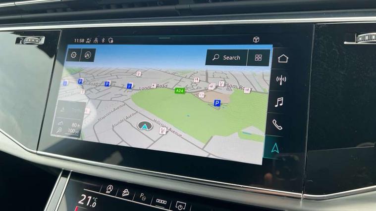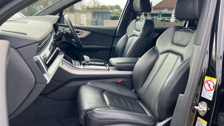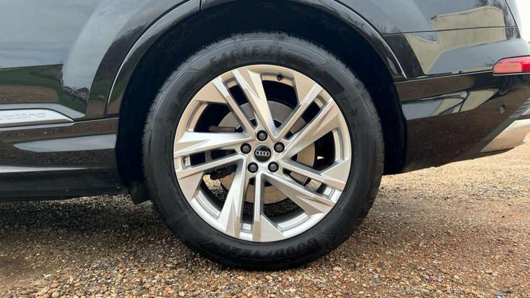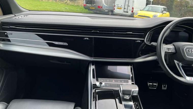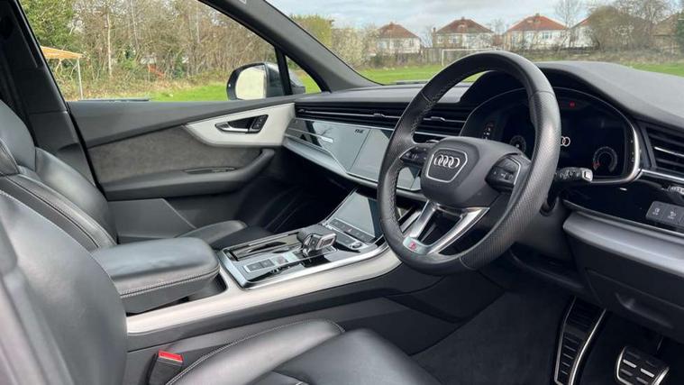 Audi connect safety and service (e-call), Audi connect with Amazon Alexa Integration, Audi drive select (Auto, Comfort, Dynamic, Efficiency, Individual, Off-road and All road), Audi smartphone interface includes wireless Apple carplay/Android Auto, Bluetooth interface, Camera based traffic sign recognition, Electromechanical steering, MMI navigation plus with MMI touch screens includes 10.1" and 8.6" screens with haptic feedback, Natural voice recognition, Parking system plus with 360 degree display (front, rear and side sensors) - acoustic and visual park assist system, Power operated tailgate, Rear view camera, Start/stop system, 48V Mild hybrid technology, 85 litre fuel tank, Adaptive air suspension, Quattro all wheel drive with self locking centre differential, Audi music interface - front 2 USB-C ports with charger and data functions, Audi sound system with 6 channel amplifier, 180 watt amplifying capacity and 10 loudspeakers including subwoofer, DAB digital radio module, 3rd brake light, Aluminium roof rails, Aluminium window trim, Audi matrix LED headlights with dynamic front and rear indicators, Auto dimming frameless rear view mirror, Body coloured door mirrors, Electrically adj heated/folding + automatically dimming exterior mirrors with memory + automatic kerb side function for passenger side exterior mirror, Heat insulating glass in windshield, Integrated LED indications in door mirrors, LED daytime running lights, LED rear tail lights, Privacy glass - dark tinted rear and rear side windows from B-pillar backwards, Rear side wing doors, Rear wiper, S Line badge on wings, S line bumpers in full body colour paint finish, S line roof spoiler, S line styling side ventilation grilles and side skirts, 2 seat bench in 3rd row, 2 zone automatic climate control, 3 seat bench in 2nd row, 7 seat layout with ISOFIX points for the front passenger seat and rear passenger seat, Black cloth headlining, Comfort front centre armrest, Electric adjustable front seat with 4 way lumbar support, driver memory functionality, Folding rear seats, Front head restraints, Front/rear floor mats, Heated front seats, Illuminated door sill trims with S logo, LED interior ambient lighting, Luggage compartment cover, Luggage compartment sill protection in stainless steel, Rear head restraints, Single front passenger seat, Stainless steel pedals, Sunvisors with illuminated vanity mirrors, Tool kit, 3 point seatbelts on all rear seats, Audi pre sense front, Child locks on rear doors, Driver and front passenger, front side and curtain airbags, Electromechanical parking brake, Electronic Stabilisation Control (ESC) including ABS, ASR and EDL, Extended pedestrian protection measures, Hill hold assist, Seatbelt monitoring, Tyre pressure loss indicator, Warning triangle and first aid kit, Anti theft alarm, Anti-theft wheel bolts and wheel loosening detection, Keyless Go, Remote central locking, Darkened matt brushed aluminium inlays, Tyre repair kit,