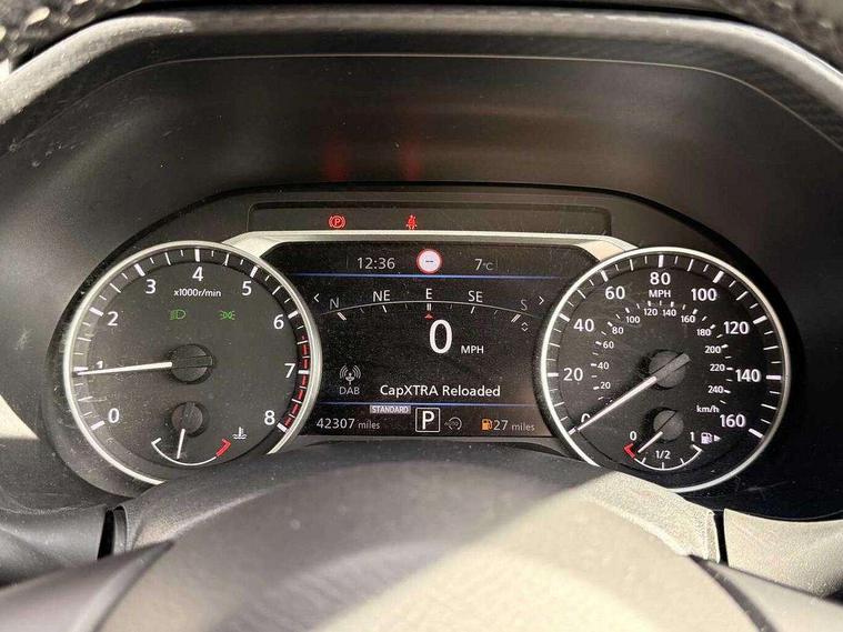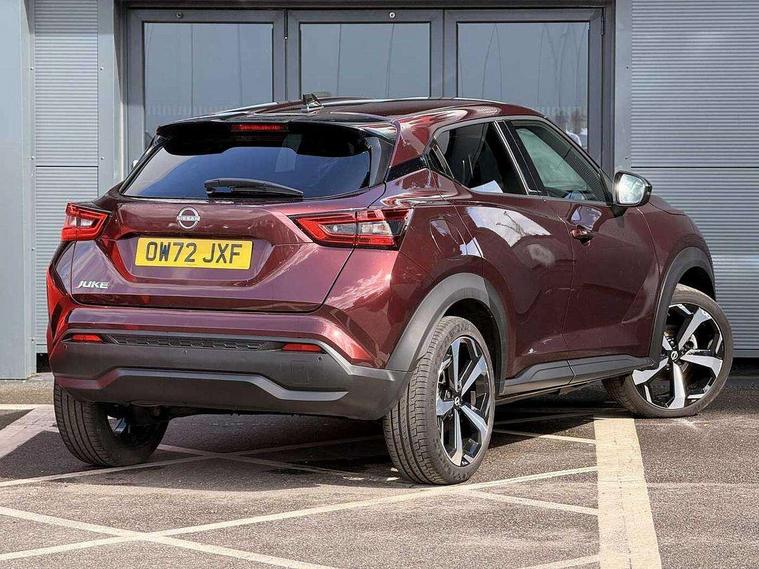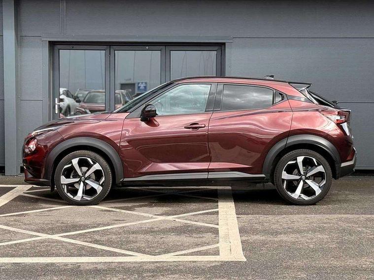 7" full colour TFT screen combimeter, Apple CarPlay and Google Android auto, Drive modes select (Eco, normal and sport), Emergency and breakdown call, Front parking sensor, Idle start/stop system, Intelligent lane intervention, Lane departure warning system, Nissan connect 8" touch screen entertainment system, Nissan connect nav with TomTom traffic, Nissan connect services and Wifi connection, Outside temperature sensor, Power Steering, Rear parking sensor, Traffic sign recognition, Trip computer, Voice recognition, Gasoline particulate filter, 10 Bose speakers 6 speakers and 2 headrest speakers for driver/passenger seats, Bluetooth system, USB, Aux-in and 12V socket, Bose personal sound stage control, DAB Digital radio, Rear console USB port, Auto dimming interior rear view mirror, Auto headlights, Automatic hazard signal with emergency stop signal, Body colour bumpers, Body colour door handles, Electrically adjustable door mirrors with integrated indicators, Follow me home headlights, Front and rear electric window with one touch driver window, Heated and auto folding door mirrors, High beam assist, LED daytime running lights, LED front fog lights, LED headlamps, LED rear fog lamp, LED rear lamps, Rain sensor windscreen wipers, Rear privacy glass, Rear side wing doors, Rear wiper, Thermaclear heated windscreen, Three blink turn signal, 3 height adjustable rear headrests, 3 seat bench in 2nd row, 60/40 split folding rear seat, Automatic climate control, Card holder on driver sunvisor, Door ambient lighting, Driver and passenger sliding and reclining seats, Driver seat back pocket, Driver side rear coat hanger, Driver/passenger sunvisors and vanity mirrors, Front and rear cabin lights, Front armrest, Front door pockets with bottle holders, Front head restraints, Front passenger isofix child seat anchorage point, Front/rear passenger grab handles, Gear console ambient circle lighting, Grey synthetic leather kneepad, Heated front seats, Height adjustable driver's seat, Height adjustable passenger seat, Internal chrome door handles, Leather gearshift knob, Leather steering wheel, Luggage board, Luggage space lighting, Monoform sporty seats, Multifunction steering wheel, Passenger seat back pocket, Rear door bottle holders, Single front passenger seat, Steering wheel mounted gearshift paddles, Synthetic leather upholstery, Telescopic steering wheel adjustment, Two cupholders in front centre console, Two rear isofix child seat anchorage points with top tether, Welcome light and console tray ambient lighting, ProPilot pack - Juke, ABS with EBD and brake assist, Active ride control, Active Trace Control, Driver and passenger airbags, Driver and passenger side airbags, Electric handbrake with auto hold function, Electronic Stability Programme (ESP), Front and rear curtain airbags, Height adjustable seatbelts, Hill start assist, Intelligent emergency braking with pedestrian and cyclist recognition, Rear door child safety locks, Seatbelt reminder for driver/front passenger and rear seats, Single tone horn, Three 3 point rear seatbelts, Traction control, Tyre pressure monitoring system, VDC Dynamic Vehicle Control, Ventilated rear brake discs, Alarm, Immobiliser, Intelligent key and start push button with walk away lock and approach unlock functions, Remote central locking,