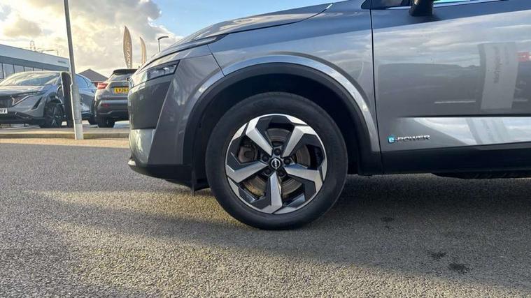 7" High definition full colour TFT screen combimeter, Android auto/Apple CarPlay (Wired), Blind spot warning, Drive modes (sport, normal, eco), Electric speed sensitive power steering, Emergency and breakdown call, Idle stop/start system, Intelligent Cruise control (ICC), Intelligent driver alert system, Intelligent forward collision warning, Intelligent lane intervention, Lane departure prevention, Lane departure warning system, Maximum speed limiter, Nissan connect 8" touchscreen infotainment system, Push button starter, Rear cross traffic alert, Rear parking sensors, Rear view camera, Traffic sign recognition with legal speed adjustment, Trip computer, 6 speakers, AM/FM audio system with DAB, Bluetooth audio streaming, Front USB connections (Type-A and Type-C), Auto dimming rear view mirror, Auto rear wiper when reversing, Automatic hazard signal with emergency stop signal, Body colour mirror caps, Body coloured door handles, Bodyside mouldings, Chrome side window finisher, Door handle with button, e-POWER badging, Electric auto folding door mirrors, Electrically adjustable and heated door mirrors with LED turn indicator, Follow me home headlights, High beam assist, Intelligent auto headlights, LED daytime running lights, LED Headlights, LED rear lights, One touch front and rear electric windows with remote opening and closing, Partially body coloured bumpers, Rear reversing light (bulb lighting), Rear roof spoiler, Rear side wing doors, Shark fin antenna, Splash free rain sensing wipers, Three blink turn signal, 12v power socket in dashboard and luggage, 2x Rear coat hooks, 3 bench rear seats in 2nd row, 3 rear headrests, 4 folding assist grip, 6-way manually adjustable driver's seat, 60/40 split folding rear seat bench, Centre console storage tray, Chrome interior door handles, Cloth monoform upholstery, Driver and front passenger sunvisors with illuminated vanity mirrors, Driver seat back pocket, Dual zone automatic climate control with pollen filter, e-POWER shifter, Front and rear door storage, Front centre console and armrest, Front cupholders x 2, Front door with bottle holders, Glovebox with light, Hard trunk cover, Height adjustable driver's seat, Height adjustable front headrests, Height adjustable passenger seat, Leather steering wheel, Luggage space lighting, Manually adjustable passenger (slide recline + lifter), Multifunction steering wheel, Passenger seat back pocket, Rear armrest with 2 cupholders, Rear door bottle holders, Single front passenger seat, Steering wheel switches, Sunglasses holder, Tilt/telescopic adjustable steering wheel, Two rear isofix child seat anchorage points with top tether, 3x3 point rear seatbelt pretensioners + load limiters, ABS with EBD and brake assist, Active brake limited slip, Auto hold function, Child locks on rear doors, Curtain and front side, far side airbags, Driver and passenger airbags, Driver, passenger and 2nd row rear seat belt reminder, Electronic parking brake, Front seatbelt pretensioners + load limiters, Height adjustable front seatbelts, Hill start assist, Intelligent blind spot intervention, Intelligent front emergency braking with pedestrian, cyclist recognition and junction assist, Intelligent rear automatic braking, Tyre pressure monitoring system, Vehicle dynamic control, Capless fuel filler, Engine immobiliser, Intelligent Key, Remote central door locking with deadlocking, Thatcham Cat.1 alarm, Interior instrumental panel A finisher, 18" Diamond cut alloy wheels, Tyre puncture repair kit,
