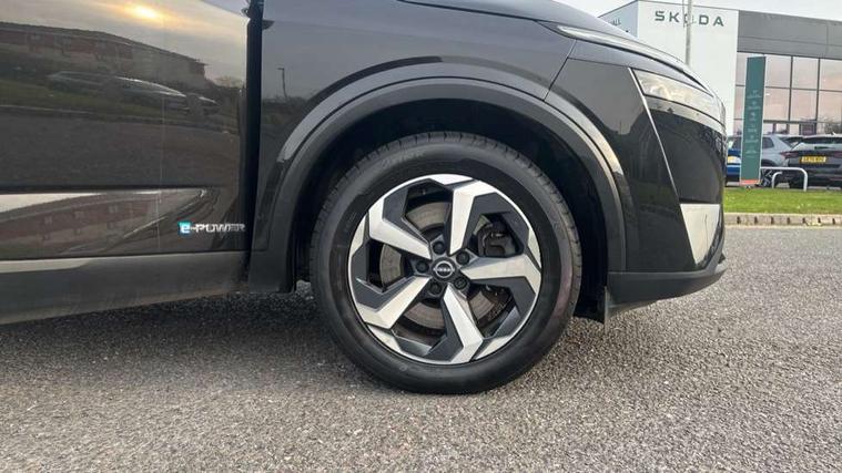 Blind spot warning, Drive modes (sport, normal, eco), e-Pedal step, Electric speed sensitive power steering, Emergency and breakdown call, Front and rear parking sensors, Full Digital 12.3" TFT Digital Combimeter, Google maps services - search, weather, 3D maps and Google street view, Idle stop/start system, Intelligent around view monitor, Intelligent Cruise control (ICC), Intelligent driver alert system, Intelligent forward collision warning, Intelligent lane intervention, Lane departure prevention, Lane departure warning system, Maximum speed limiter, Moving object detection, Nissan connect 12.3 inch touchscreen infotainment system, Nissan connect navigation, Push button starter, Rear cross traffic alert, Rear view camera, Remote control services - door locks, lights, horn and car locator, Telematics - notifications and connectivity services, TomTom live traffic services, Traffic sign recognition with legal speed adjustment, Trip computer, Virtual personal assistant and firmware over the air capability, Wireless Apple CarPlay and wired Android Auto, 6 speakers, AM/FM audio system with DAB, Bluetooth audio streaming, Front USB connections (Type-A and Type-C), Rear USB charging only ports (Type-A and Type-C), Auto dimming rear view mirror, Auto rear wiper when reversing, Automatic hazard signal with emergency stop signal, Body colour mirror caps, Body coloured door handles, Bodyside mouldings, Chrome side window finisher, Door handle with button, e-POWER badging, Electric auto folding door mirrors, Electrically adjustable and heated door mirrors with LED turn indicator, Follow me home headlights, High beam assist, Intelligent auto headlights, LED 3rd brake light, LED daytime running lights, LED Headlights, LED rear lights, One touch front and rear electric windows with remote opening and closing, Partially body coloured bumpers, Privacy glass, Rear bumper with graphite insert, Rear reversing light (bulb lighting), Rear roof spoiler, Rear side wing doors, Rear styling plate, Shark fin antenna, Splash free rain sensing wipers, Super UV and infrared cut glass, Three blink turn signal, 12v power socket in dashboard and luggage, 2x Rear coat hooks, 3 bench rear seats in 2nd row, 3 rear headrests, 4 folding assist grip, 6-way manually adjustable driver's seat, 60/40 split folding rear seat bench, Ambient lighting around centre console, Centre console storage tray, Chrome interior door handles, Cloth monoform upholstery, Driver and front passenger sunvisors with illuminated vanity mirrors, Driver seat back pocket, Dual zone automatic climate control with pollen filter, e-POWER shifter, Front and rear door storage, Front centre console and armrest, Front cupholders x 2, Front door with bottle holders, Glovebox with light, Hard trunk cover, Height adjustable driver's seat, Height adjustable front headrests, Height adjustable passenger seat, Luggage board system, Luggage space lighting, Manually adjustable passenger (slide recline + lifter), Multifunction steering wheel, Passenger seat back pocket, Rear armrest with 2 cupholders, Rear door bottle holders, Single front passenger seat, Soft PVC kneepad, Steering wheel switches, Sunglasses holder, Tilt/telescopic adjustable steering wheel, Two rear isofix child seat anchorage points with top tether, Welcome light and console tray ambient lighting, 3x3 point rear seatbelt pretensioners + load limiters, ABS with EBD and brake assist, Active brake limited slip, Auto hold function, Child locks on rear doors, Curtain and front side, far side airbags, Driver and passenger airbags, Driver, passenger and 2nd row rear seat belt reminder, Electronic parking brake, Front seatbelt pretensioners + load limiters, Height adjustable front seatbelts, Hill start assist, Intelligent blind spot intervention, Intelligent front emergency braking with pedestrian, cyclist recognition and junction assist, Intelligent rear automatic braking, Tyre pressure monitoring system, Vehicle dynamic control, Capless fuel filler, Engine immobiliser, Intelligent Key, Remote central door locking with deadlocking, Thatcham Cat.1 alarm, Interior instrumental panel B finisher, 18" Diamond cut alloy wheels, Tyre puncture repair kit,