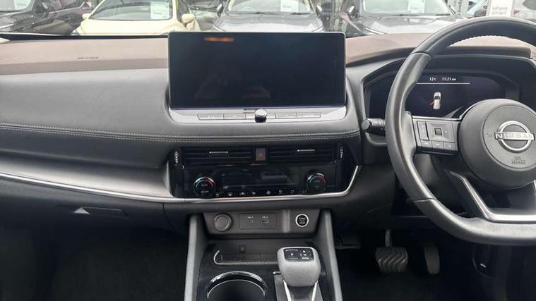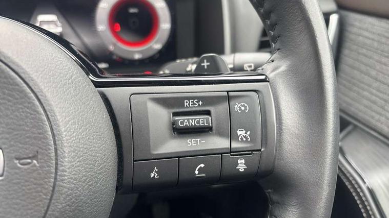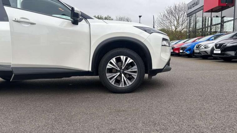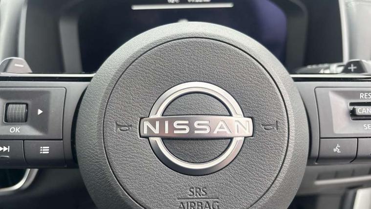 Android auto/Apple CarPlay (Wired), Blind spot warning, Drive modes (sport, normal, eco), Electric speed sensitive power steering, Emergency and breakdown call, Front and rear parking sensors, Full Digital 12.3" TFT Digital Combimeter, Google maps services - search, weather, 3D maps and Google street view, Idle stop/start system, Intelligent around view monitor, Intelligent Cruise control (ICC), Intelligent driver alert system, Intelligent forward collision warning, Intelligent lane departure warning, Intelligent lane intervention, Intelligent lane keep assist, Maximum speed limiter, Moving object detection, Nissan connect 12.3 inch touchscreen infotainment system, Nissan connect nav with TomTom traffic, Push button starter, Rear cross traffic alert, Rear view camera, Remote control services - door locks, lights, horn and car locator, Telematics - notifications and connectivity services, TomTom live traffic services, Traffic sign recognition with legal speed adjustment, Trip computer, Virtual personal assistant and firmware over the air capability, Wireless apple carplay, Wireless charging pad, 6 speakers, AM/FM audio system with DAB, Bluetooth audio streaming, Front USB connections (Type-A and Type-C), Rear USB charging only ports (Type-A and Type-C), 3rd brake light, Auto dimming rear view mirror, Auto rear wiper when reversing, Body colour mirror caps, Body coloured door handles, Bodyside mouldings, Chrome side window finisher, Electric auto folding door mirrors, Electrically adjustable and heated door mirrors, Follow me home headlights, Headlights auto levelling system, High beam assist, Intelligent auto headlights, LED daytime running lights, LED Headlights, LED rear lights, One touch front and rear electric windows with remote opening and closing, Partially body coloured bumpers, Rain sensing wipers, Rear privacy glass, Rear reversing light (bulb lighting), Rear roof spoiler, Rear side wing doors, Rear styling plate, Shark fin antenna, Splash free wipers, Super UV and infrared cut glass, Three blink turn signal, 12v power socket in dashboard and luggage, 3 bench rear seats in 2nd row, 3 rear headrests, 60/40 split folding rear seat bench, Butteryfly console, Chrome interior door handles, Cloth monoform upholstery, Driver and front passenger sunvisors with illuminated vanity mirrors, Driver seat back pocket, Dual zone automatic climate control with pollen filter, Front centre console and armrest, Front cupholders, Front door with bottle holders, Height adjustable driver's seat, Height adjustable front headrests, Height adjustable passenger seat, Leather shift knob, Leather steering wheel, Luggage board system, Luggage space lighting, Multifunction steering wheel, Passenger seat back pocket, Rear armrest with 2 cupholders, Rear door bottle holders, Single front passenger seat, Tilt/telescopic adjustable steering wheel, Two rear isofix child seat anchorage points with top tether, 3x3 point rear seatbelt pretensioners + load limiters, ABS with EBD and brake assist, Active brake limited slip, Auto hold function, Child locks on rear doors, Curtain and front side, far side airbags, Driver and passenger airbags, Driver, passenger and 2nd row rear seat belt reminder, Electronic parking brake, Front seatbelt pretensioners + load limiters, Height adjustable front seatbelts, Hill start assist, Intelligent blind spot intervention, Intelligent front emergency braking with pedestrian, cyclist recognition and junction assist, Intelligent rear automatic braking, Tyre pressure monitoring system, Vehicle dynamic control, Engine immobiliser, Intelligent Key, Remote central door locking with deadlocking, Thatcham Cat.1 alarm, 18" Diamond cut alloy wheels, Tyre puncture repair kit,