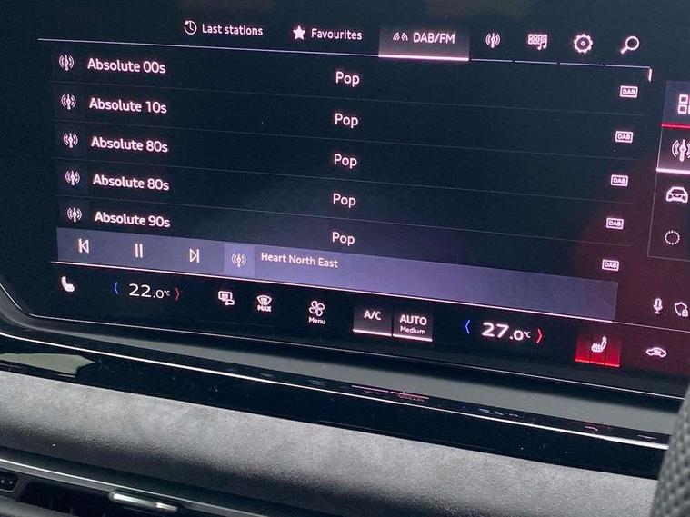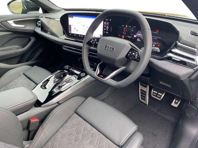 Adaptive cruise control, Advanced driver attention and fatigue montior, Audi application store, Audi assistant, Audi connect emergency call and service, Audi drive select, Audi virtual cockpit plus with 11.9" OLED colour display, Automatic start/stop system with coasting functionality, Camera based traffic sign recognition, Intersection assist, Lane change assistant with exit warning system, rear cross traffic alert and rear turn assist, Lane departure warning with emergency assist, MMI 10.9" front passenger touch display, MMI navigation plus with high resolution 14.5" OLED touchscreen colour display, Park assist plus, Parking system plus with 360 display, Progressive steering with servotronic, Smartphone interface, Swerve assist and turn assist, Top view camera, Traffic sign based speed limiter, Sports suspension lowered by 20mm, 2 USB-C ports in both the front and rear, Audi sound system impressive sound with 8 loudspeakers including centre speaker and subwoofer, 6-channel amplifier with a total output of 180 watts, DAB digital radio reception, Smartphone compartment with wireless charging, Aluminium window trims, Auto dimming rear view mirror, Black door handles, Black roof rails, Dark chrome-plated tailpipe trims, Door mirrors - electrically adjustable, heated, folding and auto dimming on both sides, Front and rear electric windows, Front door sill trims with aluminium inlays, illuminated with 'S' logo, Headlight cleaning system, High beam assist, LED daytime running lights, LED rear lights pro incl. dynamic rear indicators and illuminated light strip with animated coming and leaving home function, LED third brake light, Matrix LED headlights with eight light signatures selectable via the MMI or the myAudi app, Privacy glass, Rear and side windows with heat insulating glass, Rear side wing doors, Rear wash/wipe, S Line badges on the front wings, S line bumpers, radiator grille and diffuser in phantom black and diffuser insert in matt anthracite, White rhombus logo projection light in exterior mirrors, Windscreen with acoustic glazing, 3 rear headrests, 3 seat rear bench, 3 spoke leather steering wheel with multi-function buttons with touch control, flattened on top and bottom, with S badging and contrast stitching, 3-zone automatic climate control, 40:20:40 split folding rear seat bench with centre armrest and cup holders, Comfort front centre armrest, Electrically adjustable front seats, Front and rear floor mats, Front sport seats with integrated headrest and S embossed logo, Headlining in black cloth, Heated front seats, i-Size child seat mounting on the front passenger side and outer rear seats, i-Size and top tether on the outer rear seats, Luggage compartment lid, electrically opening and closing, Manual steering column height and depth adjustment, Memory function for driver seat, Single front passenger seat, Stainless steel pedals and footrest, Steering wheel grips in perforated leather and shift paddles, Ambient lighting package plus - A5, Black styling package plus - A5, 3x3 point rear seat belts, Acoustic vehicle alerting system, Convenience key with safelock, Driver airbag, Electric child safety locks, First aid kit with warning triangle and vests, Front emergency brake assist, Front passenger airbag, Front passenger airbag deactivation, Hill hold assist, Occupant detection in rear seat area, Proactive passenger protection system for front, sides and rear, Red brake calipers, Seat belt monitoring with rear seat occupant reminder, Side airbags in front and rear with head airbag system and front interaction airbag, Tyre pressure loss indicator, Anti theft alarm, Anti-theft wheel bolts, Keyless Go, Accent surfaces and control buttons in gloss black, Black dashboard with contrast stitching, Softwrap in Dinamica with contrast stitching, Upper and lower interior elements in dinamica microfiber, 20" 5 arm fold design Audi sport alloy wheels in silk matt grey and gloss turned finish, Tyre repair kit,