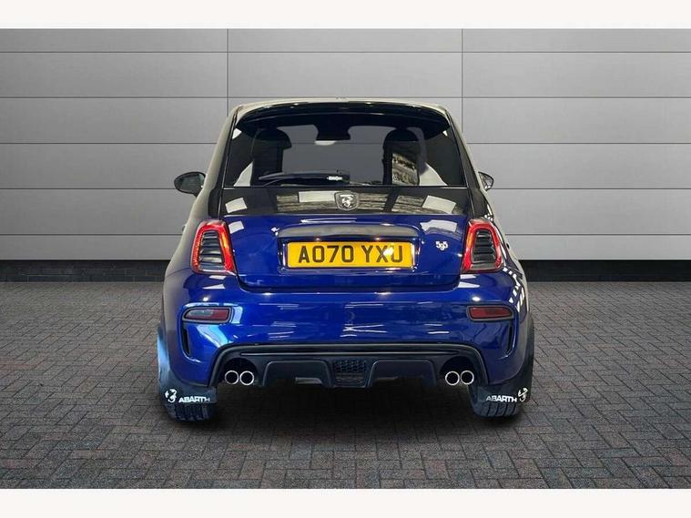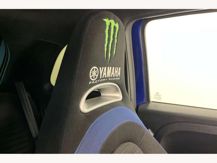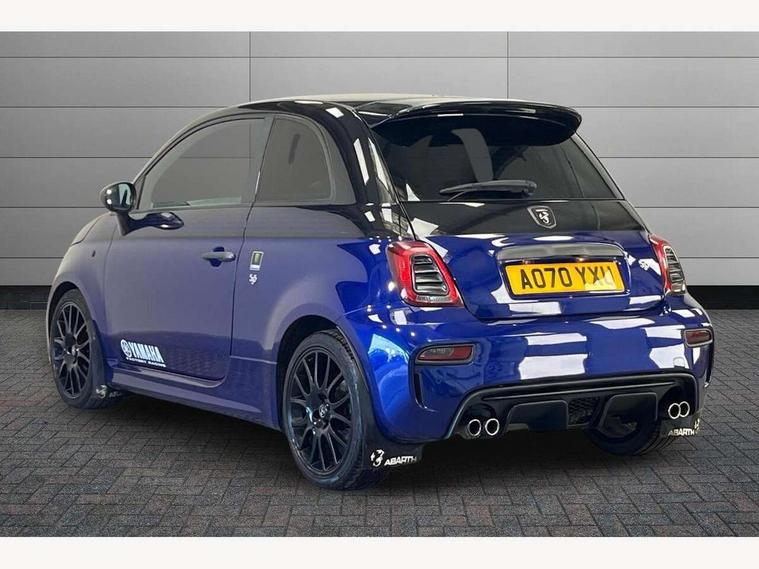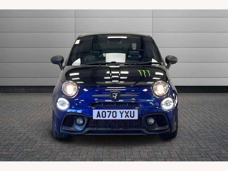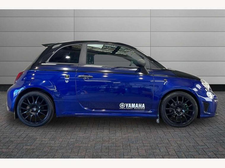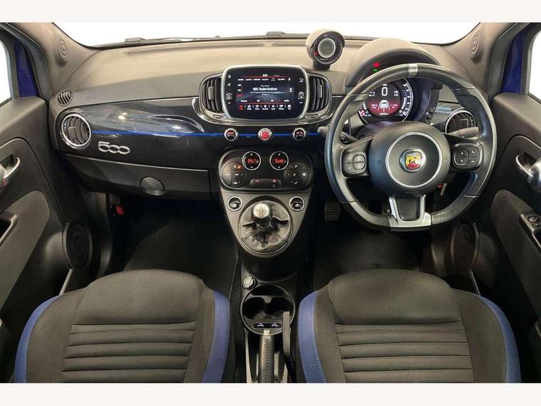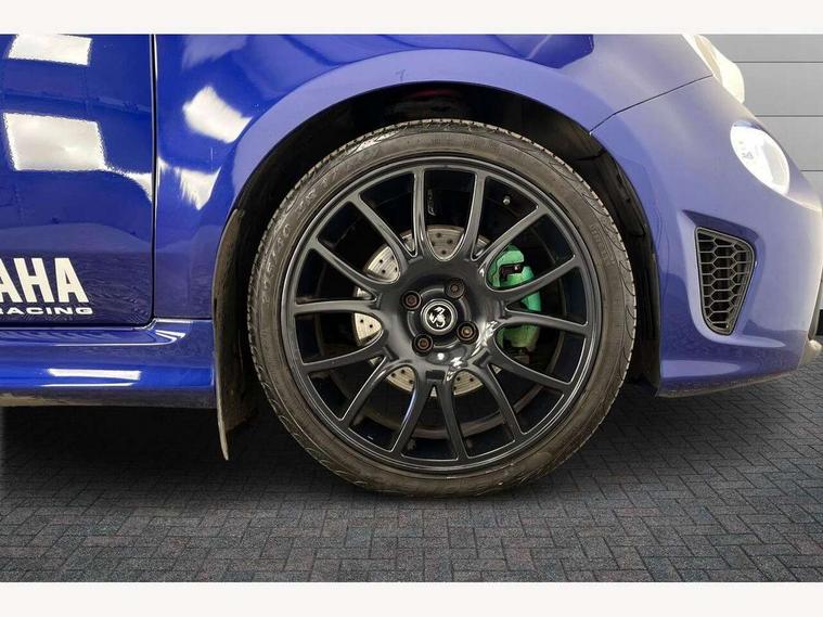 7" TFT instrument display with sports mode, 7" Touchscreen radio with bluetooth, USB and DAB, Apple car play/Android Auto, Dualdrive PAS, Rear parking sensors, Sports button, Trip computer, U-connect access via mobile, Uconnect live service, Front Mac-Phersonsuspension with anti roll-bar, Front telescopic shock absorbers with Frequency Selective Damping (FSD), Koni rear suspension, Torque transfer control (TTC), 6 speakers, Bi-Colour paint finish, Body coloured bumpers, Dark tinted rear windows, Dual mode record monza exhaust system with four tailpipes, Dusk and rain sensors, Electric adjustable door mirrors, Electric front windows, Front bumper with honeycomb grille and embossed Abarth logo, Front fog lights, Grey door mirrors, LED daytime running lights, Monster logo bonnet sticker, Poly elliptical headlights, Rear wiper, Scorpion Antenna Plug, Window integrated aerial with aluminium roof cap, Yamaha logo side sticker, 12V socket, Abarth sport seats, Air conditioning, Aluminium sports pedals, Driver/front passenger seat height adjustment, Fabric upholstery with blue detailing, Front head restraints, Front passenger seat memory, Glovebox, Height adjustable steering wheel, High performance BMC air filter, Interior stowage net, Monster logo and Yamaha logo embroidered on the driver and passenger seat, Rear headrests, Specific floor mats, Specific interior plaque of authenticity, Sports leather multifunction steering wheel with controls and satin chrome detailing, ABS, Driver and passenger airbags, Drivers knee airbag, ESP + ASR/MSR + HBA + Hill holder, Front drilled and perforated brake discs, Front side airbags, Gold brake calipers, High performance perforated brakes, Rear perforated brake discs, Tyre pressure monitoring system, Window airbags, Alarm, Central locking, Immobiliser, Remote central locking, Blue finishing on dashboard, 17" Formula alloy wheels with matt black finish, Black wheel hub caps with grey scorpion, Fix and go kit,