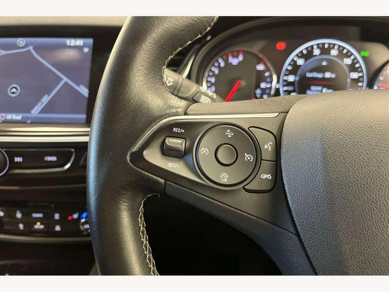 Android Auto, Door/boot open warning light, Navi 900 IntelliLink with sat nav, colour touchscreen, DAB radio, USB, bluetooth, bluetooth audio streaming, Apple CarPlay, Speed sensitive power steering, Traffic sign recognition, Vauxhall OnStar emergency assistance, Voice control system, Lowered and uprated sports suspension, Auxiliary input socket, Steering wheel mounted audio controls, Automatic lighting control, Body colour bumpers, Body colour door handles, Dark tinted rear glass, Door sill kick plates, Electric front windows + drivers one touch, Electric headlight beam leveling, Electric rear windows with anti pinch facility, Front fog lights, Heated rear windscreen, IntelliLux LED matrix headlights with front camera, LED daytime running lights, Rear wiper, Silver roof rails, Tinted glass including windscreen, 12V power point front/rear, 3 height adjustable rear headrests, Additional storage compartment in boot, Ambient interior lighting, Boot lashing points, Centre console with armrest, Chrome inner door handles, Delay courtesy light function, Driver/passenger reading lights, Dual zone electronic climate control + multi zone sun sensor + humidity sensor, Footwell illumination, Front headrests, Heated outer rear seats, Illuminated boot, Illuminated glovebox, Interior courtesy light operated by all doors, Leather gear knob, Leather steering wheel, Lidded front door storage with drinks holder + armrest, Luggage compartment cover, removable, Pollen filter, Rake/reach adjustable steering wheel, Rear centre armrest, Rear courtesy lights, Rear door pockets with bottle holders, Rear passenger heating ducts, Reclining front seats, Driver Assistance Pack 1 - Insignia, Sight and Light Pack - Insignia, ABS, Brake assist function, Child locks on rear doors, CSC - Cornering stability control, Driver/passenger 2 stage auto adaptive airbags, Electronic parking brake, Electronic Stability Programme, Front and rear outer seat belt pre-tensioners, Front lateral airbags, Height adjustable front seatbelts, Hill start assist, Seatbelt reminder for driver and front passenger, Three 3 point rear seatbelts, Traction control, Agate inserts in dark silver on facia and doors,