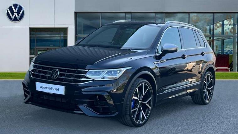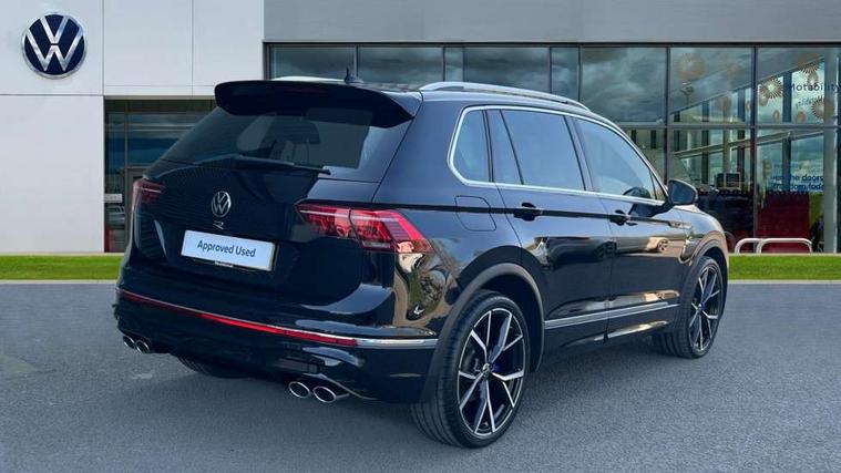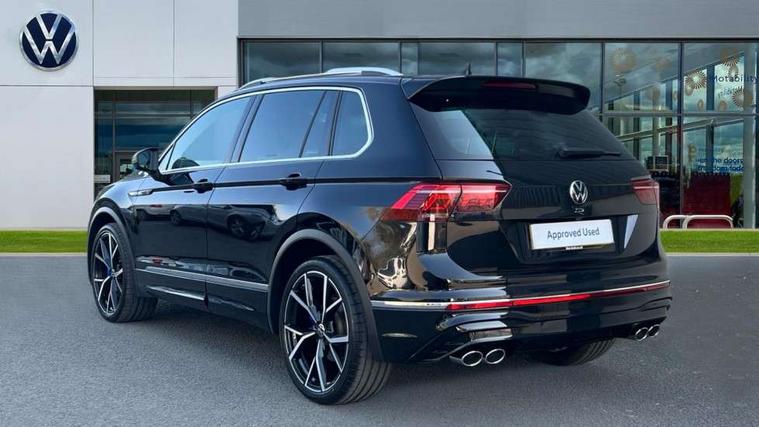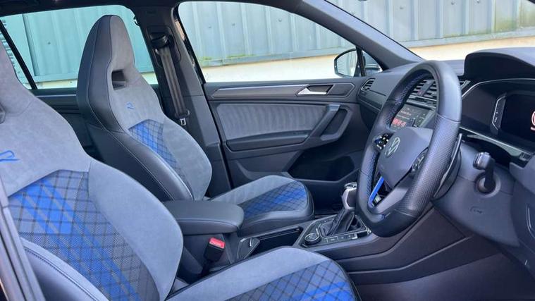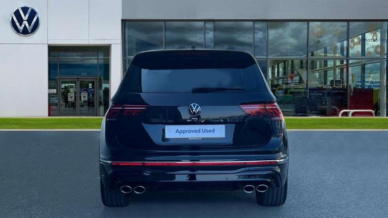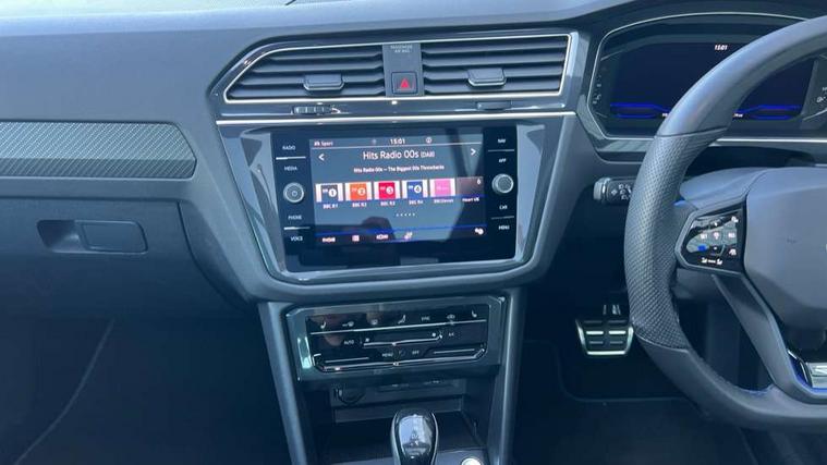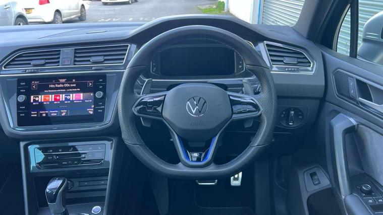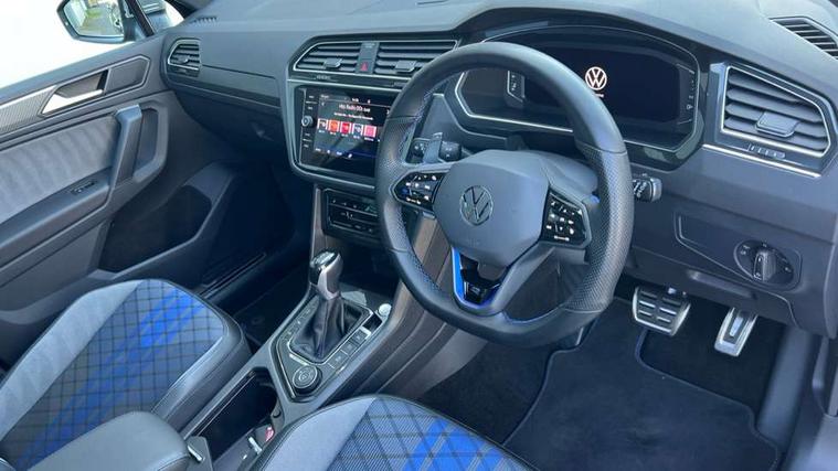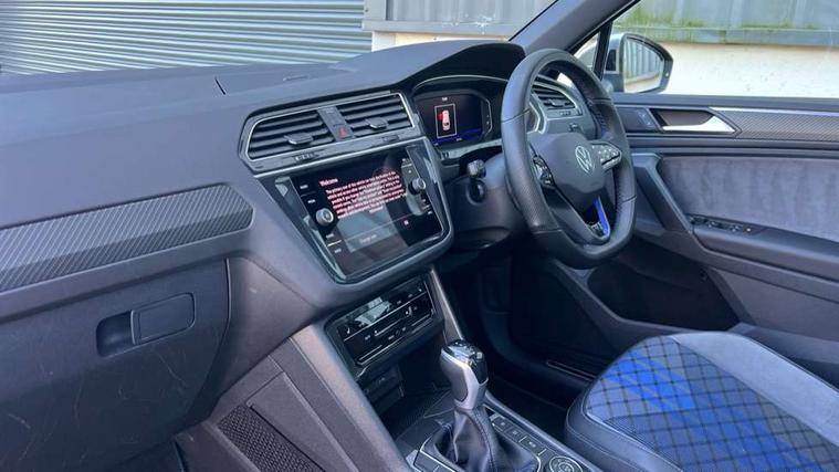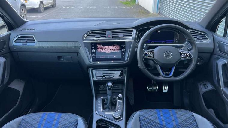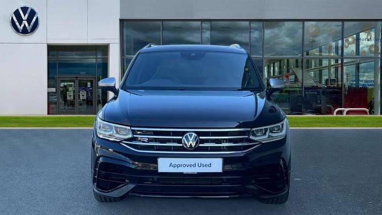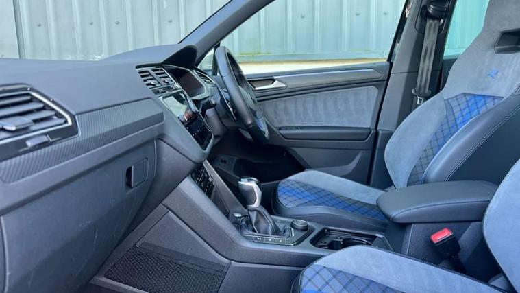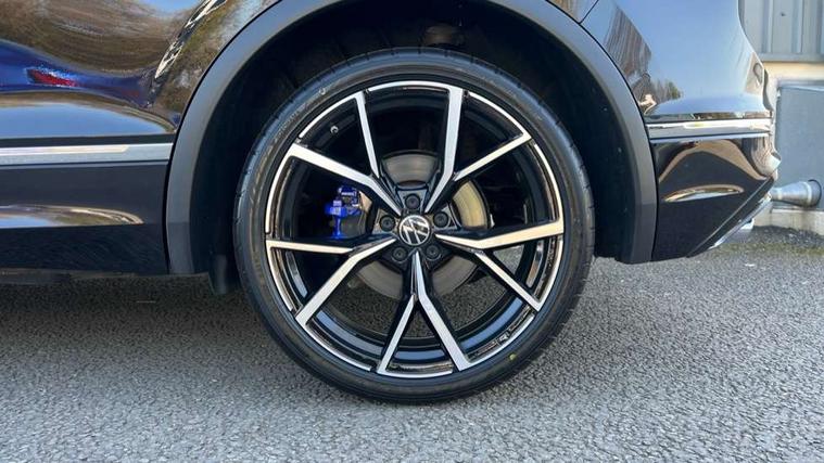 Adaptive cruise control ACC stop and go including speed limiter, App-Connect incl. App-Connect Wireless for Apple CarPlay and Android Auto, Bluetooth phone integration system, Distance control assist, Driver alert system, Driver profile selection, Dynamic road sign display, eCall emergency call system, Electromechanical speed sensitive power steering, Engine start/stop button, Instrument cluster mph speedometer Great Britain, Lane keeping system Lane Assist, Lights on warning, Motorised electric tailgate operated via key fob, drivers door and foot movement under tailgate, Multifunction front facing camera, Outside temperature display, Premium multifunction display with multi colour display, Rev counter, Revision / skills operating concept travel assistant, Service interval indicator, Speed limit display, Start/stop system with regenerative braking, Tailgate/trunk lid unlocking from outside, Trip computer, Warning sound and light for doors and tailgate open, ACC - Adaptive chassis contol with adaptive dampers, All wheel drive - 4Motion, Battery regeneration during braking, XDS electronic differential lock for improved traction and handling, Diversity antenna for FM reception, SD card slot, Simultaneous pairing of 2 compatible mobile devices, SMS functionality - read, compose and send SMS messages using touch-screen display, Title and cover art display, USB C ports, Auto dimming interior rear view mirror, Automatic headlight control system, Body colour door handles, Body coloured door mirrors with integrated indicators, Chrome matt mirror covers, Chrome moldings on the side windows, Coming/leaving home lighting function, Dynamic headlight range control, Front and rear electric windows, Front illuminated door sills with R logo, Heated rear window, High level 3rd brake light, IQ light-Adv high beam, Dynamic light assist for LED matrix headlamp+LED separate DRL+DCL, dark red rear LED tech, Poor weather light+ cornering light, Laminated safety glass windshield, heat and sound insulating, LED rear number plate lights, License plate carrier in front and rear, Poor weather light and cornering light, Privacy glass for rear side windows and rear window, R-Logo light projection, R-Logo on radiator grille with side panels and rear, R-specific diffuser, painted black with cut out for trailer hitch, R-Specific front and rear bumpers, Rain sensor windscreen wipers, Rear fog lamp, Rear side wing doors, Rear spoiler in R style, Rear windscreen washer and wiper with interval delay, Side and rear windows in heat insulating glass, Silver anodised roof rails, Trailer Stability Programme, Windscreen wipers/ intermittent wipe + 4 position delay, 12V outlet in center console rear and in luggage compartment, 12V outlet in front and tray, 2 cup holders in front, 2 LED front reading lights, 2 LED rear reading lights, 3 bench rear seats in 2nd row, 3 rear headrests, 4 load lashing points, 40:20:40 split folding rear seats, Air Care Climatronic 3 zone automatic climate control with enhanced air filter and controls in the rear, Backrest release for left front seat, Black headlining, Climate control unit rear with touch function, Door and side trim panel in foam film, insert in leatherette, Floor mats with R-Logo and stitching, Front centre armrest, Front footwell illumination, Front seats head restraints (x-adjustment), Height adjustable front seats, Height/reach adjust steering wheel, Instrument lighting white adjustable panel illumination, Interior light with delay, Isofix Preparation 2 Rear child seats, Leather gear knob, Lighting door sill trim at front with R Logo, Lockable cooled glovebox, Luggage compartment lighting, Luggage net, Pedals and footrest in stainless steel, R Specific key caps, R-specific sport skin with R Logo in active Info dsiplay, R-taster (direct selection of race mode/ flap control), Rear bench seat asymetrically split folding, longitudinally movable and folding with load-through hatch and center armrest, Remote unlocking for rear seat backrest, Removable luggage cover, Removable rear headrests, Safety optimised front head restraints, Single front passenger seat, Sliding/reclining rear seats, Standard rear seat release, Storage compartment in driver's door, Storage compartment in passenger's door, Storage compartment in rear doors, Storage compartments in luggage area left and right, Storage tray on dashboard, Sun visors with illuminated vanity mirrors, Top sports seats integrated headrest, blue R-Logo in front seats, seat centre panels and outer rear seats in fabric inner side bolster art Velors, Variable boot floor, height adjustable and removable, Easy open and close pack with safelock - Tiguan, 3 point seat belt for centre rear seats, 3 point seat belts with seat belt pretensioners for the outer rear seats, Active bonnet, Curtain airbags for front and rear passengers, Driver/Front Passenger airbags, Drivers knee airbag, Electronic parking brake with auto hold, Electronic Stability Control with driver steering recommendation, ABS, ASR, EDL, EDTC and trailer stabilization, Front assist with autonomous emergency braking (for Adaptive Cruise Control ACC up to 130 mph), Front disc brakes, Front passenger airbag deactivation, Front side airbags, Height adjustable front 3 point seatbelts + pretensioners, Hill hold control, Manual child proof rear door locks, Pedestrian monitoring system, Power assisted brakes, Proactive passenger protection system in combination with front assist, Rear disc brakes, Rigid safety cell with front and rear crumple zones, Two tone horn, Tyre pressure monitoring system, Warning sound and light for front seat belts if unfastened, Anti theft alarm system with interior monitoring, backup horn and towing protection, Anti theft wheel bolts, Central locking system with safelock radio remote control and 2 remote control folding keys, Electronic engine immobiliser, Tool kit, Tyre mobility kit Includes 12V compressor and tyre sealant,