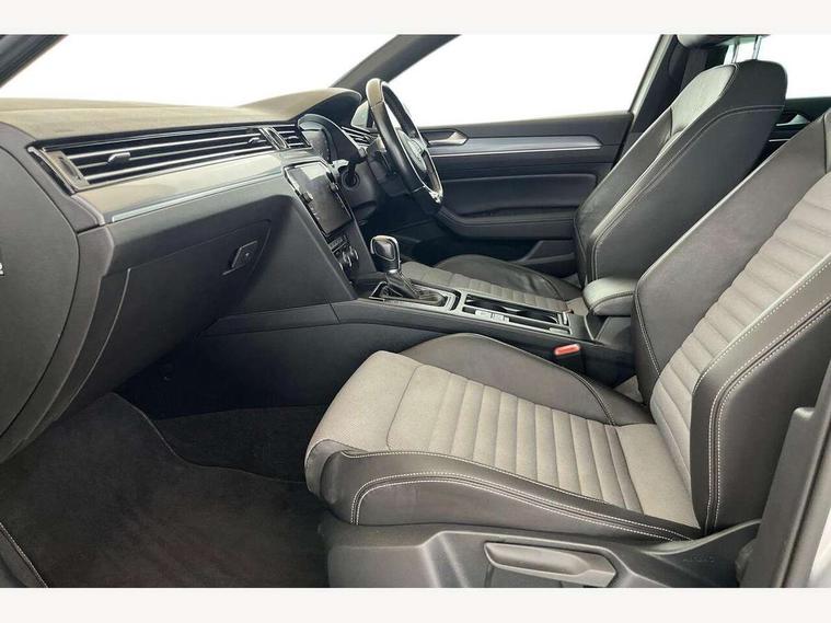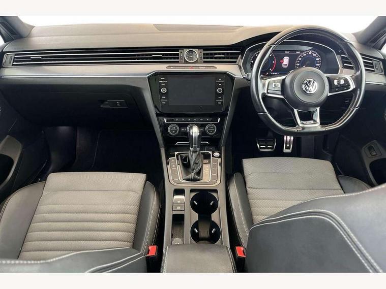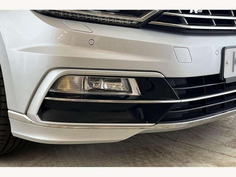 App-Connect, Adaptive cruise control, Analogue clock, Door/tailgate open warning lights, Driver alert system, Driver profile selection, Exterior temperature gauge with frost alarm, Information display, Low washer fluid warning light, Multifunction computer, Remote fuel flap release, Remote tailgate release, Rev counter with fuel gauge, Service interval indicator, Speed limiter, Warning buzzer and light for front seatbelts unfastened, Auxiliary socket for external device, Composition media system with Radio/CD/MP3, DAB Digital radio, MDI with USB/iPod connection cables, SD card slot, Auto dimming driver's door mirror, Auto dimming rear view mirror, Automatic activation of hazard warning lights, Automatic coming/leaving home lighting function, Automatic headlights with dusk sensor, Body colour bumpers, Body colour door handles, Body coloured door mirrors, Chrome fog light surround, Chrome louvres in grille, Chrome side sills, Chrome side window surrounds, Chrome surround for air intake, Electric front windows, Electric panoramic sunroof with sunblind, Electric rear windows, Electrically adjustable and heated door mirrors, Front fog lights with static cornering function, Fully galvanised body, Gloss black finish on B pillar, Headlight range control, Headlight washers, Heated rear window, LED rear lights, LED rear number plate lights, Load sill protection, R Line body kit, Rain sensor, Rear wiper, Reverse activated kerb-view adjustment on passenger's door mirror, Silver roof rails, Trailer stability assist, Twin Trapezoidal tailpipes, Windscreen wipers/ intermittent wipe + 4 position delay, 12V Accessory socket in centre console, 12V socket in luggage compartment, 3 rear head restraints, 3 spoke multifunction leather steering wheel including paddle shift, 3 Zone electronic climate control with automatic air recirculation, 4 boot load lashing points, 40:20:40 split folding rear bench seat, Black roof lining, Driver's cushion tilt adjust, Entry lights on doors, Front + rear carpet mats, Front and rear interior lighting with delay and dimming function, Front centre armrest with storage compartment, Front comfort seats, Front cupholders x2 with covers, Front door pocket bottle holders, Height adjustable head restraints, Height/reach adjust steering wheel, Leather gearknob, Load through provision, Lockable, illuminated, cooled glovebox, Luggage compartment cover, removable, Luggage compartment lighting, Rear centre armrest with cupholder and storage, Stainless steel pedals, Storage compartment in driver's door, Storage compartment in passenger's door, Storage compartment in rear doors, Storage compartment in roof console, Storage pockets in backrests of front seats, Sunvisors with illuminated vanity mirrors, Variable boot floor, Winter pack - Passat - heated front seats, 3 rear 3 point seatbelts, ABS, brake assist and EBD, Automatic post collision braking, Curtain airbags, Door open warning reflectors, Driver/Front Passenger airbags, Driver/Front passenger WOKS head restraints, Drivers knee airbag, Electronic parking brake with auto hold, ESP with EDL + ASR, First aid kit, Front assist including city emergency braking, Front side airbags, Height adjustable front 3 point seatbelts + pretensioners, Hill hold function, Passenger airbag deactivation system, Pre crash system, Rear seatbelt warning indicator, Rear side airbags, Warning triangle, Alarm with interior protection, Electronic engine immobiliser, Keyless Start, Remote central locking with 2 remote folding keys, Brushed aluminium interior trim, Chrome air vent and instrument surround, Piano black centre console, White instrument dials,
