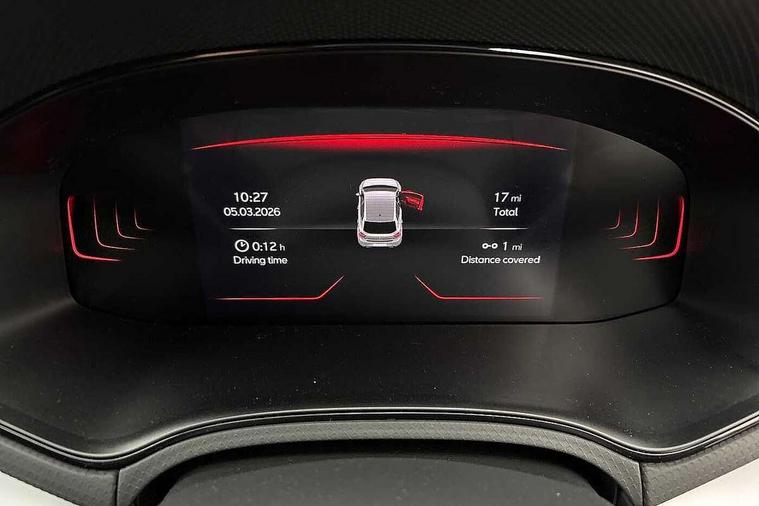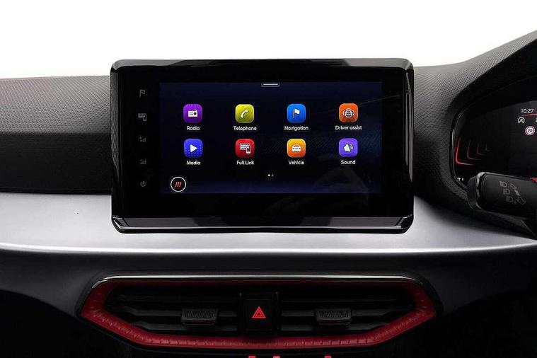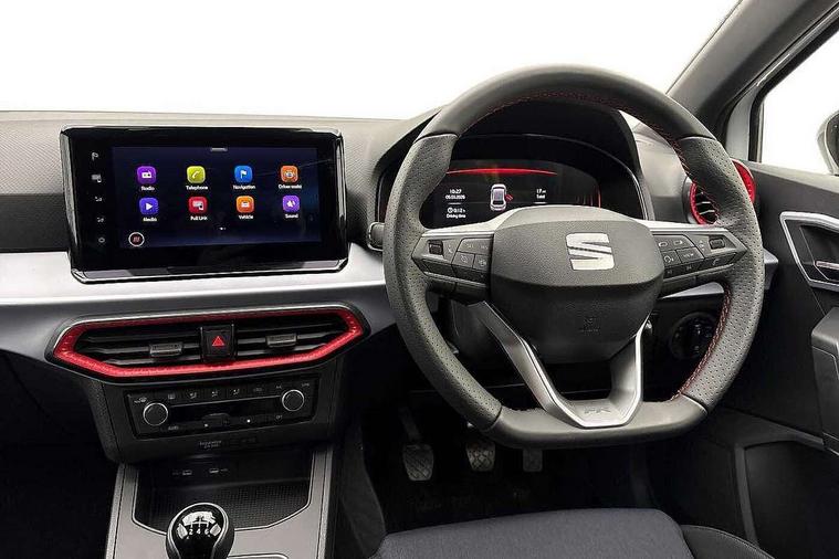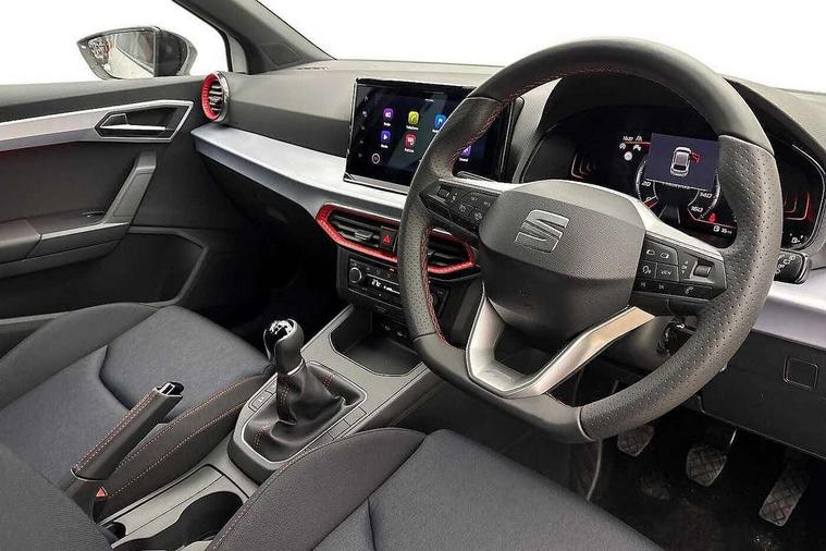 'Lights On' Reminder warning buzzer, 8" Digital cockpit, 9.2" touchscreen navigation system with type C USB socket, Voice control and DAB/AM/FM radio, Auto start and stop system, Bluetooth audio streaming with handsfree system, Digital clock, E-call, Full link smartphone integration with mirror link, wireless apple carplay, Google android auto + USB Type C cable for apple and android devices, Lane assist, Low fuel warning light, Outside temperature gauge, Power Steering, Rear parking sensor, Seat connect plus with safety, service, remote and online, SEAT drive profiles and ECO function, SEAT logo boot release, Speed limiter, Traffic sign recognition, Trip computer, Sports suspension, Auxiliary input socket, Radio/MP3 player, SD card slot, Steering wheel mounted controls, Anti theft roof antenna, Auto dimming rear view mirror, Automatic rain sensing wipers, Black door mirror caps, Body colour bumpers, Body colour door handles, Brilliant black window surrounds, Dark tinted rear windows, Electric adjustable/heated/folding door mirrors, Electric front windows, Electric headlight adjustment, Electric rear windows, Front/rear fog lights, FULL LED automatic headlights with dynamic headlight range control, coming and leaving home, LED daytime running lights, LED 3rd brake light, LED tail lights, Rear roof spoiler with FR twin exhausts, Rear side wing doors, Rear wiper, 3 seat bench in 2nd row, 60/40 split folding rear seat, Ambient interior lighting, Chrome detailing and black headlining, Cloth upholstery, Dual zone climate control with combination filter, Front courtesy lights, Front cupholders x 2, Front reading lights, Gear shift indicator, Glovebox, Height adjustable front and rear headrests (five), Height adjustable front seats, Height/reach adjust steering wheel, Illuminated air vent surrounds, Illuminated boot, Instrument lighting with brightness control, Isofix, Leather multifunction flat bottomed sports steering wheel, Passenger sunvisor, Single front passenger seat, Sports seats, Sunvisors with mirror and driver side card holder, Safety and driving pack (S) - Ibiza, 3 point seatbelts on all 3 rear seats, ABS, Active front headrests, Child locks on rear doors, Electronic stability control, Energy recovery system, Front driver and passenger side airbags with curtain airbag and front passenger airbag deactivation, Hill hold control, Multi-Collision braking, Seat belt reminder for front and rear seats, Tiredness recognition system, Tyre pressure monitoring system, Locking wheel bolts, Perimeter alarm and interior monitoring with backup horn and tow away protection, Remote central locking + deadlocks, 17" Alloy wheels in Brilliant silver,