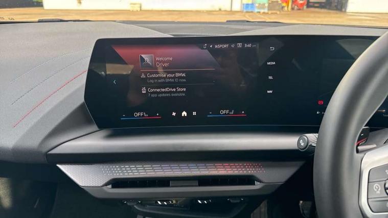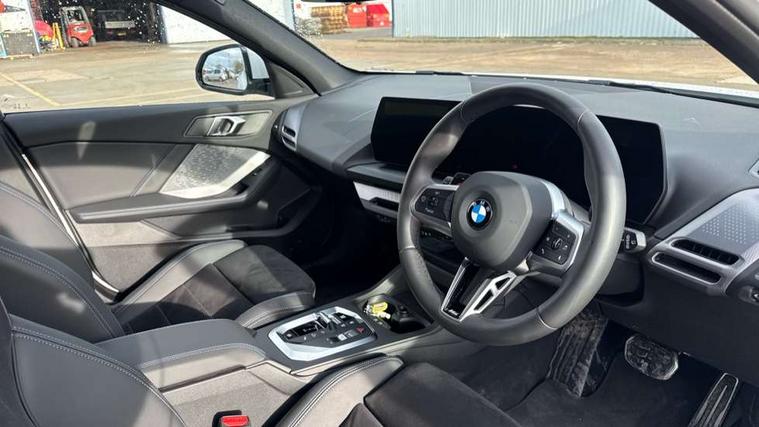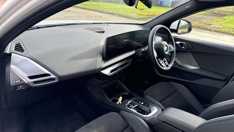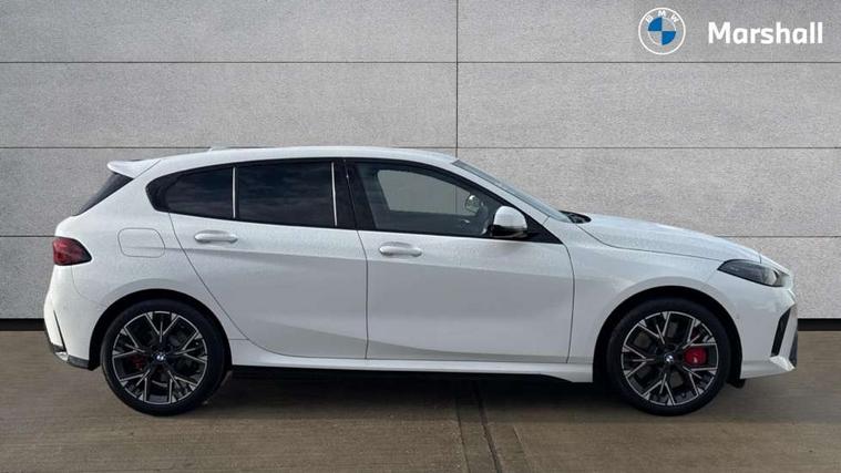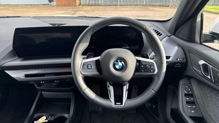Active guard plus, Attentiveness assist, Bluetooth / WiFi interface for wireless connection of mobile terminal devices and audio streaming, BMW ConnectedDrive online services, BMW Live cockpit plus, BMW Teleservices, Check Control warning system for monitoring of lights and door/luggage compartment open warning, Eco pro mode, Electric power steering with Servotronic steering optimised at all speed ranges, Evasion assistant, Flat airvents in instrument panel with adjustable slats, Front and rear parking sensors, Front axle single joint with specific axle kinematics to minimise drive influences on steering + provide increased rigidity agile driving behaviour, Gearshift time display in manual mode, Integrated owners handbook, Left turn warning with brake function, My modes (Personal / Efficient / Sport), Oil sensor for level and grade, On board computer, Optimum shift indicator, Park assist including reversing assistant, lateral parking aid and reversing assist camera, Personal e-SIM, Personal Profile, Pull away assistant, Rigidly mounted rear subframe - Multi link construction with separate spring / damper configuration and excellent driving characteristics, Speed limit Info including no-overtaking indicator, Speed limiter, 49 litre fuel tank, Aluminium lightweight construction, Anti roll bar front and rear, Balancer shaft, Double VANOS twin scroll turbocharging system, Drive Performance Control, Electronic differential lock, Electronic selector lever, High precision injection, M Adaptive suspension, Petrol Particulate Filter, Steptronic transmission with double clutch, Twin tube gas filled shock absorbers with degressive characteristic curve, VALVETRONIC engine management, DAB Digital radio, Auto dimming rear view mirror, Automatic windscreen wipers and automatic headlight, Body colour door handles, Body colour roof trims, Chrome 'M' logo side designation, Chrome exhaust twin tailpipes round 90mm in left, Chrome kidney grille frame with Satin Aluminium struts, Direction indicator side lights in exterior mirrors, Electrically adjustable exterior mirror with mirror adjustment switch on drivers armrest and aspheric on driver side, convex on passenger side, Exterior M sport design elements, Fading support, Folding side mirrors with auto dimming/folding wing mirrors with auto dimming, Follow me home headlights, Front and rear bumper system with replaceable deformation elements, Front and rear electric windows with open and close fingertip control, anti trap facility and comfort closing, Front bumper panel with M specific design in vehicle colour with inserts in black high gloss, Front door sill finishers in black plastic with M designation in metallic look, Green tinted heat protection glazing, Heated rear window, High gloss black exterior mirrors, High gloss shadowline window frame, Recess cover mirror frames and B/C pillar embelisher trim, High level third brake light, Integrated front windscreen with washer jets, LED daytime running lights, LED eyebrow turn indicators, LED front fog lights, LED Headlights, Lightweight engineering, Matt black air guide grilles, Matt black wheel arch trim, Model badge on tailgate right, Nearside reverse light in rear light cluster, Preparation for high beam assistant, Rain sensor, Rear bumper panel with M-specific design in vehicle colour with inserts in black high gloss, Rear fog lights, Rear side wing doors, Rear window wiper, Shark fin antenna, Side sill covers with M specific design in body colour, Trailer stabilisation logic, Visible VIN plate, Welcome lighting, 12V power socket in front centre console with blanking plug, 3 rear seat head restraints, 3 seat bench in 2nd row, 3 spoke sports leather steering wheel with black leather and stitching, pearl chrome decorative finish, specific M Badge, Anthracite front and rear floor mats, Anthracite headlining, Black boot net with lashing eyes, Cargo function on 2nd seat row, Child seat ISOFIX attachment for two outer rear seats and front passenger seat with anchorage points, Conditioned based service, Driver and front passenger backrest net on rear, Driver and front passenger seat heating, Driver side folding compartment in instrument panel, Folding rear clothes hook, Footrest and pedals in black plastic, Four grab handles integrated in roof lining, Front and rear door pockets with bottle holders, Front and rear side armrest integrated into door trim, Front armrest with storage compartment, Gearshift paddles on steering wheel, Glove compartment, Height adjustable front head restraints, Luggage compartment for bag hooks on left and right, foldable luggage compartment liner and four lashing eyelets, Manual adjust steering wheel, Multi-function controls for steering wheel, Rear seat backrest with manual 60:40 split folding with 3 top tether clips integrated on rear of seat panels, Single front passenger seat, Storage compartment in centre console, Storage compartment in luggage compartment, Stowage of the parcel shelf in luggage compartment trim, Sun visors with vanity mirrors and insert tab, Two front centre console cupholders, Type C two USB ports in rear centre console, Upper retaining strap integrated into backrest rear panels, Connected pack professional - 1 Series, Interior lights pack - 1 Series, M Sport exterior styling aerodynamics pack - 1 Series, 2 tone horn, 3 point seatbelts on all seats, front pyrotechnic belt tensioners, stopper and belt force limiters, rear coded belt buckles, Airbags - Front driver/passenger, front and rear curtain head protection, front side, manual deactivation of front passenger airbag, Anti lock braking system (ABS) with brake assist, BMW emergency call, Brake drying, Braking readiness, Child proof locking system in rear door, Comfort modes, Cornering brake control, Crash sensor activating of airbags, Unlocking doors, hazard warning lights, interior light, safety battery terminal, Driver and front passenger seat belt security check, Dynamic stability control + (DSC+), Dynamic