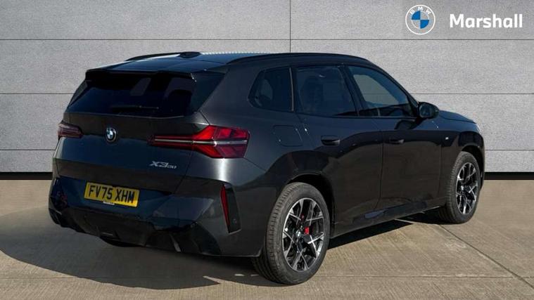 Active guard professional, Attentiveness assist, Automatic operation of tailgate, BMW ConnectedDrive online services, BMW iDrive, BMW Live cockpit plus, BMW Online services, BMW Teleservices, Brake pad wear indicator, Condition based service, Drive off assistant, Flat tyre monitor, Language version English, My Mode - Personal, Efficient, Sport, Relax, Expressive, Parking assistant, Reversing assist camera, Servotronic system, Variable sport steering, Dynamic stability control, Multiple control arm rear axle, Steptronic transmission with gearshift paddles, Two-joint strut-type front axle with tension strut, DAB tuner, Personal eSim, 4 tailpipe tips, B-pillar trim panel in black high-gloss, BMW badge on front and rear, BMW M-specific front/rear bumpers and side sills, BMW M-specific radiator grille with horizontal bars in Dark Silver and M logo, Body colour mirror caps, Daytime running lights, Door handles flush to the surface with lock barrel on driver's side is illuminated and in vehicle colour, Dynamic brake lights, Electric adjustable and heated door mirrors, Electric window trap release and convenient opening/closing feature, Headlight beam throw control, Heated rear window, Heated windscreen washer jets, High beam assistant, LED 3rd brake light, LED rear lights, LED tail lights, LED turning indicators, Locking of the doors, M high-gloss shadowline, M-specific Exterior mirrors, Mirror base and mirror blade in satinised aluminium, Mirror triangle in black high-gloss, Rain sensor with automatic headlight activation, Rear side wing doors, Rear wiper, Reversing light, Side window frame in black high-gloss, Windscreen wipers, 12v power socket in front centre console and luggage compartment, 2 x USB Type C ports for charging and data transmission (front centre console) and 2 x USB Type C ports for charging (rear centre console), 3 rear headrests, 3 seat bench in 2nd row, 3 zone automatic air conditioning, 40:20:40 split folding rear seat with loading system, Ambient lighting, Anthracite headlining, Electric adjustable seats with memory function, Floor mats in velour, Footrest and pedals in black plastic, Four grab handles integrated in roof lining, Front armrest with integrated control panel, Front centre console trim in black high-gloss, Front head restraints, Front passenger seat, Front sports seats, Glove compartment, i-Size / ISOFIX attachment points on both outer rear seats, with covers in black, Interior door handles in dark chrome, Luggage compartment separating net, M sport leather steering wheel, Multifunction steering wheel, Rear side armrests integrated into door trim, Selector lever with toggle operation, Steering column adjustment, Sun visors with illuminated vanity mirrors, Three upper retaining strap clips integrated into the rear panels of the seat backrests, Through loading system, Two front cupholders and two in the rear center armrest, Wireless charging tray, Connected pro package - X3, Driving assistant package - X3, Driving assistant plus pack - X3, Interior and exterior mirror package - X3, 3 point seatbelts, Airbag deployment is controlled with respect to the intensity and scope, Anti-lock braking system (ABS), Automatic hold function, BMW emergency call, Brake assist, Brake drying, Brake energy regeneration, Braking readiness, Central airbag, Child locks on rear doors, Cornering brake control (CBC), Crash Sensor - activation of central locking release, hazard warning light and interior lighting, Driver and front passenger front and side airbags, Dynamic brake control, Electromechanical parking brake, Front and rear disc brakes, Head airbags, Integrated braking system, Post Crash Collision Warning with braking function, Trailer stability control, Tyre pressure sensor, Warning triangle, Alarm system, Closing system with central locking, Comfort access system with BMW digital key plus, Locking wheel bolts, Start/stop button with keyless motor start with acoustic drive, Tyre repair kit plus,