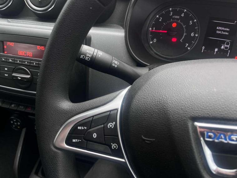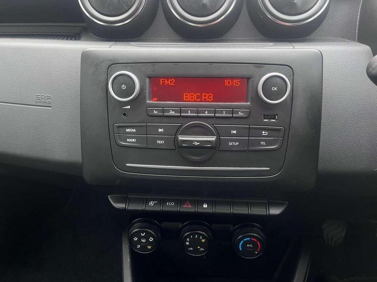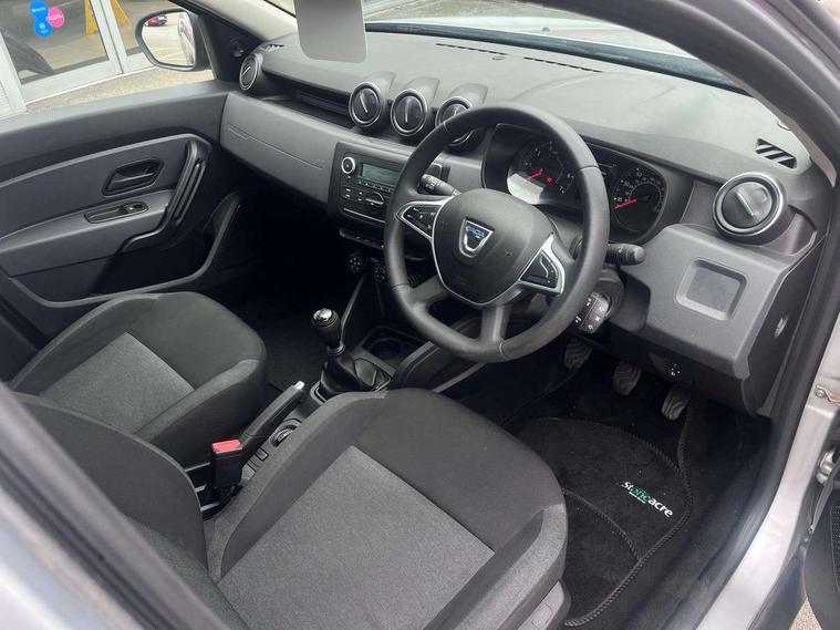 4x4 monitor with altimeter, Compass functional at 0km/h, Cruise control and speed limiter, Dacia instrument cluster, Eco mode, Electric power assisted steering, On board computer, odometer, trip computer, average fuel consumption, average speed, service indicator, outside temperature gauge, Rev counter, Stop/start system, Dacia plug and radio/MP3/USB/bluetooth/DAB/steering wheel control, 3 speed windscreen wipers, Black door handles, Black door mirrors, Black longitudinal roof bars with Duster inscription, Black side sills, Black/satin chrome tailgate trim with Duster inscription in black background and lettering, Dusk sensor, Electric front windows, Front and rear body coloured bumpers, Heated rear window, High level third rear brake light, LED automatically switched on - In main headlights, LED daytime running lights, Manual rear windows, Manually adjustable door mirrors, Rear spoiler, Rear wash/wipe, Tinted windows, Underbody protection skid plates, Y shaped LED headlights with rear LED lights, 3 rear height adjustable headrests, Backlighted steering wheel buttons, Boot light, Charcoal grey interior door handles, Fabric upholstery, Front head restraints, Gear shift indicator, Height adjustable front and rear headrests, Height and depth adjustable steering wheel, Isofix points for child seats in both outer rear seats, Manual air conditioning, One split folding complete rear seatback bench, 3x3 point rear seatbelts, ABS and Emergency brake assist, ASR traction control with Electronic stability control, Child locks on rear doors, Door open visual and audible warning, Driver airbag, Driver and passenger seatbelt not fastened - visual and audible warning, Front passenger airbag, Front passenger airbag deactivation, Front seatbelt pretensioners, Front side airbags, Height adjustable front seatbelts, Hill start assist, Tyre pressure monitor, Remote central locking, Thatcham approved engine immobiliser, Dark carbon central console surround, Matt black central console fascia, Satin chrome air vent surround, 16" steel wheels,
