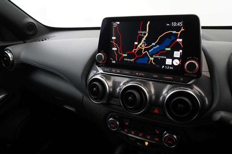 7" full colour TFT screen combimeter, 8" infotainment colour display with touch screen, Apple CarPlay and Google Android auto, Drive modes select (Eco, normal and sport), Emergency and breakdown call, Front parking sensor, Idle start/stop system, Intelligent lane intervention, Lane departure warning system, Nissan connect nav with TomTom traffic, Nissan connect services and Wifi connection, Outside temperature sensor, Power Steering, Rear parking sensor, Traffic sign recognition, Trip computer, Gasoline particulate filter, Bluetooth system, USB, Aux-in and 12V socket, Bose personal plus audio system with 8 speakers(4 speakers and 2 headrest speaker for driver and passenger seats), Bose personal sound stage control, DAB Digital radio, Rear console USB port, Auto dimming interior rear view mirror, Automatic hazard signal with emergency stop signal, Body colour bumpers, Body colour door handles, Electrically adjustable door mirrors with integrated indicators, Follow me home headlights, Front and rear electric window with one touch driver window, Heated and auto folding door mirrors, High beam assist, LED daytime running lights, LED front fog lights, LED headlamps, LED rear fog lamp, LED rear lamps, Rain sensor windscreen wipers, Rear privacy glass, Rear spoiler, Rear wiper, Thermaclear heated windscreen, Three blink turn signal, 3 height adjustable rear headrests, 60/40 split folding rear seat, Automatic climate control, Card holder on driver sunvisor, Cloth/Synthetic leather upholstery, Door ambient lighting, Driver and passenger sliding and reclining seats, Driver seat back pocket, Driver side rear coat hanger, Driver/passenger sunvisors and vanity mirrors, Front and rear cabin lighting, Front armrest, Front door pockets with bottle holders, Front head restraints, Front passenger isofix child seat anchorage point, Front/rear passenger grab handles, Gear console ambient circle lighting, Grey synthetic leather kneepad, Heated front seats, Height adjustable driver's seat, Height adjustable passenger seat, Internal chrome door handles, Leather gearshift knob, Leather steering wheel, Luggage board, Luggage space lighting, Monoform sporty seats, Multifunction steering wheel, Passenger seat back pocket, Rear door bottle holders, Steering wheel mounted gearshift paddles, Telescopic steering wheel adjustment, Two cupholders in front centre console, Two rear isofix child seat anchorage points with top tether, Voice recognition switch on steering wheel, Welcome light and console tray ambient lighting, ProPilot pack - Juke, ABS with EBD and brake assist, Active ride control, Active Trace Control, Driver and passenger airbags, Driver and passenger side airbags, Electric handbrake with auto hold function, Electronic Stability Programme (ESP), Front and rear curtain airbags, Height adjustable seatbelts, Hill start assist, Intelligent emergency braking with pedestrian and cyclist recognition, Seatbelt reminder for driver/front passenger and rear seats, Single tone horn, Three 3 point rear seatbelts, Traction control, Tyre pressure monitoring system, VDC Dynamic Vehicle Control, Ventilated rear brake discs, Alarm, Immobiliser, Intelligent Key with push button starter, Remote central locking,
