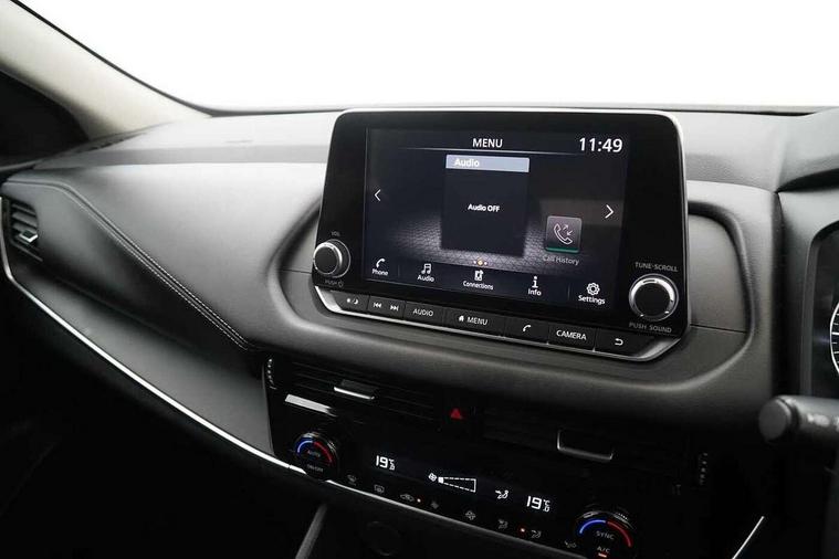 7" High definition full colour TFT screen combimeter, Android auto/Apple CarPlay (Wired), Blind spot warning, Drive modes (sport, normal, eco), Electric speed sensitive power steering, Emergency and breakdown call, Idle stop/start system, Intelligent Cruise control (ICC), Intelligent driver alert system, Intelligent forward collision warning, Intelligent lane intervention, Lane departure prevention, Lane departure warning system, Maximum speed limiter, Nissan connect 8" touchscreen infotainment system, Push button starter, Rear cross traffic alert, Rear parking sensors, Rear view camera, Traffic sign recognition with legal speed adjustment, Trip computer, 6 speakers, AM/FM audio system with DAB, Bluetooth audio streaming, Front USB connections (Type-A and Type-C), Auto dimming rear view mirror, Auto rear wiper when reversing, Automatic hazard signal with emergency stop signal, Body colour mirror caps, Body coloured door handles, Bodyside mouldings, Chrome side window finisher, Door handle with button, Electric auto folding door mirrors, Electrically adjustable and heated door mirrors with LED turn indicator, Follow me home headlights, High beam assist, Intelligent auto headlights, LED daytime running lights, LED Headlights, LED rear lights, One touch front and rear electric windows with remote opening and closing, Partially body coloured bumpers, Rear reversing light (bulb lighting), Rear roof spoiler, Rear side wing doors, Shark fin antenna, Splash free rain sensing wipers, Three blink turn signal, 12v power socket in dashboard and luggage, 2x Rear coat hooks, 3 bench rear seats in 2nd row, 3 rear headrests, 4 folding assist grip, 6-way manually adjustable driver's seat, 60/40 split folding rear seat bench, Centre console storage tray, Chrome interior door handles, Cloth monoform upholstery, Driver and front passenger sunvisors with illuminated vanity mirrors, Driver seat back pocket, Dual zone automatic climate control with pollen filter, Electrically adjustable lumbar support for driver, Front and rear door storage, Front centre console and armrest, Front cupholders x 2, Front door with bottle holders, Glovebox with light, Hard trunk cover, Height adjustable driver's seat, Height adjustable front headrests, Height adjustable passenger seat, Leather steering wheel, Luggage space lighting, Manually adjustable passenger (slide recline + lifter), Multifunction steering wheel, Passenger seat back pocket, Rear armrest with 2 cupholders, Rear door bottle holders, Single front passenger seat, Steering wheel gearshift paddles, Steering wheel switches, Sunglasses holder, Tilt/telescopic adjustable steering wheel, Two rear isofix child seat anchorage points with top tether, 3x3 point rear seatbelt pretensioners + load limiters, ABS with EBD and brake assist, Active brake limited slip, Auto hold function, Child locks on rear doors, Curtain and front side, far side airbags, Driver and passenger airbags, Driver, passenger and 2nd row rear seat belt reminder, Electronic parking brake, Front seatbelt pretensioners + load limiters, Height adjustable front seatbelts, Hill start assist, Intelligent blind spot intervention, Intelligent front emergency braking with pedestrian, cyclist recognition and junction assist, Intelligent rear automatic braking, Tyre pressure monitoring system, Vehicle dynamic control, Capless fuel filler, Engine immobiliser, Intelligent Key, Remote central door locking with deadlocking, Thatcham Cat.1 alarm, Interior instrumental panel A finisher, 17" Alloy wheels, Tyre puncture repair kit,