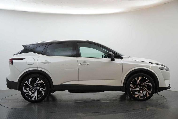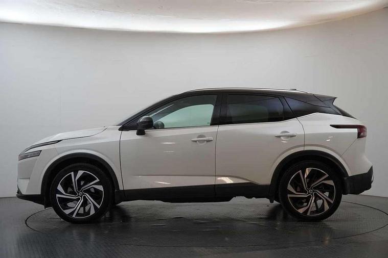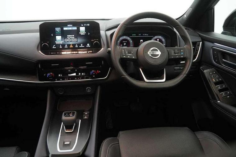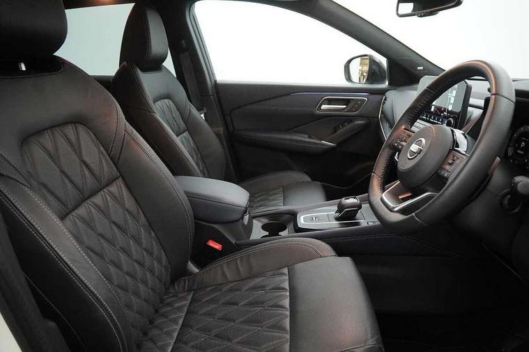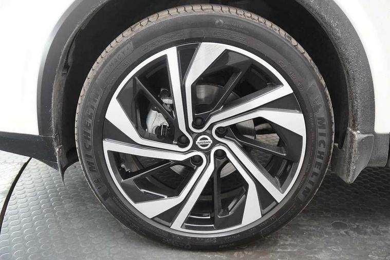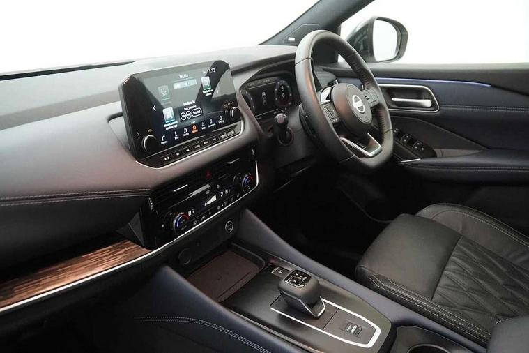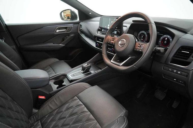 Advanced windscreen head up display, Android auto/Apple CarPlay (Wired), Blind spot warning, Drive modes (sport, normal, eco), Electric speed sensitive power steering, Emergency and breakdown call, Front and rear parking sensors, Full Digital 12.3" TFT Digital Combimeter, Google maps services - search, weather, 3D maps and Google street view, Hands free power tailgate, Idle stop/start system, Intelligent around view monitor, Intelligent Cruise control (ICC), Intelligent driver alert system, Intelligent forward collision warning, Intelligent lane intervention, Lane departure prevention, Lane departure warning system, Lane keep assist, Moving object detection, Nissan connect 12.3 inch touchscreen infotainment system, Nissan connect navigation, ProPilot, Push button starter, Rear cross traffic alert, Rear view camera, Remote control services - door locks, lights, horn and car locator, Telematics - notifications and connectivity services, TomTom live traffic services, Traffic jam pilot, Traffic sign recognition with legal speed adjustment, Trip computer, Virtual personal assistant and firmware over the air capability, Wireless apple carplay, Wireless charging pad, 10 Bose speakers - 2 tweeters, 6 high and medium frequency door speakers and 2 in subwoofer, AM/FM audio system with DAB, Bluetooth audio streaming, Bose acoustimass bass box, Digital amplifier, Front USB connections (Type-A and Type-C), Rear USB charging only ports (Type-A and Type-C), 3rd brake light, Auto dimming rear view mirror, Auto rear wiper when reversing, Automatic hazard signal with emergency stop signal, Body colour mirror caps, Body coloured door handles, Bodyside mouldings, Chrome side window finisher, Door handle with button, Door mirror memory, Electric auto folding door mirrors, Electrically adjustable and heated door mirrors with LED turn indicator, Follow me home headlights, Front and rear LED turning signals, Headlights auto levelling system, Intelligent auto headlights, LED daytime running lights, LED headlights with adaptive driving beam, LED rear lights, One touch front and rear electric windows with remote opening and closing, Privacy glass, Rear bumper with graphite insert, Rear reversing light (bulb lighting), Rear roof spoiler, Rear side wing doors, Rear styling plate, Reverse tilting door mirrors, Shark fin antenna, Splash free rain sensing wipers, Super UV and infrared cut glass, Thermaclear heated windscreen, Three blink turn signal, 12v power socket in dashboard and luggage, 2x Rear coat hooks, 3 bench rear seats in 2nd row, 3 rear headrests, 4 folding assist grip, 6 Luggage hooks - 4 on floor, 2 on side, 60/40 split folding rear seat bench, Ambient lighting around centre console, Ambient lighting in front doors, Centre console storage tray, Chrome interior door handles, Dark black/blueish PVC wrapping, Dark headlining, Driver and front passenger sunvisors with illuminated vanity mirrors, Driver seat back pocket, Dual zone automatic climate control with pollen filter, Electric 4-way lumbar support for drivers seat, Electric adjustable 4 way lumbar support for passenger seat, Electrically adjustable driver seat with massage and memory functions, Front and rear door storage, Front centre console and armrest, Front cupholders x 2, Front door with bottle holders, Glovebox with light, Hard trunk cover, Heated front seats, Heated steering wheel, Height adjustable driver's seat, Height adjustable front headrests, Height adjustable passenger seat, Leather steering wheel, Luggage board system, Luggage space lighting, Manually adjustable passenger (slide recline + lifter), Multifunction steering wheel, Passenger seat back pocket, Quilted premium leather upholstery, Rear armrest with 2 cupholders, Rear door bottle holders, Single front passenger seat, Soft PVC kneepad, Steering wheel gearshift paddles, Steering wheel switches, Tilt/telescopic adjustable steering wheel, Two rear isofix child seat anchorage points with top tether, Welcome light and doors with console tray ambient lighting, Glass roof pack with roof rails - Qashqai, 3x3 point rear seatbelt pretensioners + load limiters, ABS with EBD and brake assist, Active brake limited slip, Auto hold function, Child locks on rear doors, Curtain and front side, far side airbags, Driver and passenger airbags, Driver, passenger and 2nd row rear seat belt reminder, Electronic parking brake, Front seatbelt pretensioners + load limiters, Height adjustable front seatbelts, Hill start assist, Intelligent blind spot intervention, Intelligent front emergency braking with pedestrian, cyclist recognition and junction assist, Intelligent rear automatic braking, Tyre pressure monitoring system, Vehicle dynamic control, Advance intelligent key with driver memory storage (seats, mirrors, audio), Capless fuel filler, Engine immobiliser, Remote central door locking with deadlocking, Thatcham Cat.1 alarm, Interior instrumental panel C finisher, 20" Alloy wheels, Tyre puncture repair kit,