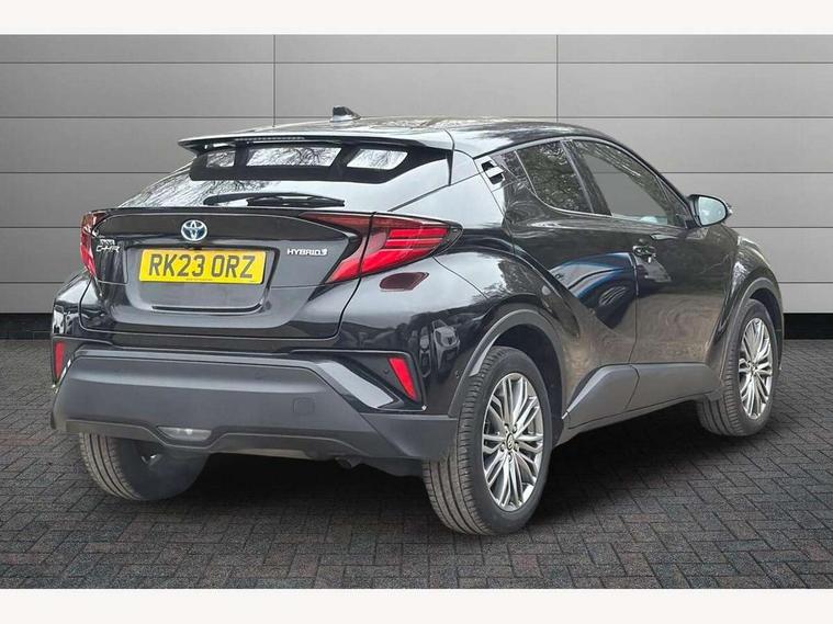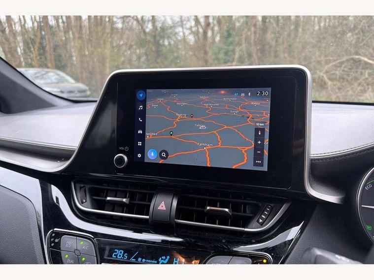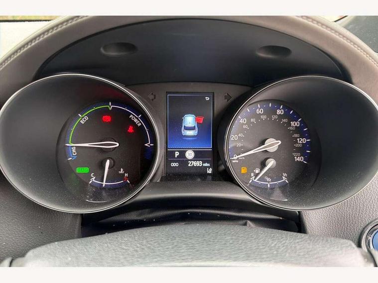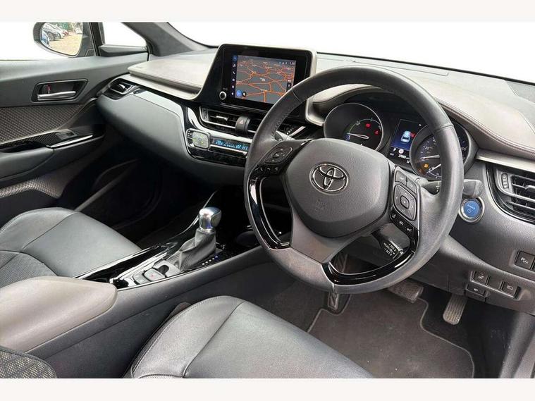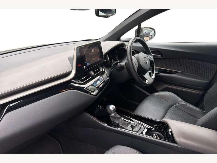 4.2" coloured TFT screen for multi-information display, Adaptive cruise control, Apple car play and Android auto, Bluetooth connectivity, E-call, Electric power steering, Hybrid system indicator, Lane departure alert with steering control, Lane trace assist, Push button tailgate release, Remote boot door release in cabin, Remote boot door release in key, Reversing camera, Road sign assist - RSA, Simple Intelligent parking assist, Smart voice assist, Touch 2 Go navigation system, Trip computer, Voice recognition, Wireless smartphone integration, Vehicle Stability Control (VSC), 6 speakers, AM/FM radio, DAB Radio (Digital Audio Broadcasting), Toyota touch 2 multimedia system with 8" display, USB connector, Wi-fi connectivity, Adaptive front light system, Adaptive LED Headlights, Anti-jam protection on power windows, Auto high beam, Auto up and down function on all power windows, Automatic headlight levelling, Automatic headlights, Automatic headlights cut-off, Black and body coloured rear bumper, Black lower front grille, Black upper front grille, Body colour door handles, Body colour door mirrors, Body colour front spoiler lip, Body coloured front bumper, Boot door release with push button, Electric heated door mirrors, Follow me home headlights, Front and rear power windows, Headlight cut off reminder, Honeycomb lower front grille, LED daytime running lights, LED fog lights, LED front light guide, LED High mounted stop light, LED rear brake lights, LED rear combination lights, Noise reduction layer on front windows and windscreen, Power adjustable door mirrors, Privacy glass, Rain sensor, Rear sequential indicators, Rear side wing doors, Rear spoiler, Rear tailgate, Rear window defogger, Rear window wiper, Shark fin antenna, UV-filter on driver and passenger windows, UV-filter on rear windows, Variable front intermittent wipers, 12v power outlet - front, 3 rear headrests, 3 seat bench in 2nd row, 3 spoke leather steering wheel, 60/40 split folding 2nd row rear seats, Adjustable rear headrests, Adjustable speed limiter switch on steering wheel, Assist grips front and centre pillar, Audio and telephone switches on steering wheel, Black front door assist grips, Blue ambient lighting on front cup holders, Blue ambient lighting on front doors, Boot light, Chrome interior door handles, Driver and front passenger personal light, Driver and front passenger Whiplash Injury Lessening seats, Driver and passenger seatback pockets, Dual zone automatic air conditioning, Floor mats, Front cupholders, Front head restraints, Front sports seats, Glovebox with internal light, Hard tonneau cover, Heated driver and front passenger seats, Heated steering wheel, Hooks for luggage holding net, Humidifying Nanoe air purifier, Illuminated entry system, Isofix attachments on outer rear seats, Leather gearshift, Light on driver sun visor, Light on passenger sun visor, Manual telescopic steering wheel, Manual tilt steering wheel, Microphone on front personal light, Mirror on driver sun visor, Mirror on passenger sun visor, Multimedia switches on steering wheel, Pollen filter, Power adjustable lumbar support on driver seat, Power tilting cushion on driver seat, Shopping bag hooks, Single front passenger seat, Slow opening on lower glovebox, Voice recognition switch on steering wheel, Leather pack - C-HR, Tech with parking sensor pack - C-HR, 16 Disk front wheel brake, 3x3 point rear seatbelts, ABS+EBD+Brake assist, Electronic parking brake, Front and rear seatbelt reminder, Front passenger airbag on/off switch, Hill start assist control (HAC), Pre collision system with pedestrian detection, Pre-tensioners and force limiters, Rear door child safety locks, SRS Airbags - Driver + Front passenger, front side, front and rear curtain and driver's knee airbags, Toyota safety sense, Tyre pressure monitoring system, Tyre pressure warning system, Acoustic vehicle alert system (AVAS), Glass-breaking alarm sensors, Immobiliser, Intrusion alarm, Intrusion sensor, Motion sensor alarm, Power door locks, Power passenger window lock, Remote central locking, Black lower dashboard, Dark brown upper dashboard, Piano black console, Silver deco line on upper dashboard, Tyre repair kit,