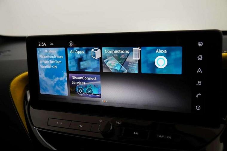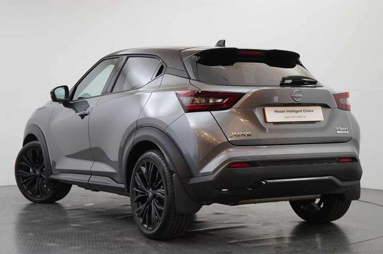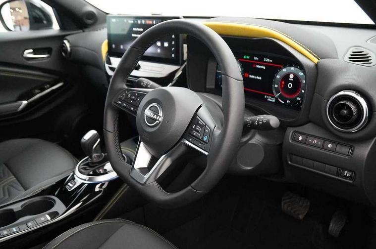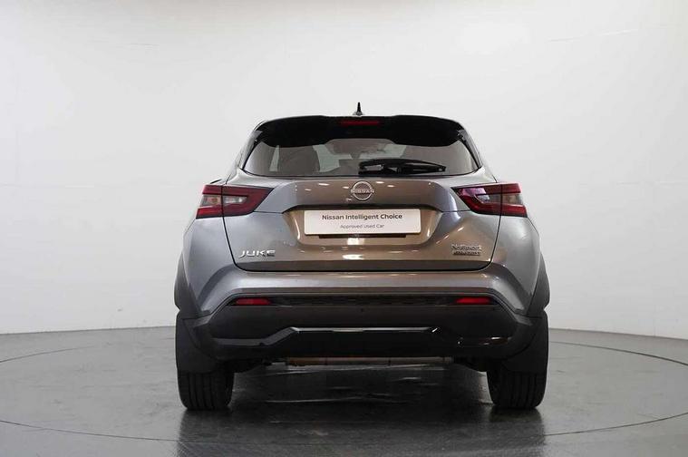 12.3" full colour TFT screen combimeter, Drive modes select (Eco, normal and sport), e-Pedal step, Emergency and breakdown call, EV mode switch, Front parking sensor, Intelligent driver alert system, Intelligent lane intervention, Lane departure warning system, Nissan connect 12.3" touch screen entertainment system, Nissan connect nav with TomTom traffic, Nissan connect services, Outside temperature sensor, Power Steering, Rear parking sensor, Stop/start button, Traffic sign recognition, Trip computer, Voice recognition, WiFi connectivity, Wireless Apple CarPlay and Google Android auto, Wireless Smartphone charger, 10 Bose speakers 8 speakers and 2 headrest speakers for driver/passenger seats, 2 X Rear console USB port, Bluetooth system, USB, Aux-in and 12V socket, Bose personal plus audio system, DAB Digital radio, Auto dimming frameless rear view mirror, Automatic hazard signal with emergency stop signal, Body colour door handles, Electrically adjustable door mirrors with integrated indicators, Follow me home headlights, Front and rear electric window with one touch driver window, High beam assist, LED 3rd brake light, LED daytime running lights, LED front fog lights, LED headlamps, LED rear fog lamp, LED rear lamps, One touch passenger window, Rear privacy glass, Rear side wing doors, Rear wiper, Roof spoiler, Shark fin roof antenna in solid Black, Solid black door mirrors, Three blink turn signal, 3 height adjustable rear headrests, 3 seat bench in 2nd row, 60/40 split folding rear seat, Card holder on driver sunvisor, Door ambient lighting, Driver seat back pocket, Driver side rear coat hanger, Driver/passenger sunvisors and vanity mirrors, Front and rear cabin lights, Front armrest, Front door pockets with bottle holders, Front head restraints, Front/rear passenger grab handles, Gear console ambient circle lighting, Height adjustable driver's seat, Internal chrome door handles, Luggage board, Luggage space lighting, Monoform sporty seats, Multifunction steering wheel, Passenger seat back pocket, Rear door bottle holders, Single front passenger seat, Smooth synthetic leather steering wheel, Synthetic leather kneepad, Synthetic leather shift knob, Telescopic steering wheel adjustment, Two cupholders in front centre console, Two rear isofix child seat anchorage points with top tether, Welcome light and console tray ambient lighting, Comfort pack - Juke, Gloss black exterior personalisation pack - Juke, Heat pack with height adjustable passenger seats - Juke, Interior personalisation pack - Juke, ProPilot pack - Juke Auto, ABS with EBD and brake assist, Active ride control, Active Trace Control, Driver and passenger airbags, Driver and passenger side airbags, Electric handbrake with auto hold function, Electronic Stability Programme (ESP), Front and rear curtain airbags, Height adjustable seatbelts, Hill start assist, Intelligent emergency braking with pedestrian and cyclist recognition, Rear door child safety locks, Seatbelt reminder for driver/front passenger and rear seats, Three 3 point rear seatbelts, Traction control, Tyre pressure monitoring system, VDC Dynamic Vehicle Control, Alarm, Immobiliser, Intelligent key and start push button with walk away lock and approach unlock functions, Remote central locking, Tyre puncture repair kit,