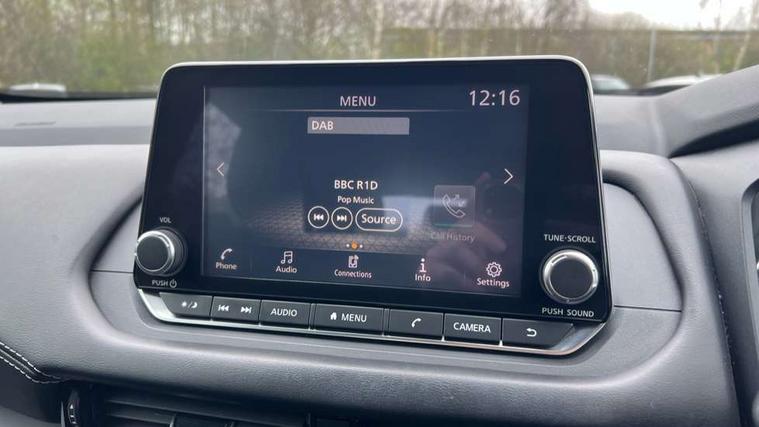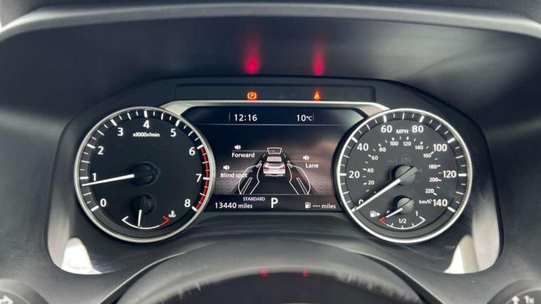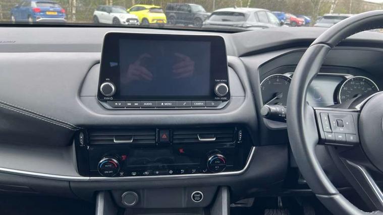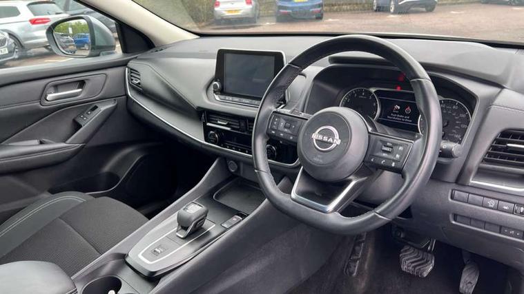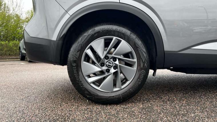 7" High definition full colour TFT screen combimeter, Android auto/Apple CarPlay (Wired), Blind spot warning, Drive modes (sport, normal, eco), Electric speed sensitive power steering, Emergency and breakdown call, Idle stop/start system, Intelligent Cruise control (ICC), Intelligent driver alert system, Intelligent forward collision warning, Intelligent lane intervention, Lane departure prevention, Lane departure warning system, Maximum speed limiter, Nissan connect 8" touchscreen infotainment system, Push button starter, Rear cross traffic alert, Rear parking sensors, Rear view camera, Traffic sign recognition with legal speed adjustment, Trip computer, 6 speakers, AM/FM audio system with DAB, Bluetooth audio streaming, Front USB connections (Type-A and Type-C), Auto dimming rear view mirror, Auto rear wiper when reversing, Automatic hazard signal with emergency stop signal, Body colour mirror caps, Body coloured door handles, Bodyside mouldings, Chrome side window finisher, Door handle with button, Electric auto folding door mirrors, Electrically adjustable and heated door mirrors with LED turn indicator, Follow me home headlights, High beam assist, Intelligent auto headlights, LED daytime running lights, LED Headlights, LED rear lights, One touch front and rear electric windows with remote opening and closing, Partially body coloured bumpers, Rear reversing light (bulb lighting), Rear roof spoiler, Rear side wing doors, Shark fin antenna, Splash free rain sensing wipers, Three blink turn signal, 12v power socket in dashboard and luggage, 2x Rear coat hooks, 3 bench rear seats in 2nd row, 3 rear headrests, 4 folding assist grip, 6-way manually adjustable driver's seat, 60/40 split folding rear seat bench, Centre console storage tray, Chrome interior door handles, Cloth monoform upholstery, Driver and front passenger sunvisors with illuminated vanity mirrors, Driver seat back pocket, Dual zone automatic climate control with pollen filter, Electrically adjustable lumbar support for driver, Front and rear door storage, Front centre console and armrest, Front cupholders x 2, Front door with bottle holders, Glovebox with light, Hard trunk cover, Height adjustable driver's seat, Height adjustable front headrests, Height adjustable passenger seat, Leather steering wheel, Luggage space lighting, Manually adjustable passenger (slide recline + lifter), Multifunction steering wheel, Passenger seat back pocket, Rear armrest with 2 cupholders, Rear door bottle holders, Single front passenger seat, Steering wheel gearshift paddles, Steering wheel switches, Sunglasses holder, Tilt/telescopic adjustable steering wheel, Two rear isofix child seat anchorage points with top tether, 3x3 point rear seatbelt pretensioners + load limiters, ABS with EBD and brake assist, Active brake limited slip, Auto hold function, Child locks on rear doors, Curtain and front side, far side airbags, Driver and passenger airbags, Driver, passenger and 2nd row rear seat belt reminder, Electronic parking brake, Front seatbelt pretensioners + load limiters, Height adjustable front seatbelts, Hill start assist, Intelligent blind spot intervention, Intelligent front emergency braking with pedestrian, cyclist recognition and junction assist, Intelligent rear automatic braking, Tyre pressure monitoring system, Vehicle dynamic control, Capless fuel filler, Engine immobiliser, Intelligent Key, Remote central door locking with deadlocking, Thatcham Cat.1 alarm, Interior instrumental panel A finisher, 17" Alloy wheels, Tyre puncture repair kit,
