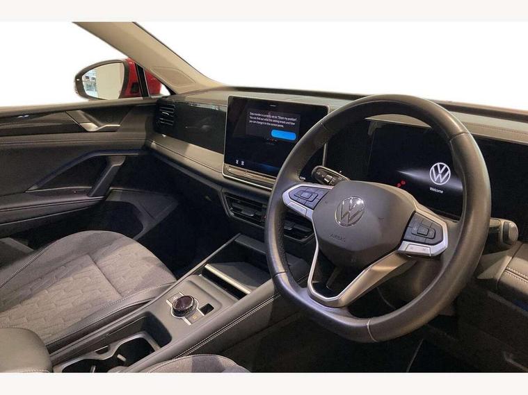 Adaptive cruise control (ACC), Advanced driver attention and drowsiness monitor, Bluetooth mobile phone interface, Car2X technology, Digital Cockpit Pro - 10.25" high resolution dash display screen with customisable menus and information, Dynamic road sign display, E-Sim card for online connectivity, eCall emergency call service, Front Assist - Autonomous emergency braking with pedestrian and cyclist monitoring, Lane change system, Side assist, Rear traffic alert and Exit warning system, Lane keeping system Lane Assist, Multifunction front facing camera, Oncoming vehicle braking when turning including swerve support, Park assistance plus with front and rear parking sensors, Power assisted steering with speed sensitive, Start/stop system with regenerative braking, Warning signal and warning light for front and rear seatbelts not fastened, Wireless App-Connect, Front wheel drive, Digital radio reception (DAB), Diversity antenna for FM reception, Ambient lighting with logo projection, Auto dimming interior rear view mirror, Automatic headlight control system, Body coloured bumpers and air intake with chrome trim, Body coloured door handles, Body-coloured exterior mirror housings, Coming/leaving home lighting function, Heat insulating glass in side and rear windows, Heat insulating windshield, Heated rear window, High level 3rd brake light, Illuminated door handle recesses, Illuminated lightline between headlamps, Rain sensor windscreen wipers, Rear fog light on one side, reversing light on both sides, Rear side wing doors, Rear wiper, 12V outlet in center console rear and in luggage compartment, 12V socket in centre console, 3 bench rear seats in 2nd row, Air care climatronic 3 zone air conditioning system with rear air conditioning control panel, Carpet mats, front and rear, Centre console with illuminated storage compartment with sliding cover and two drinks holders, Ceramique headlining, Door and side trim panel in foam film and woven fabric, Front centre armrest, ISOFIX anchors for child seats on outer rear seats and front passenger seat compatible with i-Size, Mechanical rear seat release, Power adjustable lumbar support in front, Rear bench seat, split folding, longitudinally movable and folding with load-through hatch and centre armrest, Safety optimised front head restraints, Single front passenger seat, Sun visors with illuminated vanity mirrors, Three rear head restraints, Variable luggage compartment floor, Comfort package with park assist plus and Safelock - Tiguan, Design package - Tiguan, 3 point seat belt for centre rear seats, 3 Point seat belts in front with pretensioners, 3 point seatbelts in outer rear with ECE label, Driver and front passenger airbag with front passenger airbag deactivation, Electronic parking brake with auto hold, Front and rear curtain airbags, Front and rear side airbags, Front centre airbag, Front disc brakes, Manual child proof rear door locks, Rear disc brakes, Two tone horn, Warning triangle, Anti theft wheel bolts, Soul instrument panel,