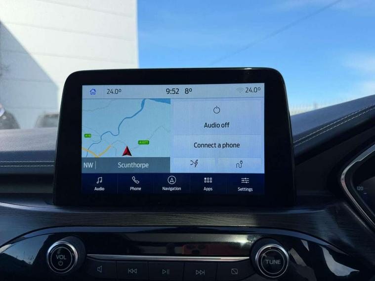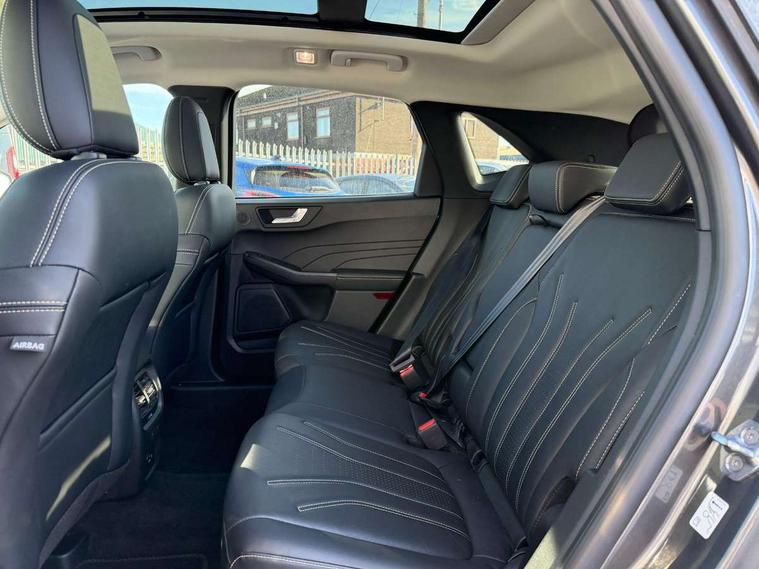 12.3" digital colour instrument cluster, Active noise cancellation, Ford easy fuel, Ford SYNC 3 with 8" TFT LCD touchscreen, App Link, andriod auto/apple carPlay, emergency assistance and navigation with Ford pass connect, Front and rear parking sensors, Geo awareness, Hands free power tailgate, Lane keeping aid with lane departure warning, Power assist steering, Rear view camera, Selectable drive modes, Service interval indicator, 3-Pin Home charge cable (230V/16A Domestic socket), 3.7 kW monophase on board charger, Standard suspension, Twist beam rear suspension, B&O premium audio system with 10 speakers and subwoofer, 2 USB ports, DAB radio/CD, Auto dimming rear view mirror, Auto headlamps with high and low beam, Auto wipers, Front and rear vignale fascia, Front LED fog lamps, LED daytime running lights, LED rear lights, Memory functionality with door mirrors, Power folding heated door mirrors with puddle lights, Power front/rear windows with global close, Privacy glass, Quickclear heated windscreen, Rear side wing doors, Rear spoiler, Rear wiper, Silver roof rails, Third brake light, Twin exhausts, Vignale body styling kit, Vignale front scuff plates, Vignale rear diffuser, 10 way power adjustable drivers seat with memory function, 2nd row sliding seats with 60:40 split, 8 way manual passenger seat including lumbar support and height adjust, Ambient lighting, Centre console with electronic parking brake, Dual electronic automatic temperature control, Front and rear head restraints, Heated passenger and driver seats, Heated rear seats, Heated steering wheel, Rear charging point, Single front passenger seat, Vignale front and rear mats, Vignale premium touch sensico steering wheel, Vignale seating with premium leather upholstery, 3x3 point rear seatbelts, Airbags - front driver/passenger, front and rear curtain, Drivers knee airbag, Electronic stability control (ESC) and ABS, Ford MyKey Gen 2 safety system, Manual child proof rear door locks, Post collision braking, Pre collision assist with autonomous emergency braking, Rear seat Occupancy alert, Tyre pressure monitoring system, Engine immobiliser, Keyless entry and Ford power start button (Keyless start), Locking wheel nuts, Remote powered central double locking doors, Thatcham category 1 alarm, Leather wrapped instrument panel, 19" 5x2 spoke luster nickel alloy wheels,