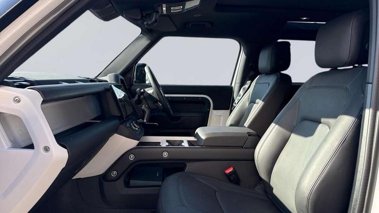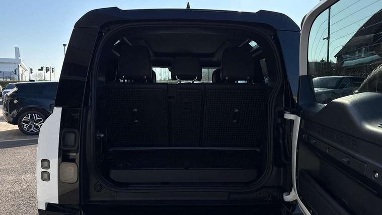 1 x USB-C (power only) & 1 x USB-C (power & data) in Row 1, 2 x USB-C in Row 2, 11.4" touchscreen, 360 degree parking aid, 3D Surround Camera with 360 View, 180 Rear View, Front Traffic Detection, Forward Vehicle Guidance, Tow Hitch Assist and clear sight Ground View, Adaptive cruise control, Android Auto, Apple CarPlay, Blind spot assist, Bluetooth system, Brake pad wear indicator, Clear exit monitor, Connected navigation pro, Driver attention monitoring system, Electric power assisted steering (EPAS), Interactive driver display, Lane keep assist, Push button start, Rear collision monitor, Rear traffic monitor, Traffic sign recognition with adaptive speed limiter, Trip computer, Wireless device charging, 8 speed automatic transmission, All wheel drive system, Twin speed transfer box, DAB Radio (Digital Audio Broadcasting), Meridian 700w surround sound audio system with 15 speakers, Pivi pro connected, Automatic headlight levelling, Automatic headlights, Black exposed rear recovery eyes, Body coloured bonnet, Darkened LED tail lights, Electric heated/power fold door mirrors with approach lights and auto dimming driver side, Electric windows with one touch open/close and anti-trap, Follow me home lighting, Front fog lights, Heated rear window with timer, Heated windscreen, LED 3rd brake light, LED tail lights, Matrix LED headlights with signature DRL, Panoramic rear side glass, Privacy glass, Puddle lights, Rain sensing windscreen wipers, Rear fog lights, Rear wiper, Side hinged tailgate, Sliding panoramic roof, Standard tail door, Trailer stability assist, X-Dynamic badge, 12V power socket in loadspace, 3 seat bench in 2nd row, Alpine lights, Configurable cabin lighting, Durable rubber cabin flooring, Durable rubber loadspace flooring, Ebony carpet mats, Electric reach + rake adjustable steering column, Electrically adjustable steering column, Extended leather upgrade, Flat load space floor tray, Footwell lights, Front head restraints, Heated steering wheel, Loadspace cover, Loadspace Hook, Manual Tip & Slide front passenger seat, Multifunction steering wheel, Overhead stowage for sunglasses, Rear headrests, Rear ISOFIX, Rear reading lights, Row 2 seats with forward folding seat base, Single front passenger seat, Soft close tail door, Standard seat configuration, Storage glovebox, Sunvisors with illuminated vanity mirrors, Twin front cupholders, Non-smoker package, Online pack with data plan - Defender, 5 x 3 point seatbelts, ABS, Brake hold function, Cornering brake control (CBC), Customer configurable autolock, Driver and passenger airbags, DSC - Dynamic Stability Control, EBD - Electronic brakeforce distribution, Electric parking brake (EPB), Emergency brake assist, Emergency braking, ESP + traction control, Front airbags with passenger seat occupant detector, HDC - Hill descent control, Hill launch assist, Low traction launch, Remote for (e-Call, Optimised assistance call, InControl app, Climate, beep and flash and door), RSC - Roll stability control, Seat belt reminder, TPMS (Tyre pressure monitoring system), Alarm, Immobiliser, Intrusion sensor, Keyless entry, Locking wheel nuts, Secure tracker pro,