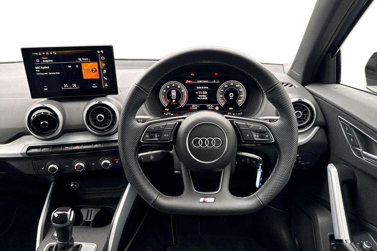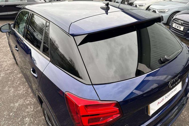3D map display, Audi connect navigation and infotainment includes innovative services, Audi connect remote and control connects your vehicle to your smartphone, Audi drive select: S tronic - power steering assistance + engine + gearshift (modes: comfort, auto, dynamic, efficiency, individual), Audi smartphone interface - Apple carplay/Android Auto, USB connect, 2xSDXC card readers, voice control for navi, telephone, music and 3rd party apps, Audi virtual cockpit, Automatic start/stop system with recuperation, Bluetooth interface includes bluetooth audio streaming, Camera based traffic sign recognition, Cruise control, Distraction and Fatigue warning, E-call, Jukebox hard drive memory for music (10GB), Lane departure warning, MMI navigation plus with 8.8" touchscreen, Natural voice recognition, Power operated tailgate, Progressive steering, Rear parking sensors, Sport suspension, 6 passive loudspeakers, DAB Digital radio, USB type C port, Audi beam, Auto dimming rear view mirror, Black window trims, Bumper in full body colour paint finish, Electrically adjustable, folding, auto dimming and heated door mirrors with integrated LED side indicators, Front windscreen with grey tinted sunband, LED daytime running lights, LED headlights with dipped beam, high beam, position lights, indicators, LED rear lights, LED third brake light, Privacy glass - dark tinted rear and rear side windows from B-pillar backwards, Rear side wing doors, Rear wiper, Variable front intermittent wipers, Wheel arch trims in manhattan grey, 12V socket in front, 3 seat bench in 2nd row, 3 spoke flat bottomed multi-function leather sport steering wheel with gear shift paddles, 4-way electric lumbar support for front seats including manual seat height adjustment for both front seats, 60/40 split folding rear seat bench, Black carpets, Black cloth headlining, Front and rear head restraints, Front centre armrest, Front sport seats, Front/rear floor mats, Height/reach adjust steering wheel, Illuminated door sill trims with S logo, ISOFIX child seat mounting in front passenger and rear outer seats, Manual air conditioning, Single front passenger seat, Stainless steel pedals, Black styling pack - Q2, 3x3 point rear seatbelts, 6 airbags - Front, curtain and front side airbags, Electromechanical parking brake, Electronic stabilisation control including ABS, ASR and EDL, Front passenger airbag deactivation, Hill hold assist, Pre-sense front with pedestrian recognition, Seatbelt monitoring, Tyre pressure warning light with visual and acoustic warning, Warning triangle and first aid kit, Anti theft wheel bolts, Electronically operated child locks, Remote central door locking, Thatcham category 1 alarm, Aluminium interior element, Black dashboard, Gloss black centre console, Matt brushed aluminium trim inlays, Tool kit,