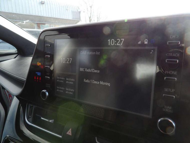 4.2" coloured TFT screen for multi-information display, Adaptive cruise control, Bluetooth connectivity, E-call, Electric power steering, Hybrid system indicator, Lane departure alert with steering control, Remote boot door release in cabin, Remote boot door release in key, Reversing camera, Road sign assist - RSA, Trip computer, Voice recognition, Vehicle Stability Control (VSC), 6 speakers, AM/FM radio, DAB Radio (Digital Audio Broadcasting), Toyota touch 2 multimedia system with 8" display, USB connector, Wi-fi connectivity, Anti-jam protection on power windows, Auto high beam, Auto up and down function on all power windows, Automatic headlights, Automatic headlights cut-off, Black and body coloured rear bumper, Black upper front grille, Body colour door handles, Body colour door mirrors, Body colour front spoiler lip, Body coloured front bumper, Boot door release with push button, Electric heated door mirrors, Follow me home headlights, Front and rear power windows, Front fog lights, Hard tonneau cover, Honeycomb lower front grille, LED daytime running lights, LED front light guide, LED High mounted stop light, LED rear brake lights, LED rear combination lights, Manual headlight levelling, Manually retractable door mirrors, Noise reduction layer on front windows and windscreen, Power adjustable door mirrors, Rain sensor, Rear side wing doors, Rear spoiler, Rear tailgate, Rear window defogger, Rear window wiper, Reflective LED headlights, Shark fin antenna, UV-filter on driver and passenger windows, UV-filter on rear windows, 12v power outlet - front, 3 rear headrests, 3 seat bench in 2nd row, 3 spoke leather steering wheel, 60/40 split folding rear seat, Adjustable rear headrests, Adjustable speed limiter switch on steering wheel, Assist grips front and centre pillar, Audio and telephone switches on steering wheel, Black front door assist grips, Boot light, Chrome interior door handles, Cloth upholstery, Driver and front passenger personal light, Driver and front passenger Whiplash Injury Lessening seats, Dual zone automatic air conditioning, Floor mats, Front cupholders, Front head restraints, Front sports seats, Glovebox with internal light, Hooks for luggage holding net, Humidifying Nanoe air purifier, Illuminated entry system, Isofix attachments on rear seats, Leather gearshift, Light on driver sun visor, Light on passenger sun visor, Manual telescopic steering wheel, Manual tilt steering wheel, Manually adjustable lumbar support on driver seat, Manually height adjustable driver seat, Manually height adjustable front passenger seat, Manually reclining driver seat, Manually reclining front passenger seat, Manually sliding driver seat, Manually sliding front passenger seat, Microphone on front personal light, Mirror on driver sun visor, Mirror on passenger sun visor, Multimedia switches on steering wheel, Pollen filter, Shopping bag hooks, Single front passenger seat, Slow opening on lower glovebox, Voice recognition switch on steering wheel, 16 Disk front wheel brake, 3x3 point rear seatbelts, ABS+EBD+Brake assist, Electronic parking brake, Front and rear seatbelt reminder, Front passenger airbag on/off switch, Hill start assist control (HAC), Pre collision system with pedestrian detection, Pre-tensioners and force limiters, Rear door child safety locks, SRS Airbags - Driver + Front passenger, front side, front and rear curtain and driver's knee airbags, Toyota safety sense, Tyre pressure monitoring system, Acoustic vehicle alert system (AVAS), Glass-breaking alarm sensors, Immobiliser, Intrusion alarm, Intrusion sensor, Motion sensor alarm, Power door locks, Power passenger window lock, Remote central locking, Black lower dashboard, Black upper dashboard, Grey deco line on upper dashboard, Matte black centre console, Tyre repair kit,