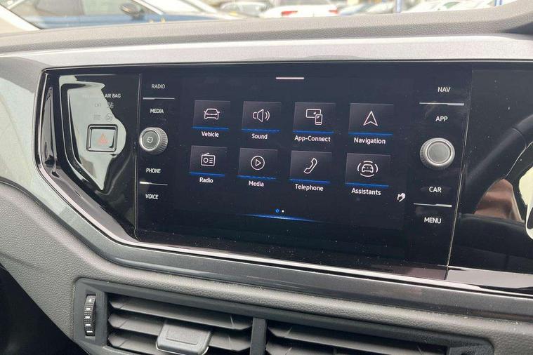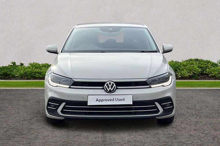 Adaptive cruise control without follow-to-stop and speed limiter, Bluetooth mobile phone interface, Digital Cockpit Pro with 10.25" Display, Driver alert system, Dynamic road sign display, Emergency call service, Power assisted speed sensitive steering, Preparation for We connect and We connect plus, Speedo and rev counter, electronic odometer, trip, service interval display and fuel gauge, Standard rear axle, Travel Assist - Lane keeping system and traffic jam assist, Travel assist including emergency assist, Trip computer, Warning signal and warning light for front and rear seatbelts not fastened, Washer fluid level indicator, Wireless app connect, Front wheel drive, Rear shock absorpion, Start-stop system with battery regeneration (recuperation - energy recovery during braking), DAB Digital radio, Diversity antenna for FM reception, Front and rear 6 speakers, Automatic dimming interior rear view mirror, Automatic headlights, Body colour door handles, Body coloured bumpers and radiator grille with chrome trims, Electric front windows, Heat insulating darkened glass in side and rear windows, Heat insulating glass windscreen, LED separate daytime running lights with coming/leaving home function, Power folding adjustable/heated exterior mirrors and front passenger exterior mirror lowering function, Rain sensor, Rear electric windows, Rear fog light, Rear side wing doors, Rear windscreen washer and wiper with interval delay, Third brake light, 12V power socket in centre console, 2 USB-C ports in the front, 2 USB-C charging sockets on the center console in the rear, 3 rear head restraints, 60/40 split folding rear seat and rear seat bench not split, Air care climatronic air conditoning system with active combination filter and 2-zone temperature control, Ambient lighting, Ceramique headliner, Chrome plated radiator grille inserts, air vent surrounds and light switch surrounds, Door and side trim panel, Driver and front passenger seat height adjustment, Driver/passenger sunvisors with illuminated vanity mirrors, Front + rear carpet mats, Front centre armrest, Front footwell illumination, Front seat backrest storage pockets, Front sports comfort seats, Handbrake lever handle in leather, Isofix child seat preparation easy-fit (for two outer rear seats, and front passenger seat) compatible with I-size, Leather trimmed gear knob, LED interior light with switch off delay and dimmer, 2 reading lights front and rear, Luggage compartment cover, Luggage compartment floor, Luggage compartment lighting, Lumbar adjustment for front seats, Multifunction steering wheel, Single front passenger seat, Standard pedal cluster, IQ LED matrix headlights pack - Polo, Light and vision pack - Polo, 3 point height adj front seatbelts + pretensioners, 3x3 point rear seatbelts, ABS, Driver and front passenger airbag with front passenger airbag deactivation, Drivers and front passengers safety optimised head restraints, ESC (Electronic stability control) + EDL (Electronic Differntial lock) and ASR (Traction control), Extended and predictive pedestrian/ cyclist protection, Front curtain and side airbags with center airbag, Front disc brakes, Hill hold control, Manual child lock in rear doors, Rear drum brakes, Single tone horn, Tyre pressure loss indicator, Alarm with interior protection, Anti-theft alarm system with interior monitoring, backup horn, and towing protection, Anti-theft wheel bolts, Electronic engine immobiliser, Chrome applications on rotary light, mirror adjustment, window regulator switches, outlet with frame in black, Deep iron gloss decorative inserts in dash and front door panels, Low rolling resistance tyres,